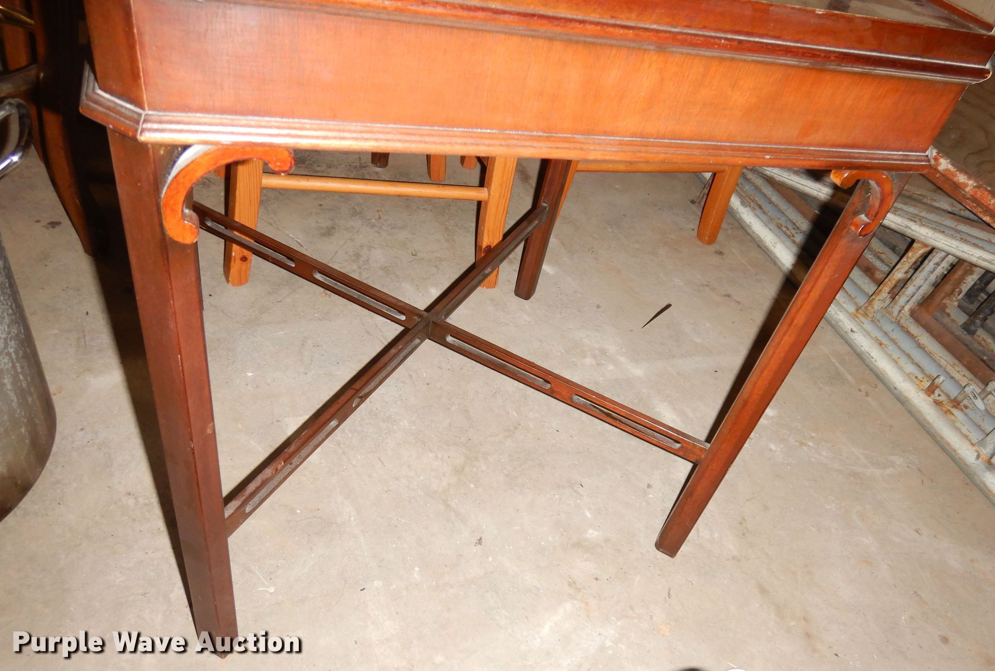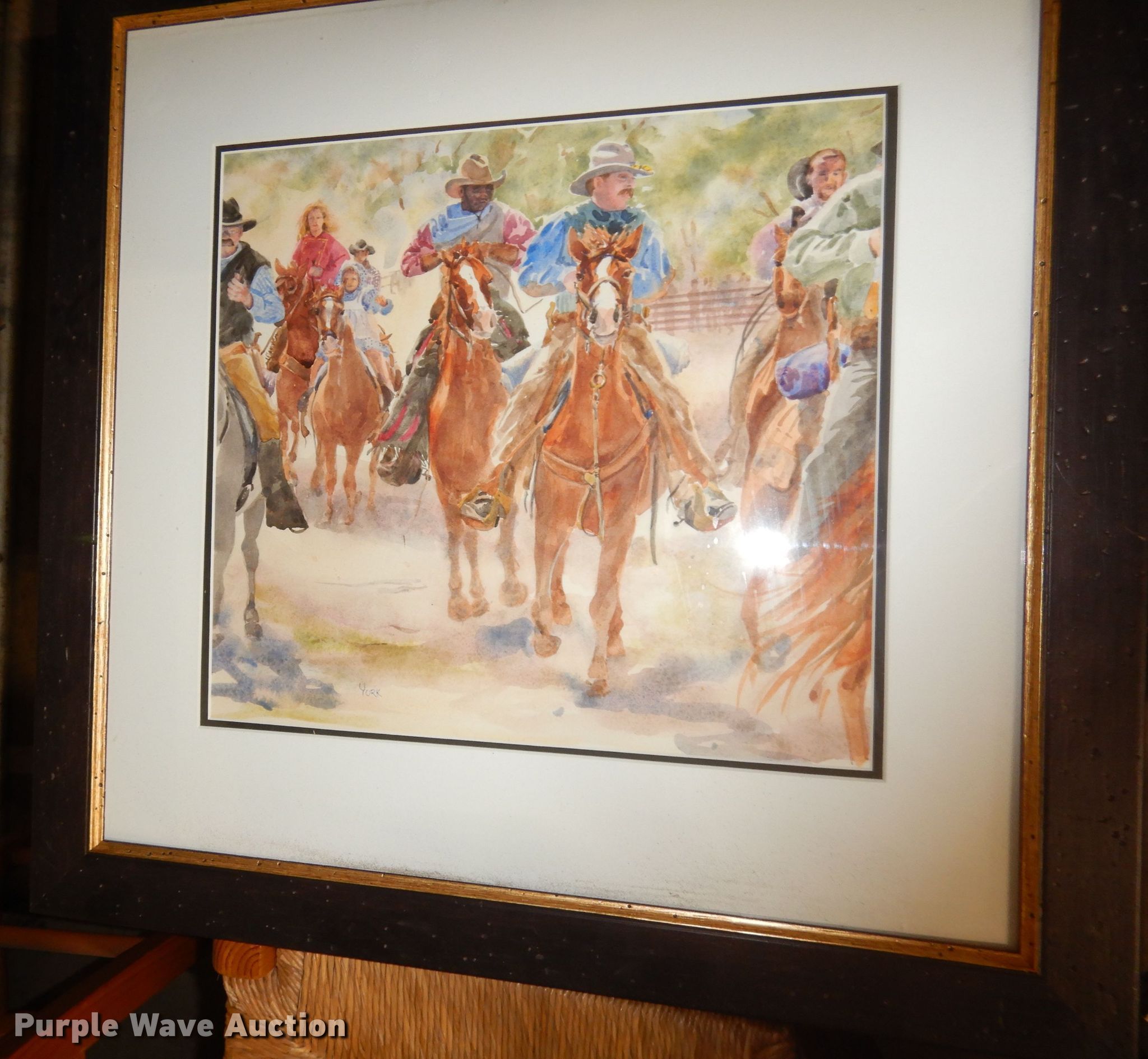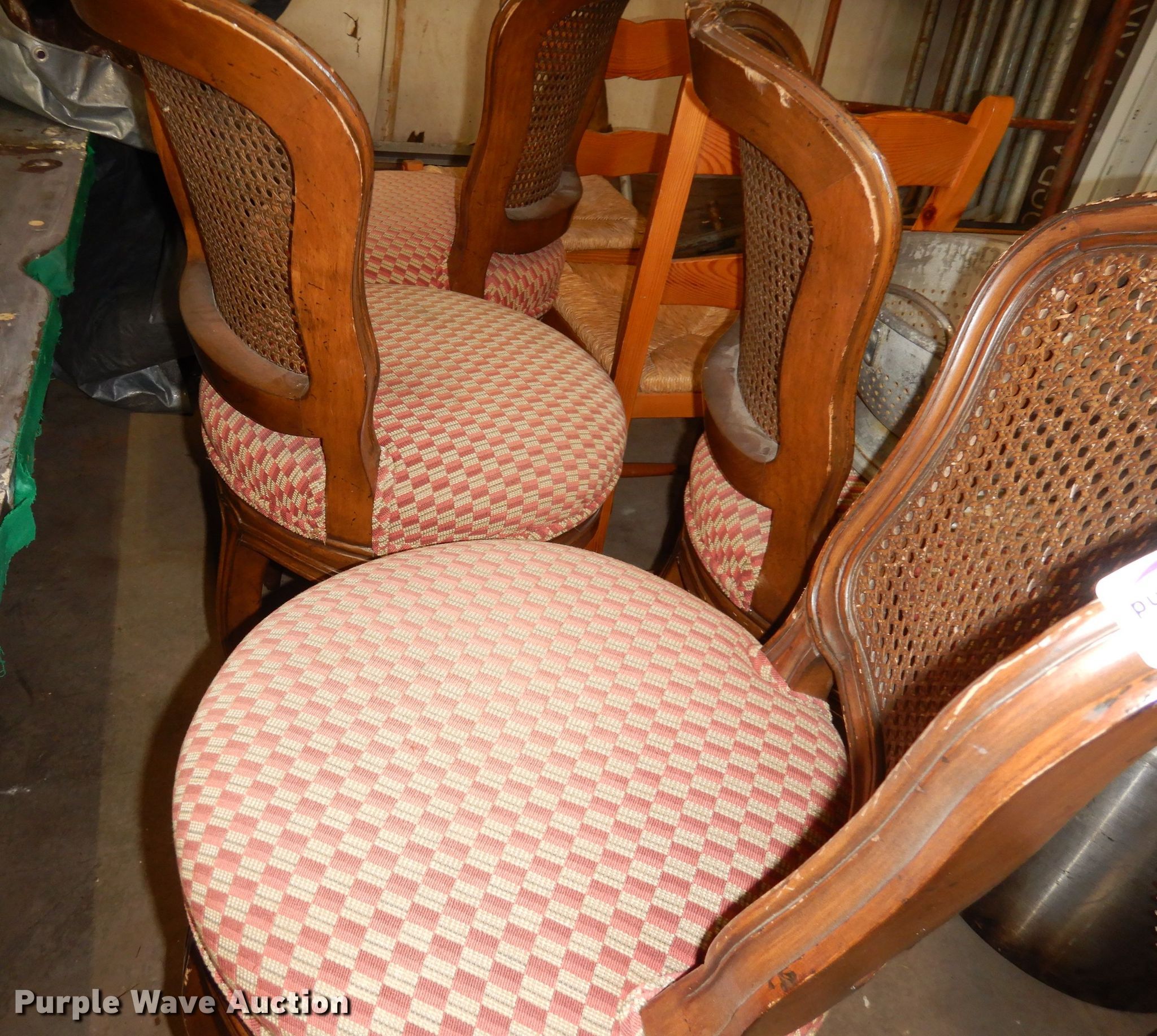 Purple Wave is selling a used Furniture in Kansas. This item is a Furniture with the following: (6) chairs, (3) lamps, Candle stand, Colendar lobster pot, Wall art, Pottery