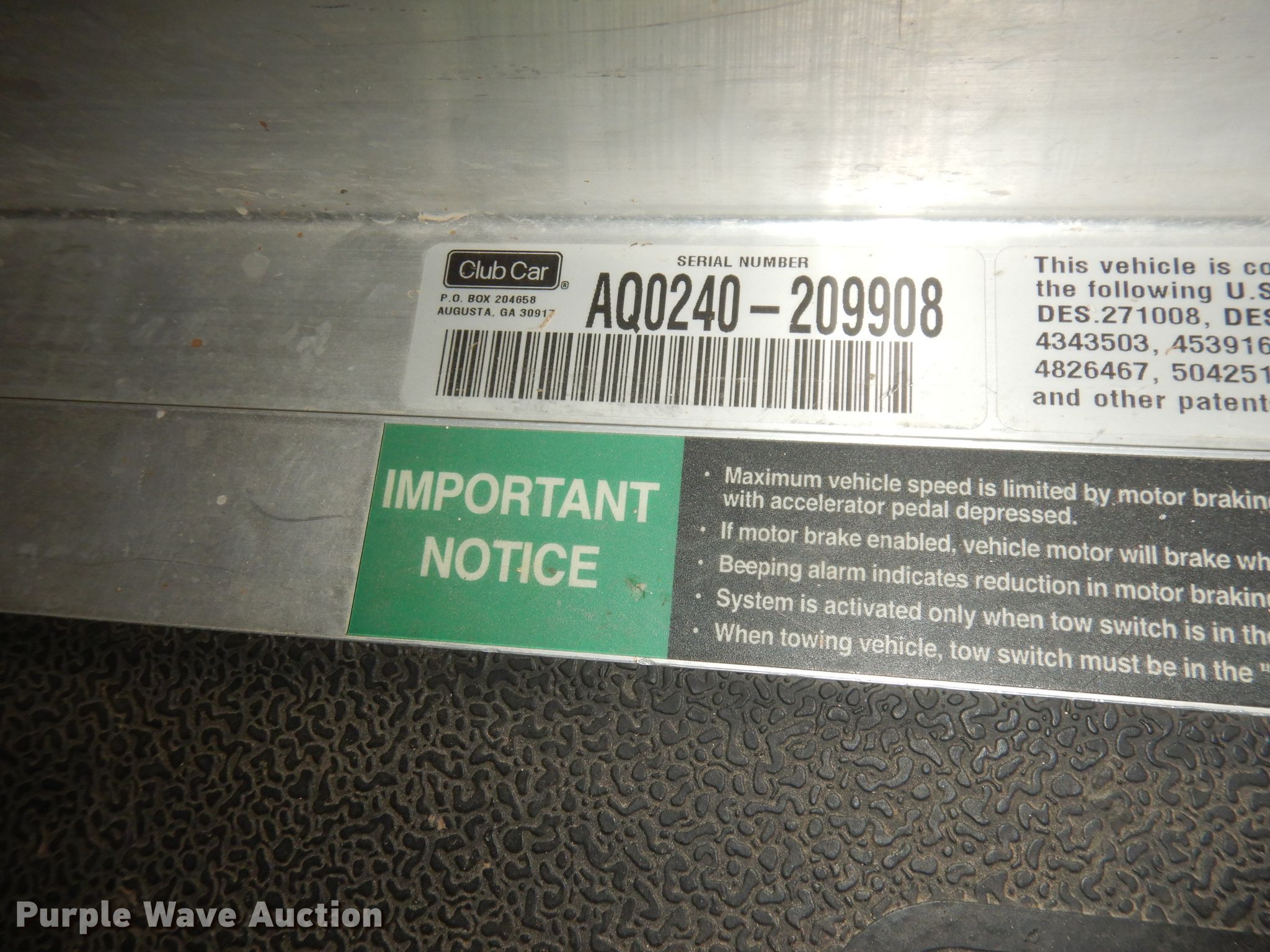 Purple Wave is selling a used Golf Cart in Kansas. This item is a Club Car golf cart with the following: Serial: AQ0240-209908
