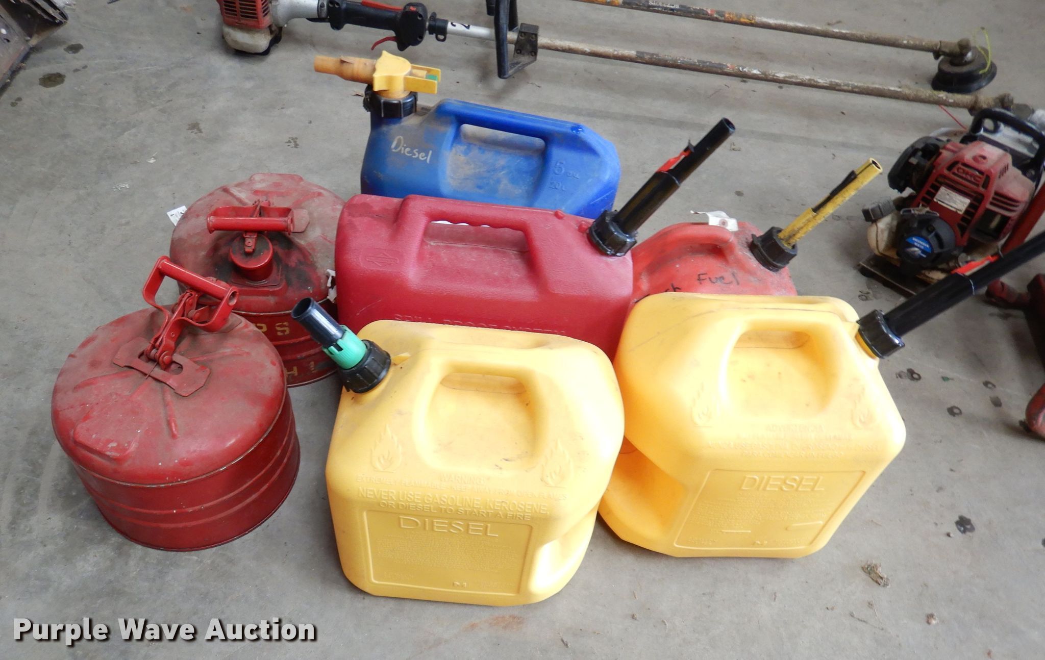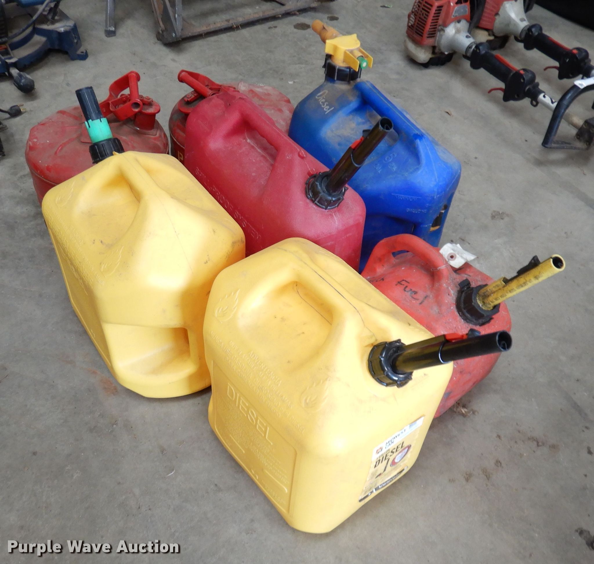 Purple Wave is selling a used Fuel and Lube in Kansas. This item is a (7) fuel cans with the following: (7) fuel cans. Edgerton, KS 66021