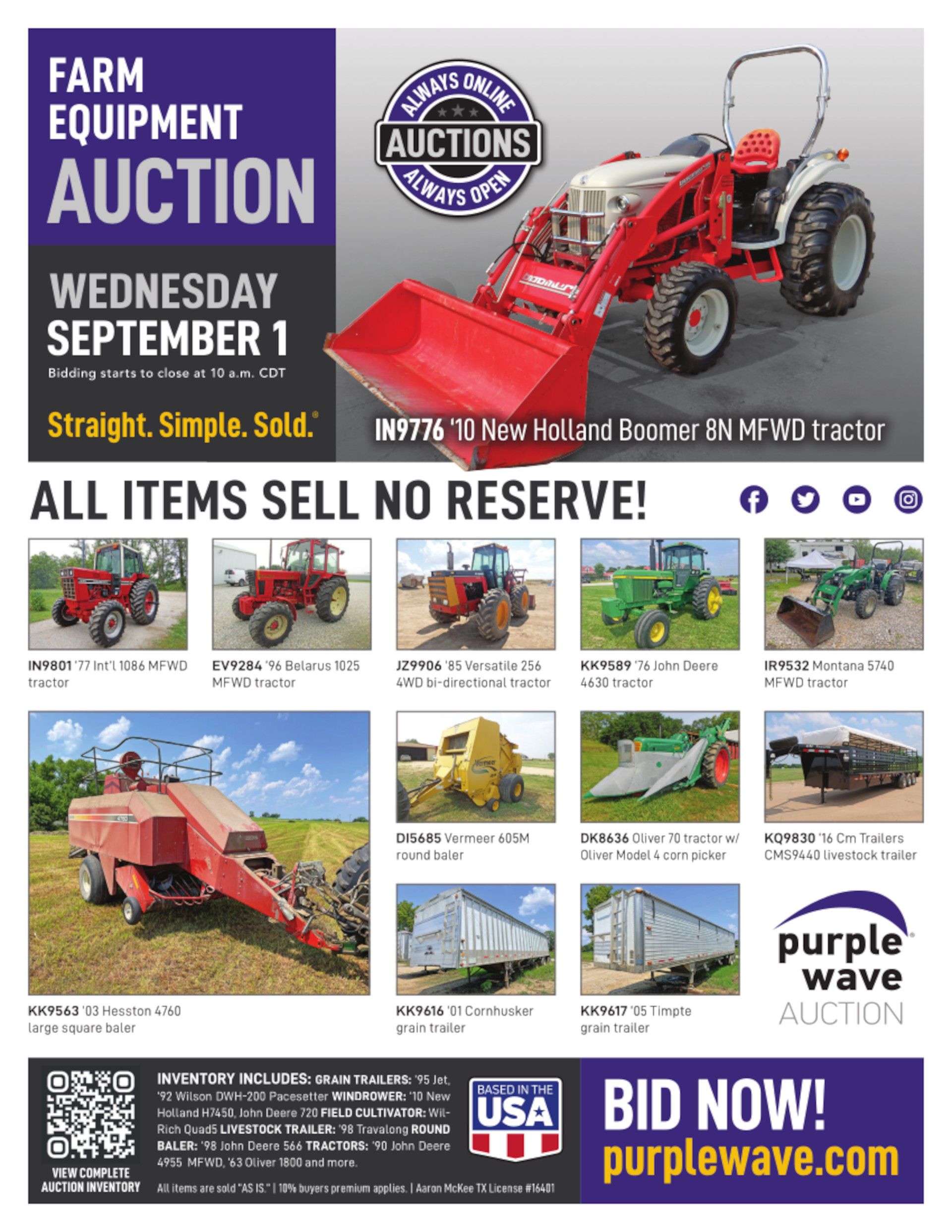 This auction is conducted by Purple Wave, Inc., whose home office is 825 Levee Drive, Manhattan, Kansas. Aaron McKee, Texas auctioneer license # 16401, operates Purple Wave, Inc. Complaints against us may be directed to the Texas Department of Licensing and Regulation, P.O. Box 12157, Austin, Texas 78711, (512) 463-6599. For additional required information, see the attached document.