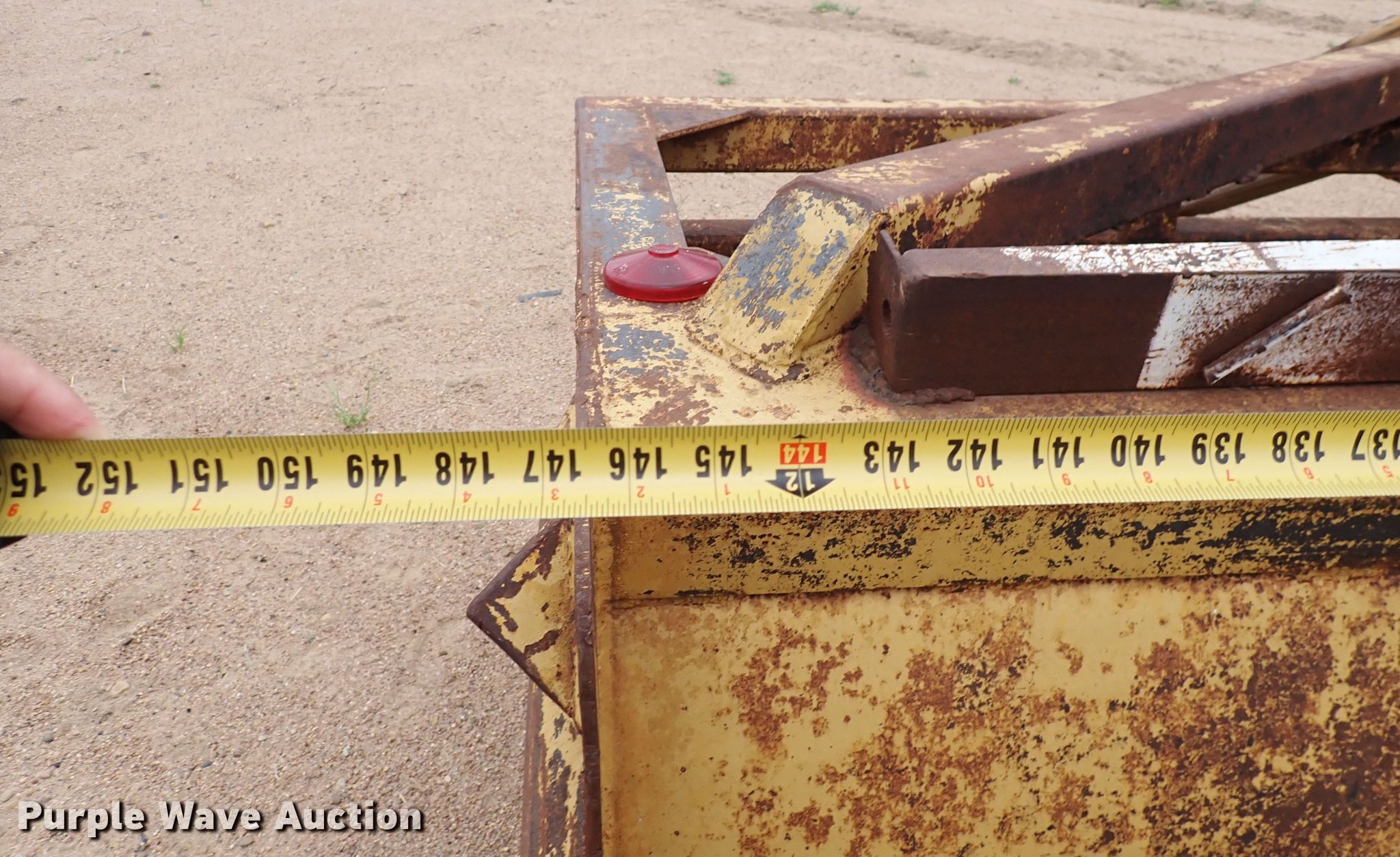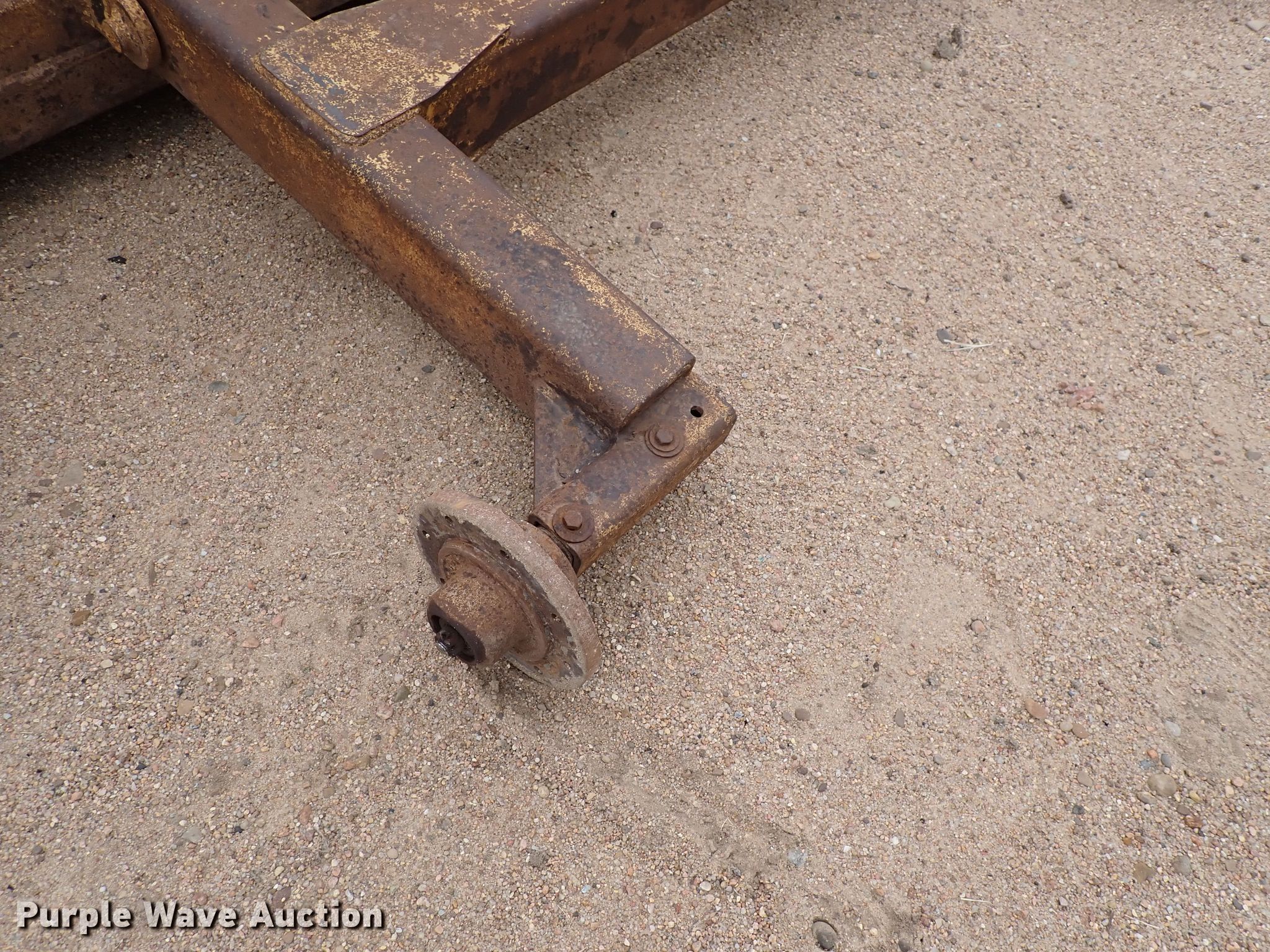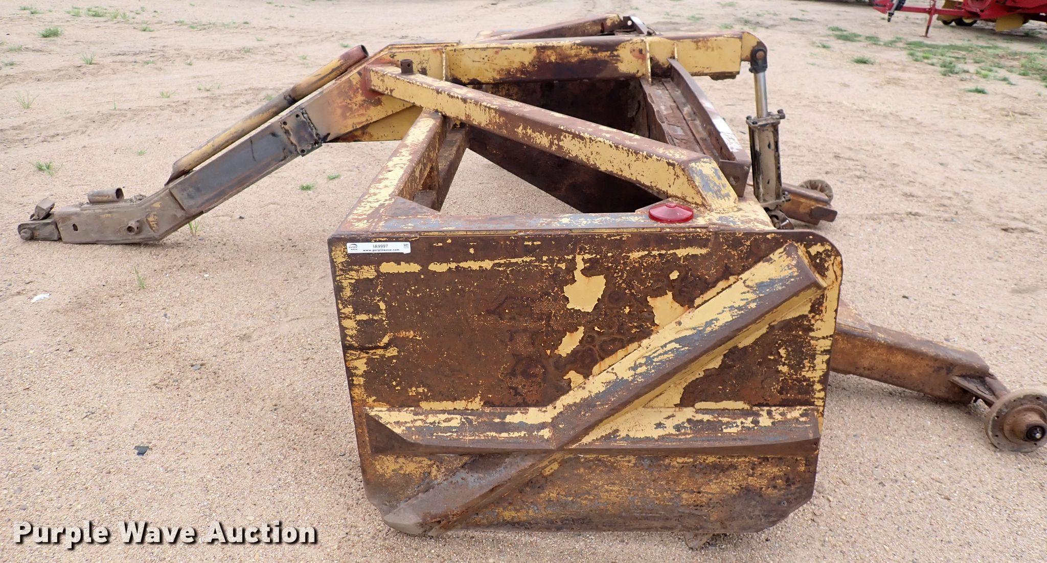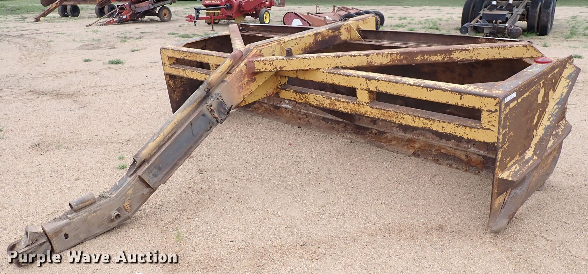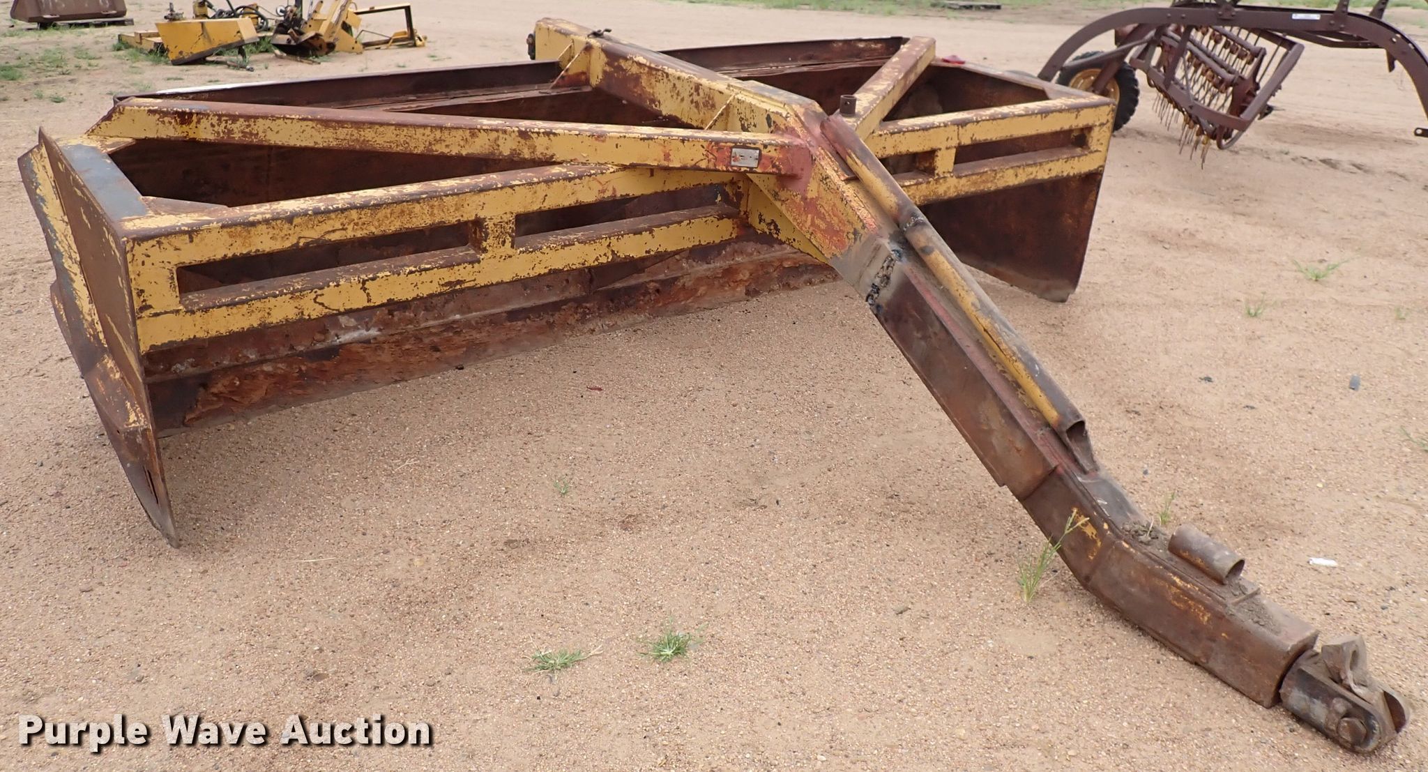 Purple Wave is selling a used Pull Type Scraper in Kansas. This item is a Speed Mover box blade with the following: Width: 147", Cutting edge: Bolt-on, Hydraulic lift, Tires and wheels missing