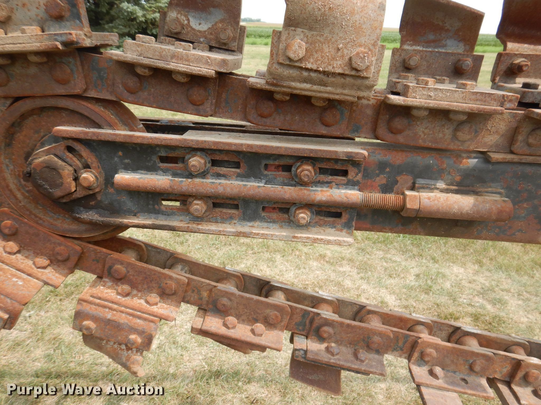 Purple Wave is selling a used Trencher Attach. in Iowa. This item is a Vermeer PT18 tile trencher with the following: Estimated dig depth: 6', Cutting width: 12", Conveyor: Side, Width: 6', PTO: 1000, Hydraulic winch, 1/2" cable, Flow valve, Serial: 168, Tile spool, Transit laser/tripod, Rod grade posts, Tires: 12-16.5