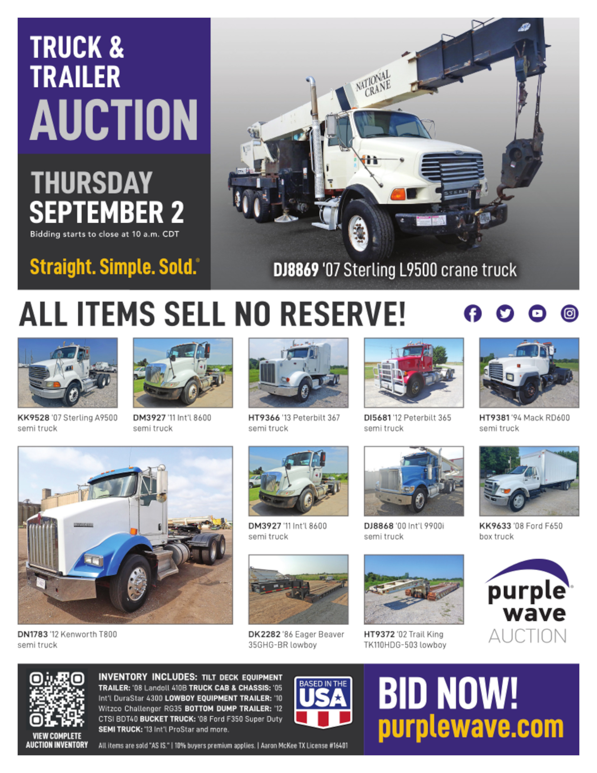 SOLD! Thursday September 2 Truck and Trailer Auction