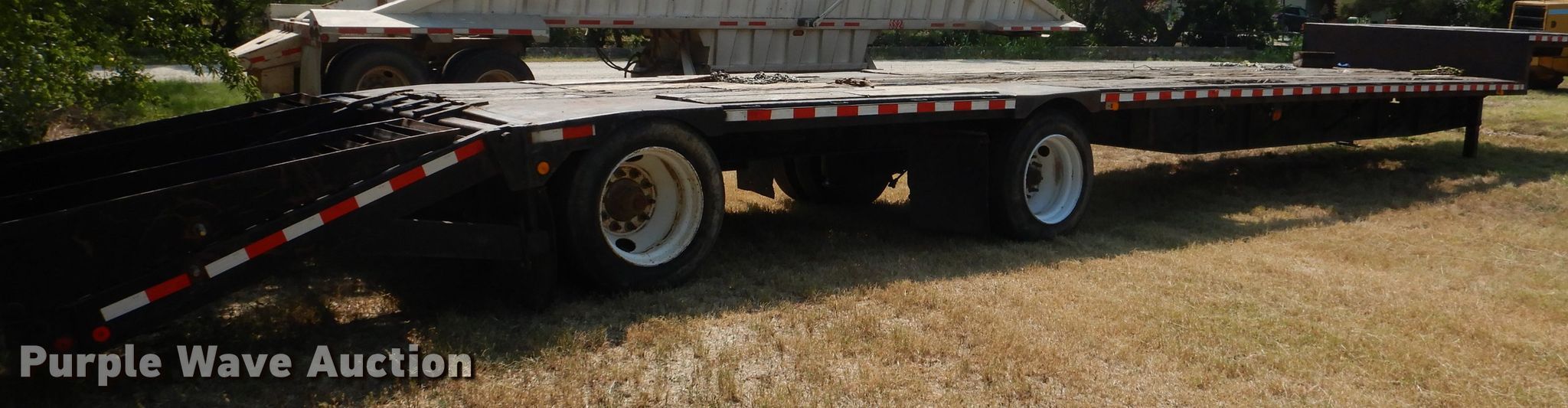 Purple Wave is selling a used Flat or Drop Deck Trailer in Texas. This item is a 2000 Nabors DFF drop deck equipment trailer with the following: Overall: 45' x 8' 2" W, Deck: 38' 4" L x 8' 2" W, Top deck length: 10', Tail length: 6' 3", Ramps: Manual, Length: 5' 10"