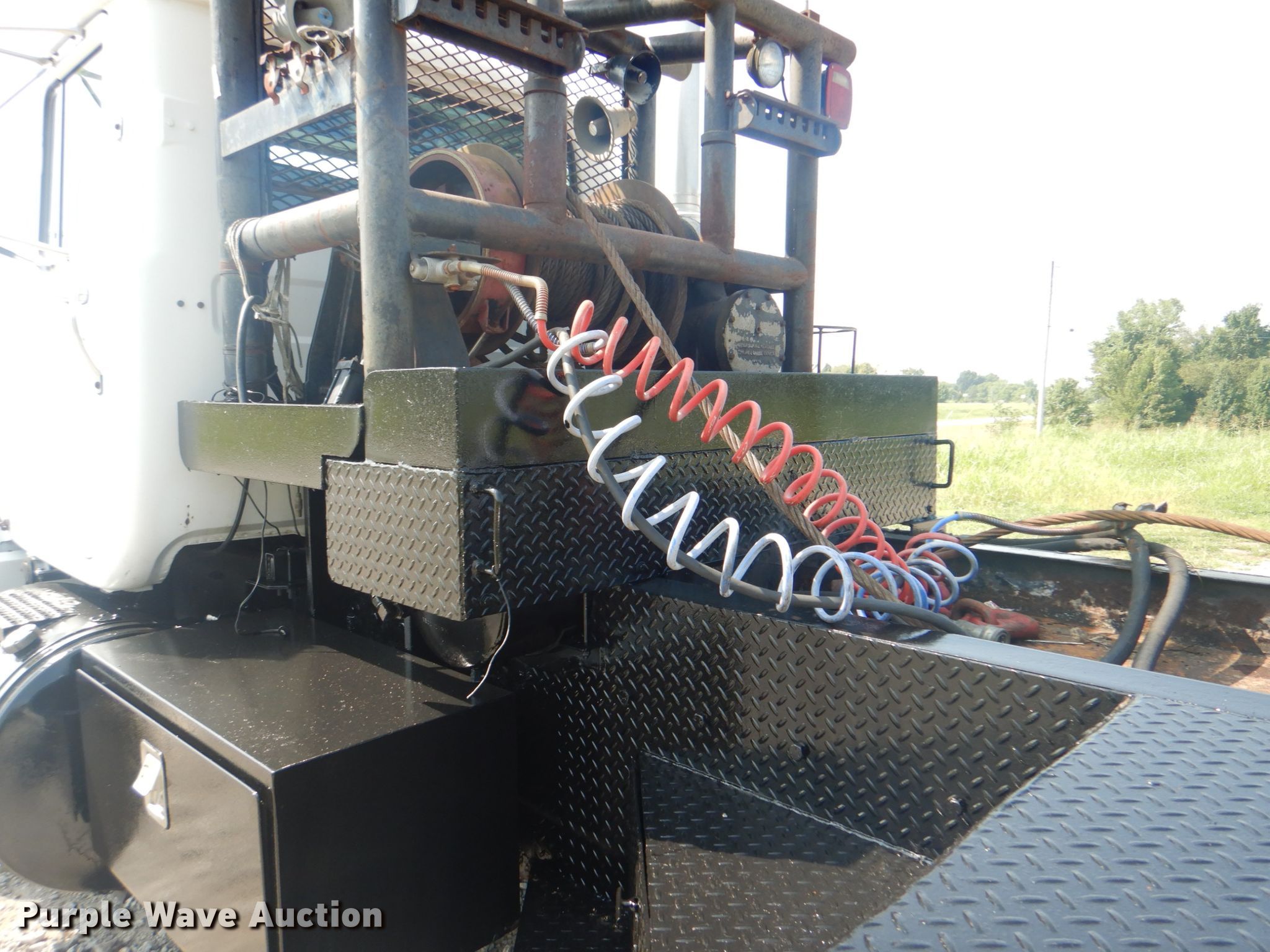 1994 Mack RD600 semi truck. 135,823 miles on odometer, Engine hours: 8,726. Engine Mack, Displacement: 12.0L, Cylinders: 6, Fuel type: Diesel. Transmission Mack Maxitorque, Manual, Speed: 12. Chassis Axles: Tandem, Suspension: Walking beam, Brakes: Air, PTO. Interior AC, Heat, Heated mirrors, Cruise control. Operational Winch Tulsa Winch, Fifth wheel type: Fixed, Rolling tailboard, Fuel tank: Dual. Tires Size: 11R24.5. Notes Windshield chipped or cracked. Oklahoma classic title. 1M2P270Y6RM016888. 15801 N 145th E. Ave. Collinsville, OK 74021