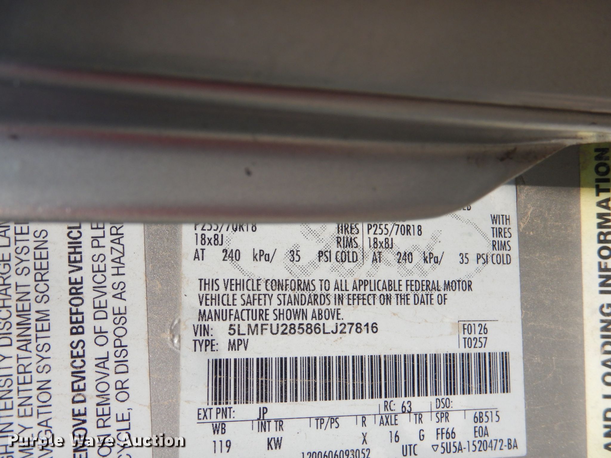 2006 Lincoln Navigator SUV. Unknown miles on odometer. Engine Displacement: 5.4L V8 SOHC 24V, Cylinders: 8, Fuel type: Gas. Transmission Automatic, Four wheel drive. Interior AC, Heat, Seat: Power driver, Power windows, Power locks, Cruise control, Powered sunroof. Tires Size: P255/70R18. Notes Non-operational dash lights. Oklahoma title. Title distribution may be delayed up to 14 days from verification of funds. 5LMFU28586LJ27816. The Truck Shop. 207 S Woody Guthrie St. Okemah, OK 74859
