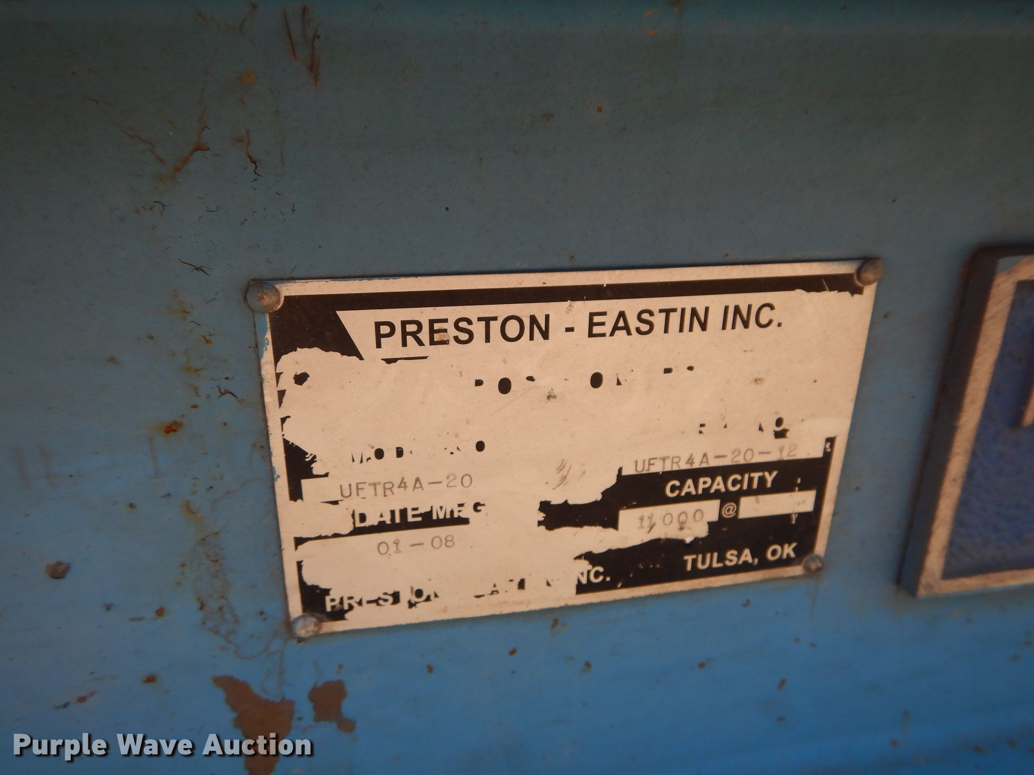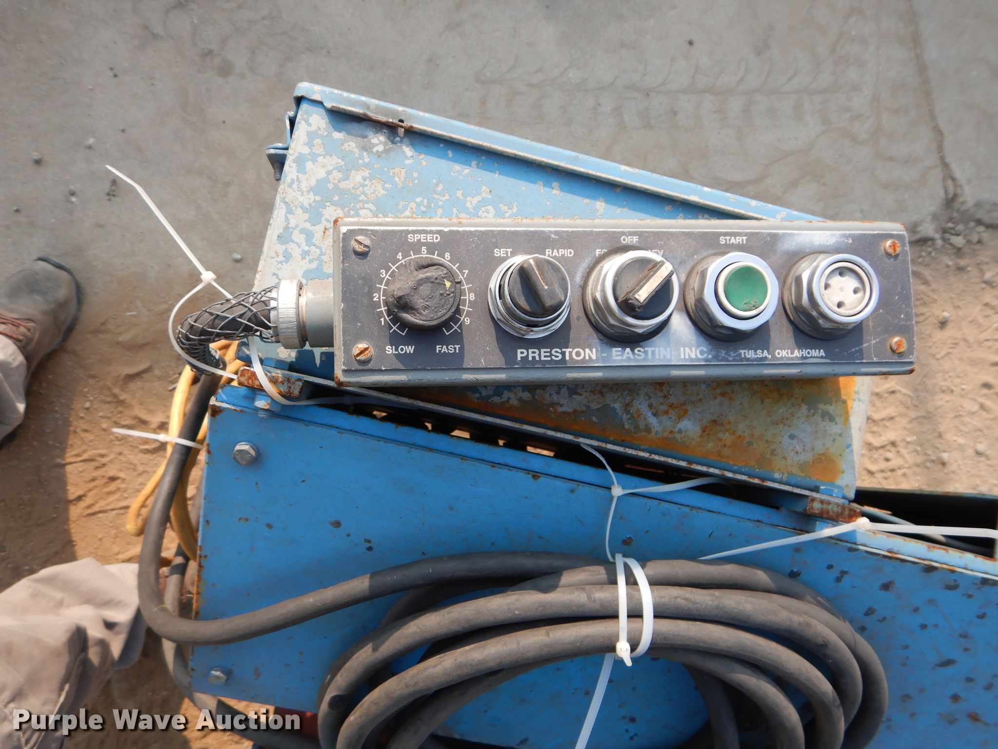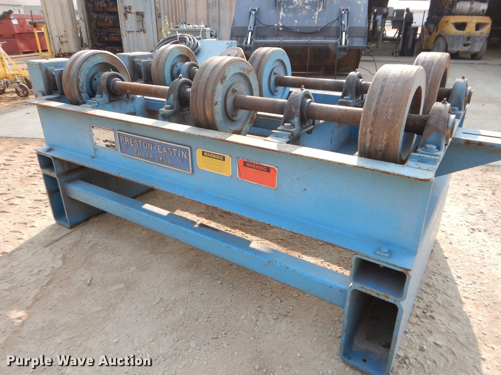 Purple Wave is selling a used Tools in Kansas. This item is a Preston-Eastin UFTR4A-20 pipe roller with the following: 8' L x 5' W x 3' H, Capacity: 20 tons, 12" rollers, 110V