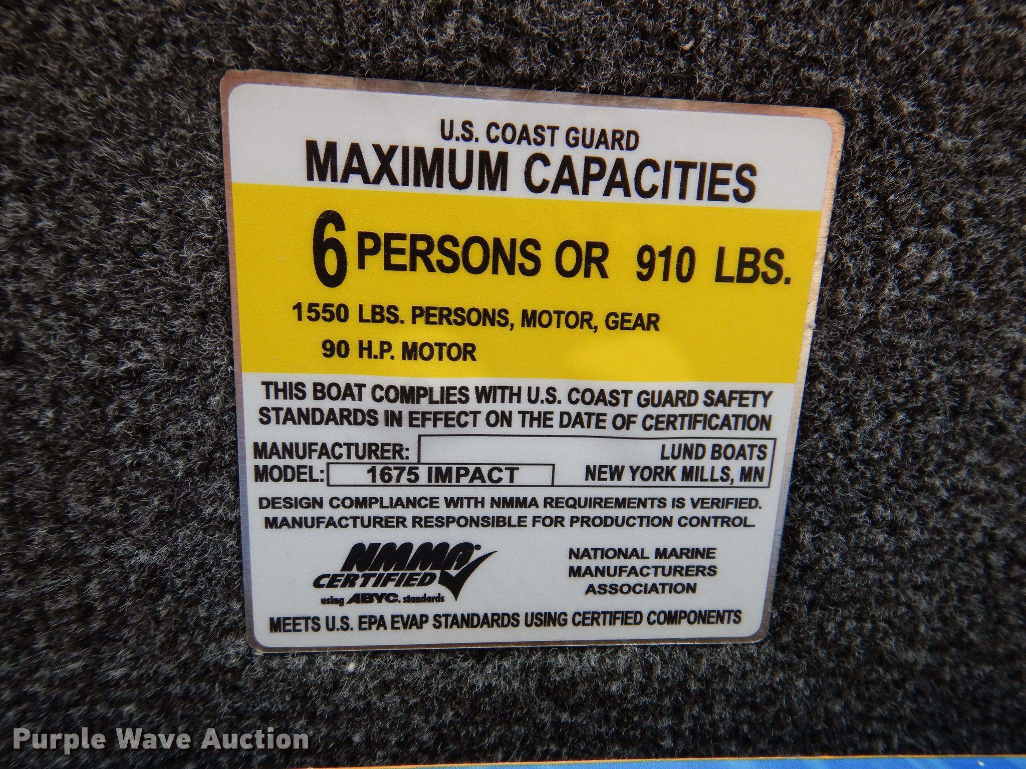 2021 Lund 1675 Impact boat. Unknown hours on meter, Length: 16' 9", Hull ID: US-LBBHU216G021. Engine Engine type: Outboard, Mercury 1F904232D, Serial: 2B802361, Displacement: 2.0L, Cylinders: 4, Fuel type: Gas, HP: 90. Operators station Capacity Person: 6, 910 lbs. Trailer 2021 Midwest Shore Lander, Overall length: 19.5', Overall width: 101", GVWR: 2,995 lbs, Ball hitch size: 2", Axles: Single, Tire size: ST215/75R14. Notes Unused, No prop. Transfer of ownership documentation will be a bill of sale which will be assigned and distributed by the seller. 1MDAPAT10MA703711. Moon River Auto LLC. 225 1st St. Doon, IA 51235
