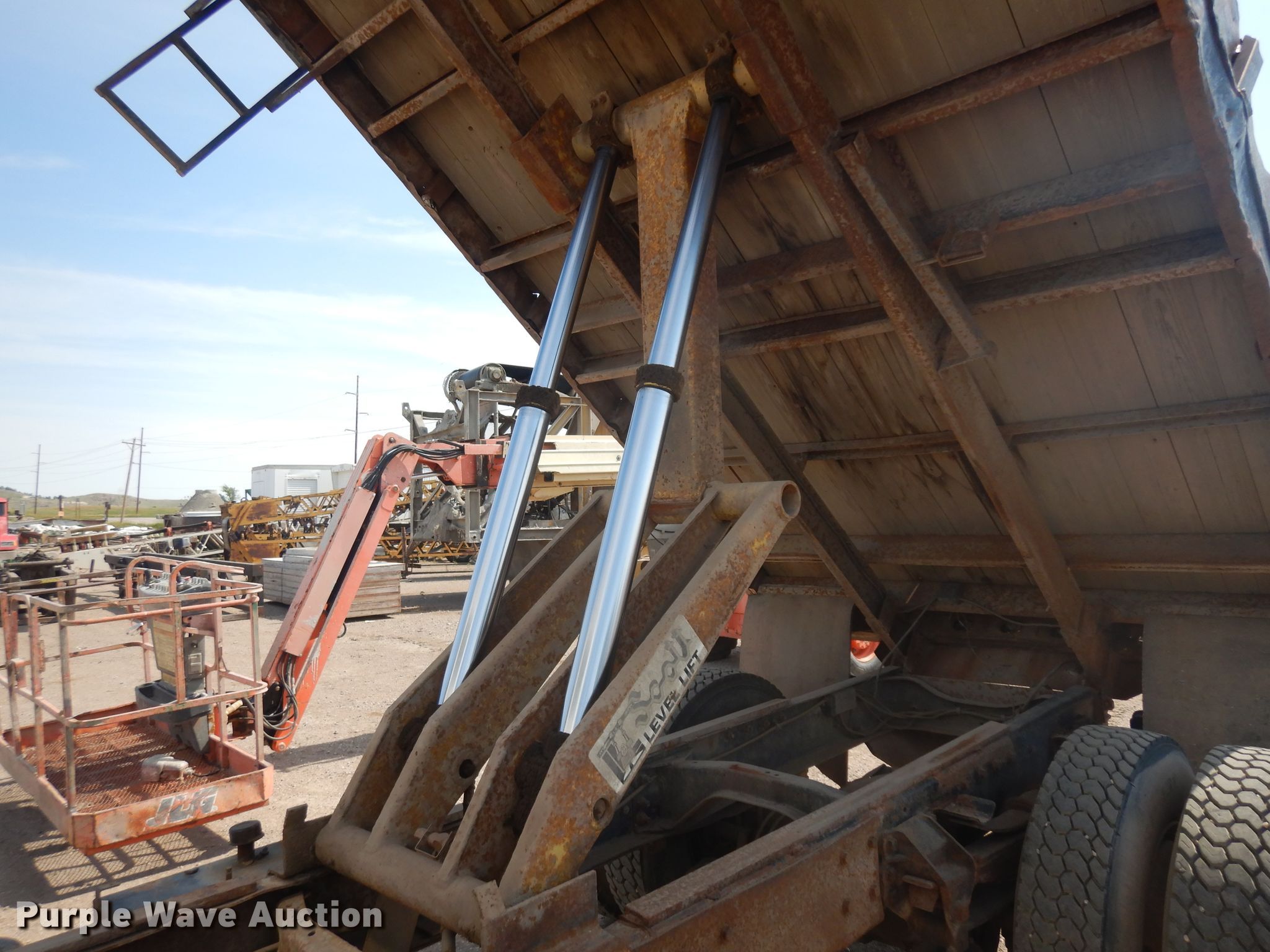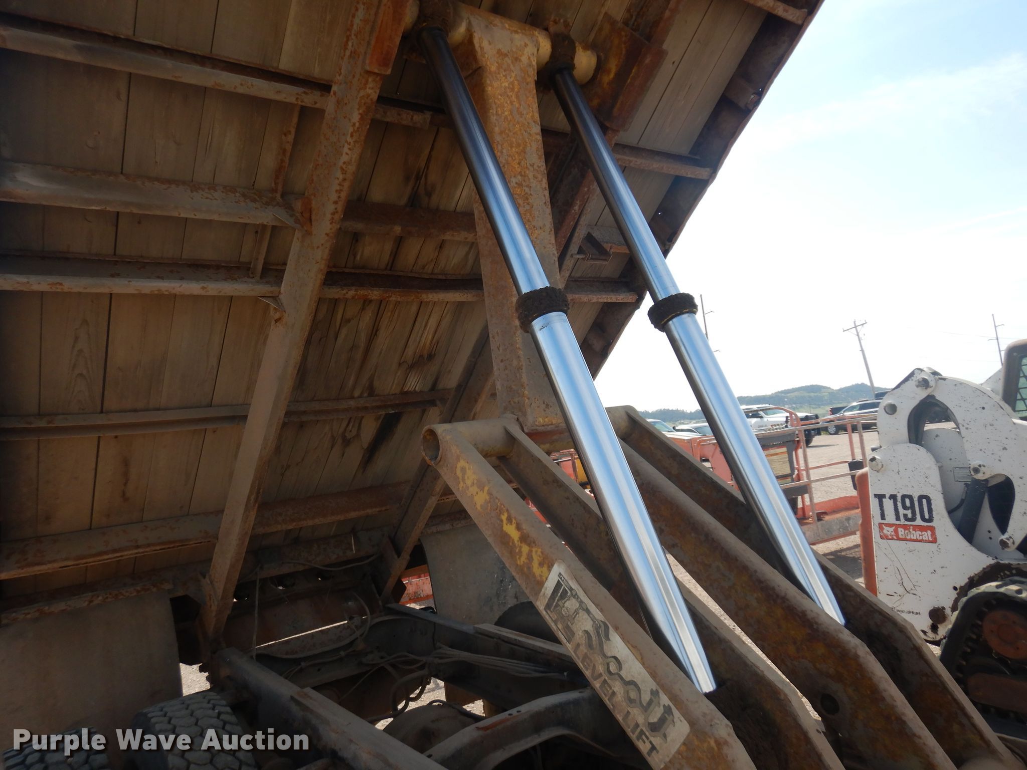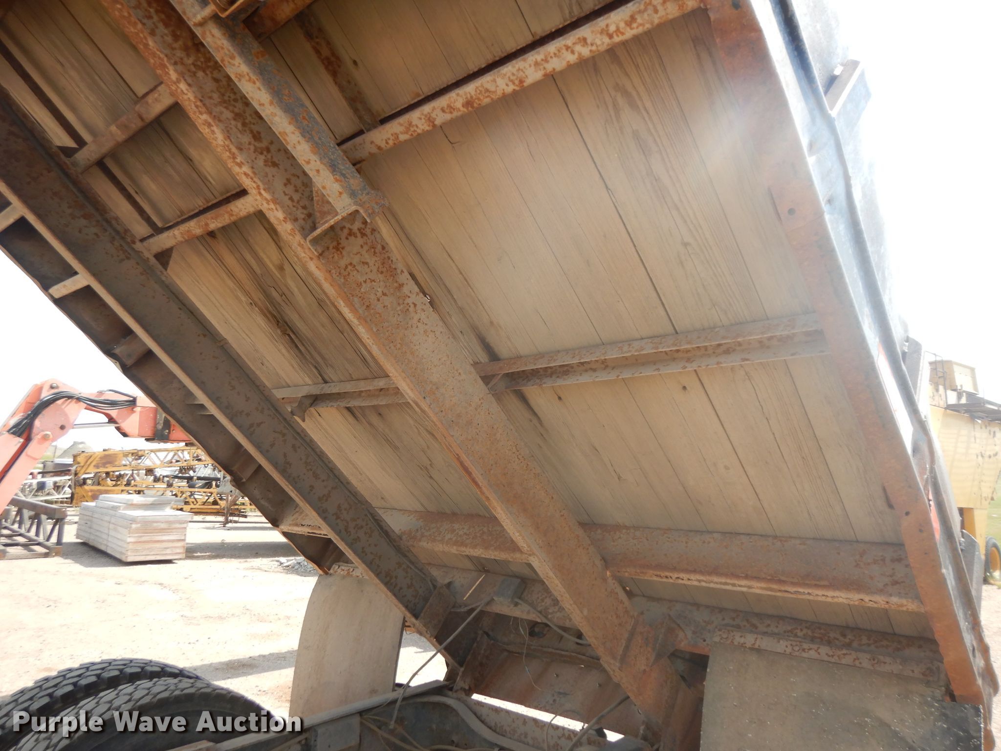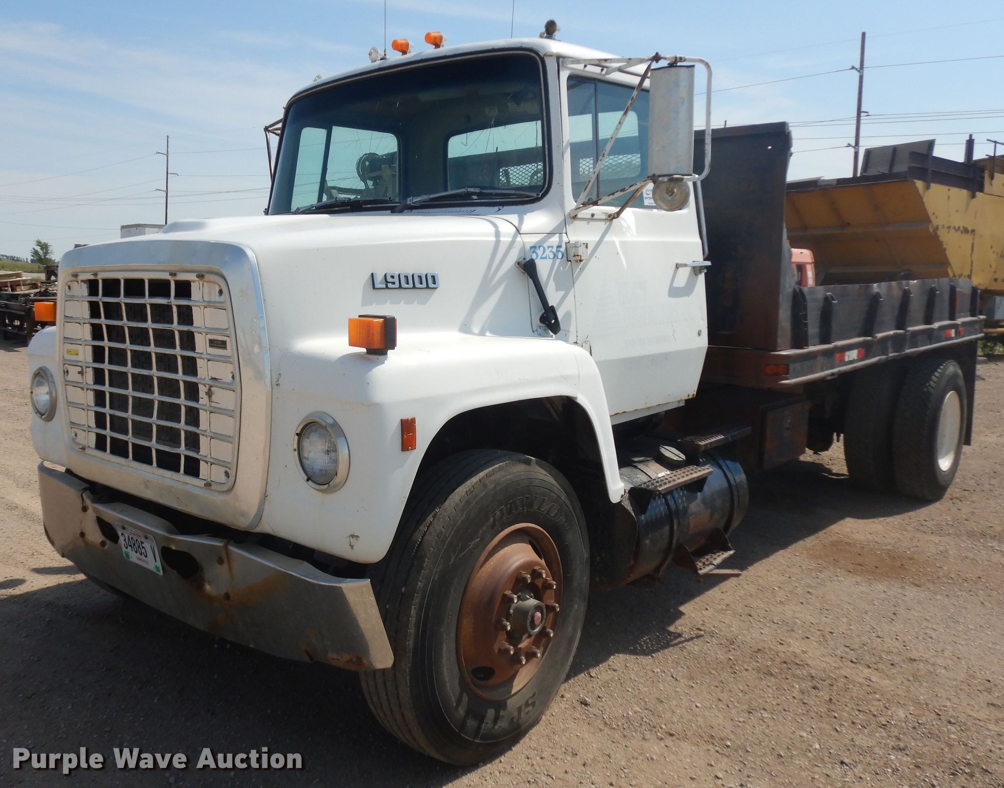 1987 Ford L9000 flatbed truck. 377,765 miles on odometer. Engine Cummins NTC-315, Displacement: 14.0L, Cylinders: 6, Fuel type: Diesel. Transmission Manual, Speed: 9. Chassis Axles: Single, Suspension: Spring, Brakes: Air, PTO, GVWR: 33,200 lbs. Interior AC, Heat. Operational Dump flatbed 13' L x 94" W, Ram: Double. Tires Size: 11R22.5. South Dakota title. Title distribution may be delayed up to 14 days from verification of funds. 1FDYR90W8HVA21450. Gustafson Builders. Rapid City, SD 57703