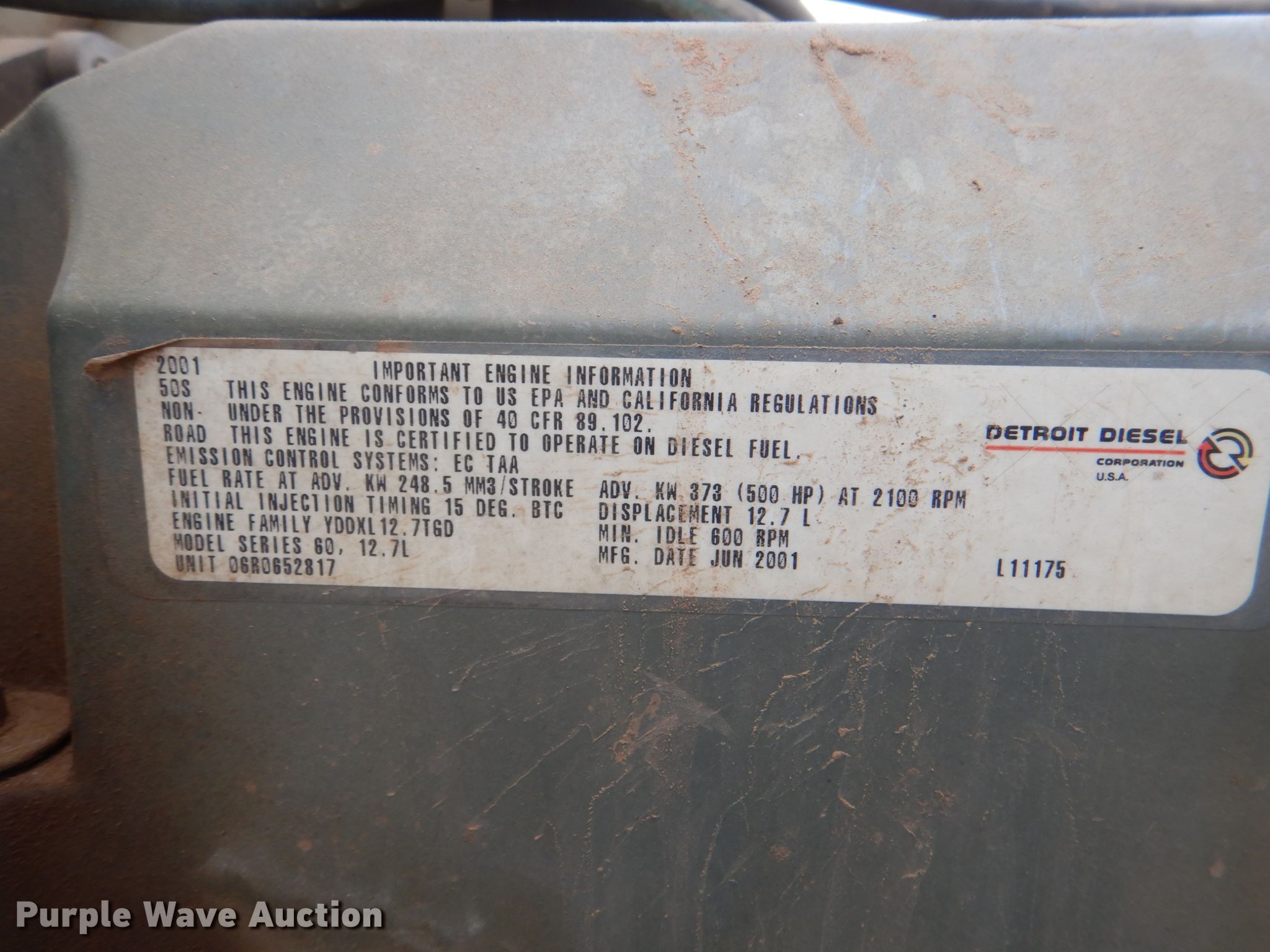 2002 Terex TA40 haul truck. Unknown hours on meter, Serial: A7771419. Engine Detroit Diesel Series 60, Serial: 06R0652817, Displacement: 12.7L, Cylinders: 6, Fuel type: Diesel. Transmission Automatic. Chassis Six wheel drive. Operational Dump bed 223"L x 120"W, Side height: 36". Interior AC, Heat, Retarder. Tires Size: 29.5R25. Notes Windshield chipped or cracked. 2555 A Mississippi Ave. Atoka, OK 74525
