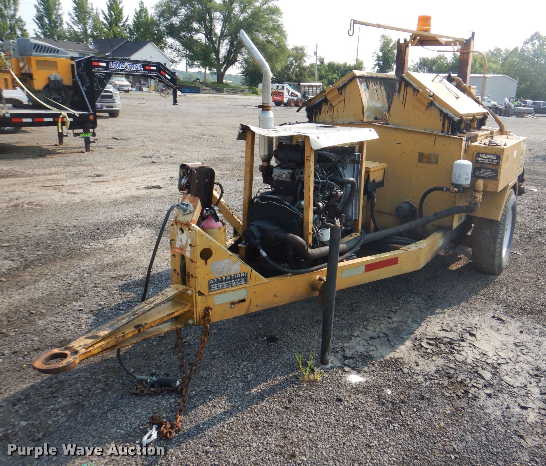 Bear Cat BK250D melter / applicator. 3,774 hours on meter, Serial: 2132000. Engine Cylinders: 3, Fuel type: Diesel. Operational Capacity: 250 gallons, Mixing auger, Diesel fired burner. Trailer 16'L x 80"W trailer , Hitch: Pintle, TS235/80R16 tires. Notes Additional parts included. Transfer of ownership documentation will be a bill of sale. 2132000. 29807 SW Eagles Pkwy. Grain Valley, MO 64029