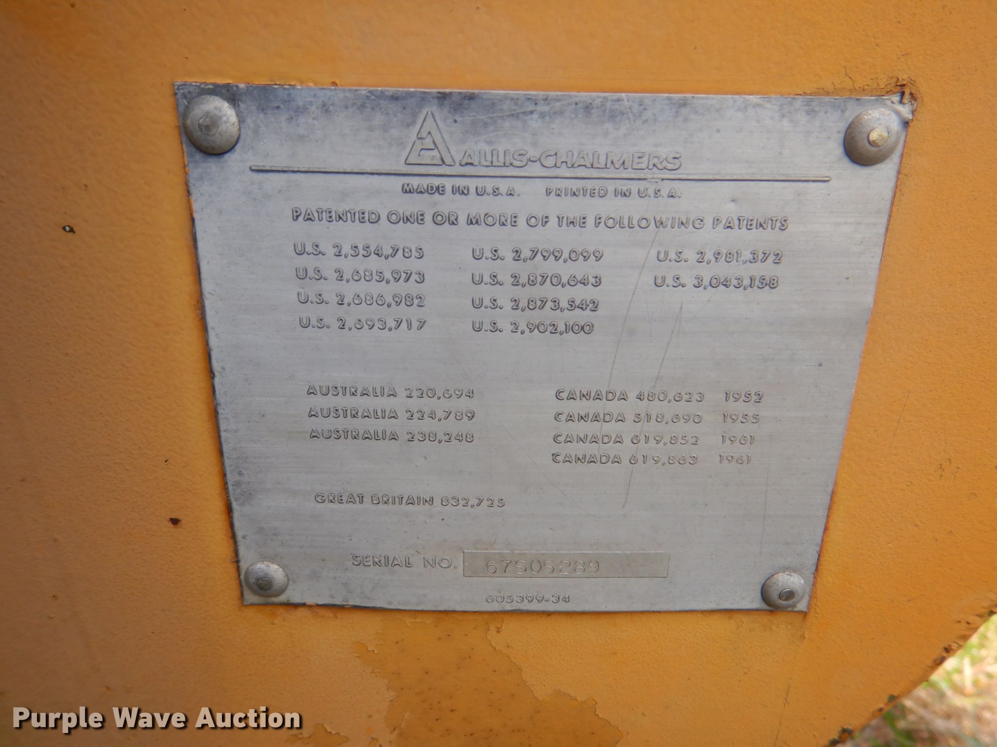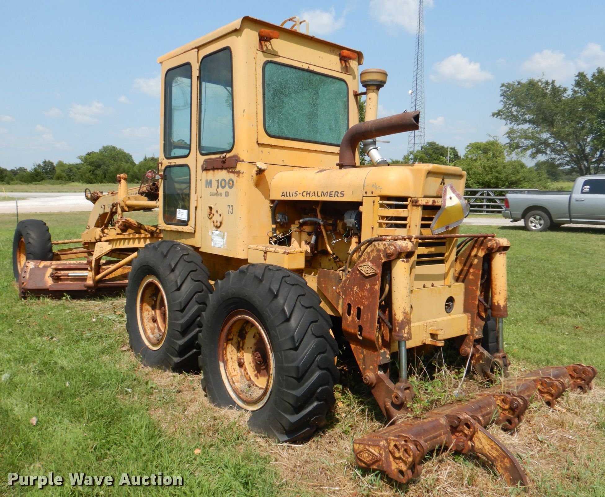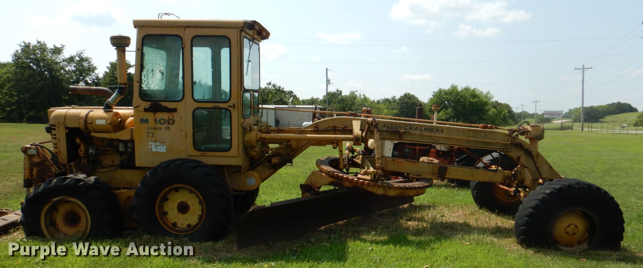 Purple Wave is selling a used Motor Grader in Oklahoma. This item is a Allis-Chalmers M100 Series B rigid frame motor grader with the following: 1,667 hours on meter, Serial: 67S05289