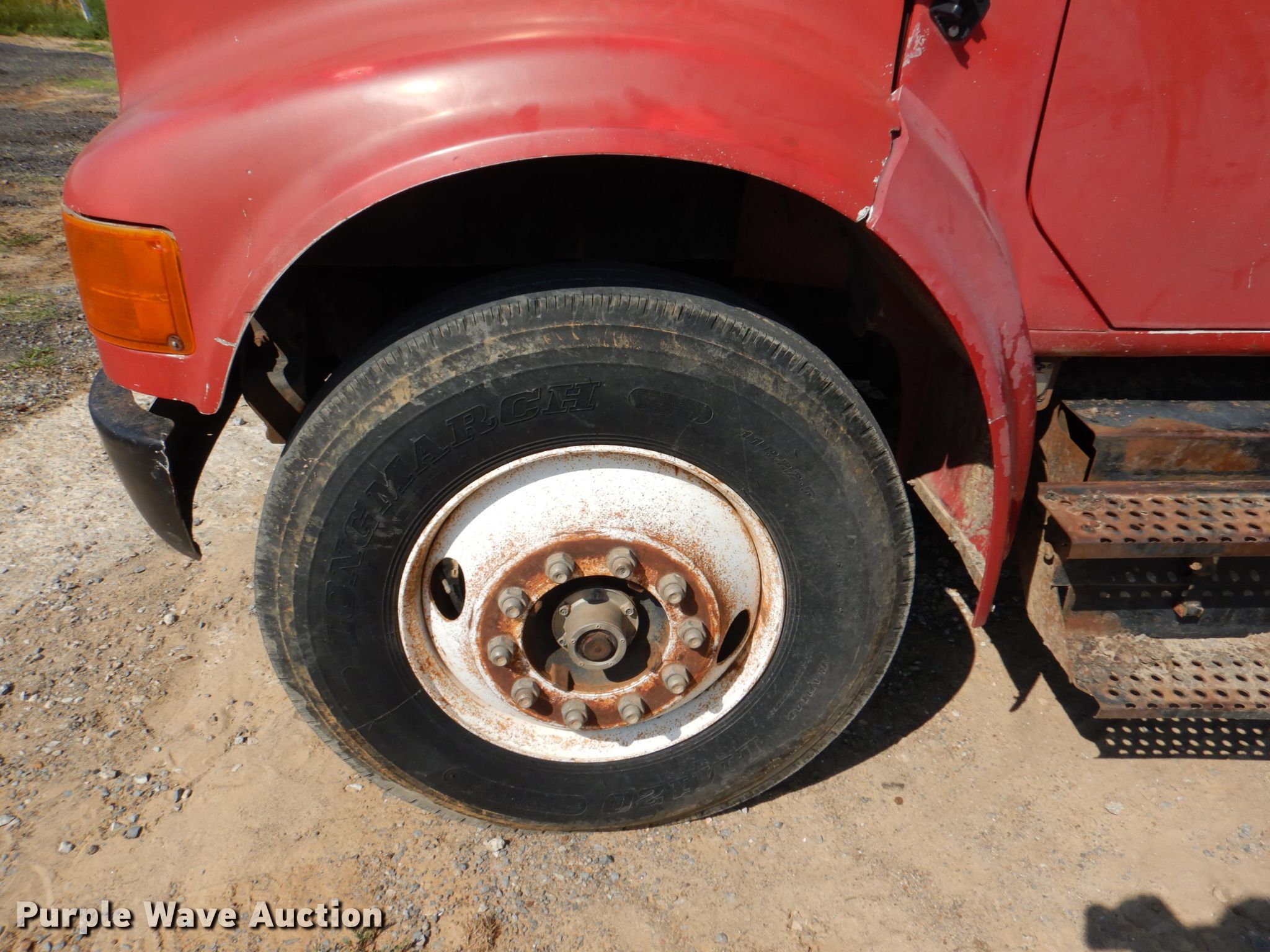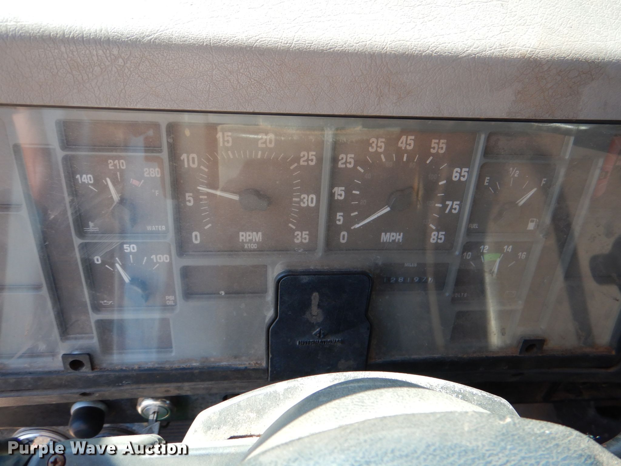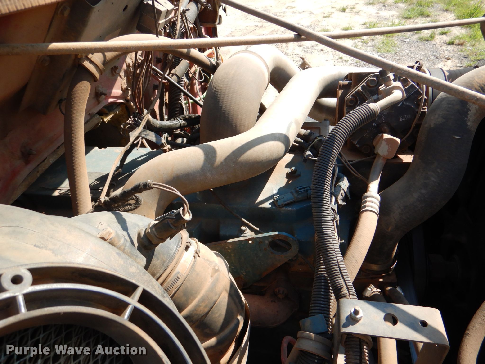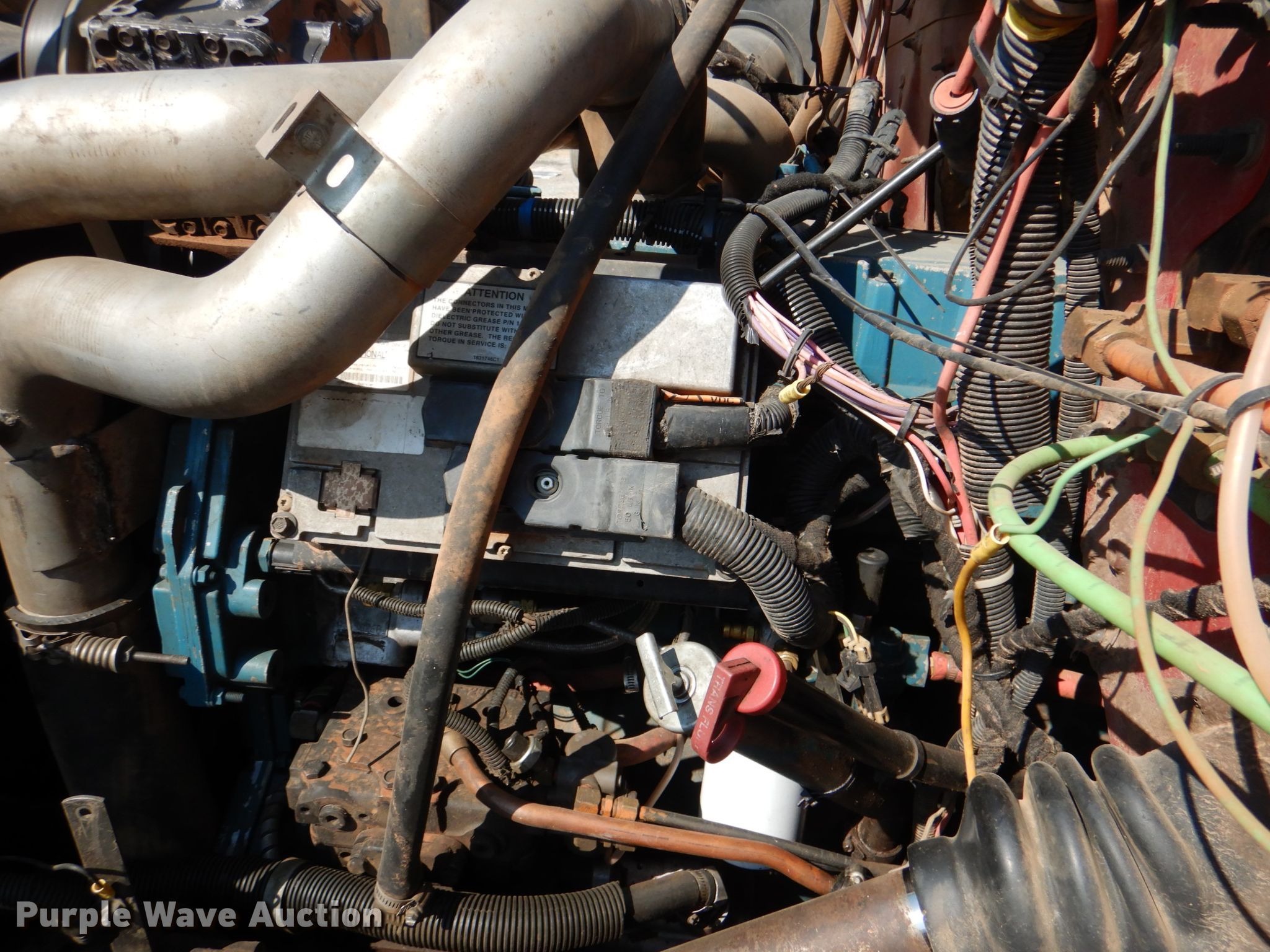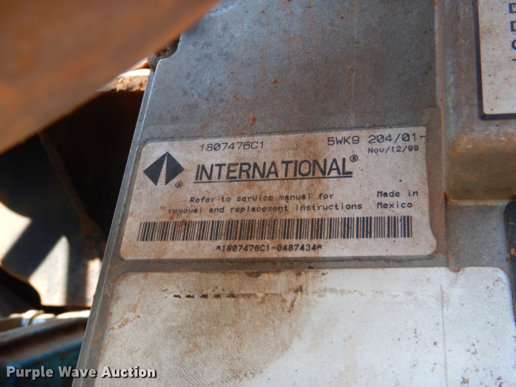 2000 International 4900 dump truck. 128,198 miles on odometer. Engine International DT466, Displacement: 7.6L, Cylinders: 6, Fuel type: Diesel. Transmission Automatic. Chassis Axles: Tandem, Suspension: Spring over walking beam, Brakes: Air, PTO. Interior AC, Heat. Operational Dump bed McLain Galion 502F, Capacity: 10.8 cu.yd., 14' x 96" W, Side height: 42", Side board height: 12", Bed type: Steel, Roll tarp, Ram: Single , End gate: Air operated. Tires Size: 11R22.5. Notes Windshield chipped or cracked. Oklahoma title. Title distribution may be delayed up to 14 days from verification of funds. 1HTSHAAR6YH257992. Key Equipment. 1327 George Nigh Expressway. McAlester, OK 74502