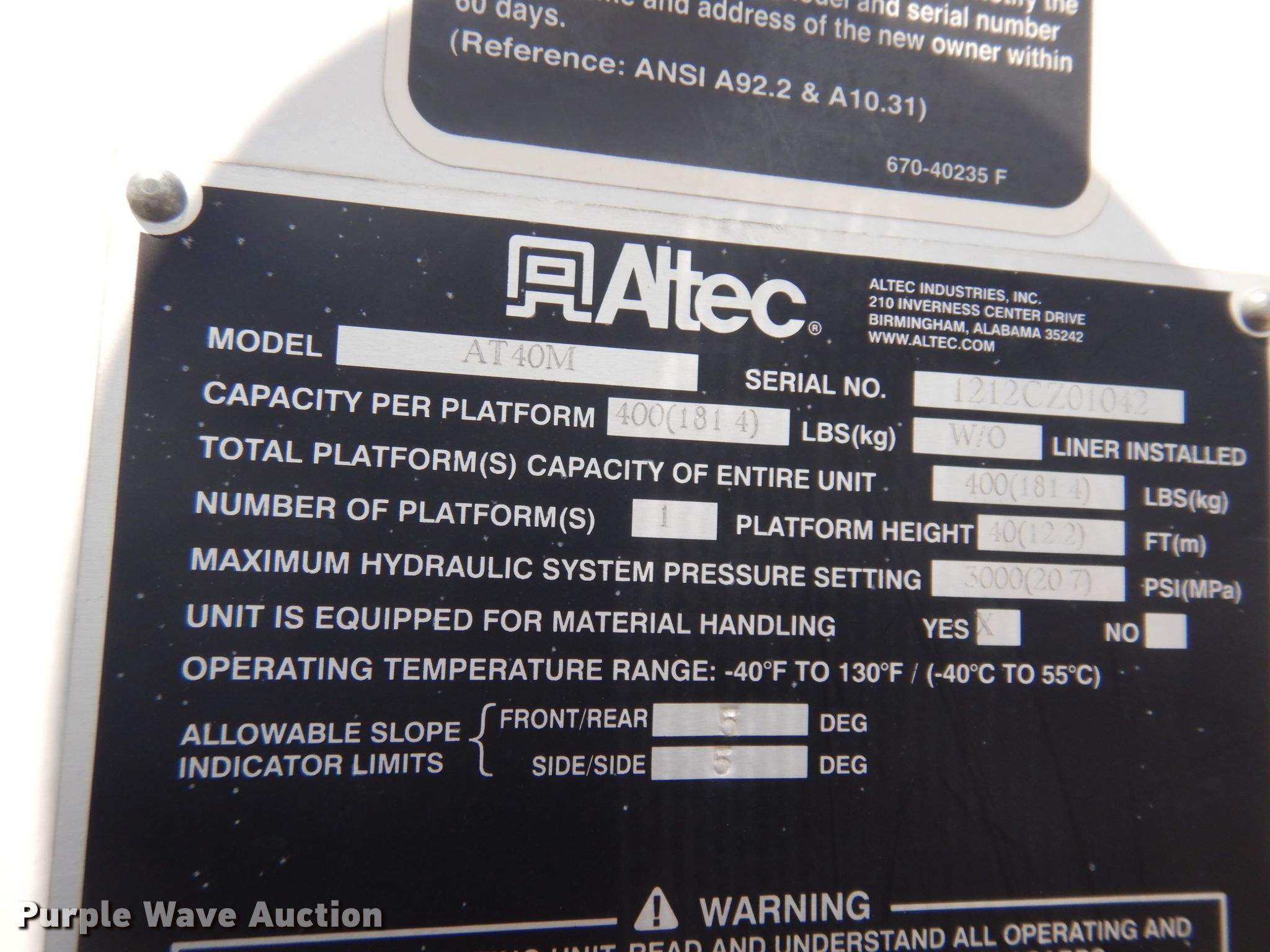 - Maximum lift height: 40'
