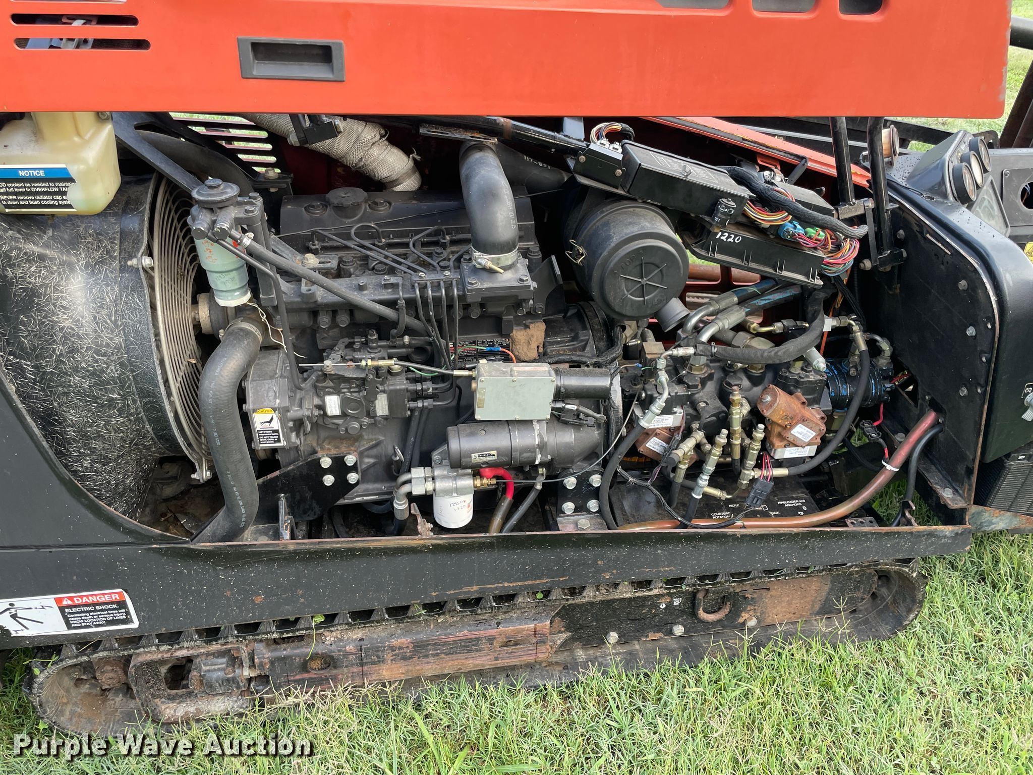 2006 Ditch Witch JT1220 directional boring unit. 1,338 hours on meter, Serial: CMWJ1220J60000063. Engine Cummins B3.3, Serial: 68036247, Displacement: 3.2L, Cylinders: 4, Fuel type: Diesel. Operational Ground drive remote Tethered, Drill bit width: 2.25", Drill stems On drill: 1, Drill stem length: 10', Auto rod loader, Rear hydraulic stabilizers. Tracks Width: 10", Rubber. Notes Hour meter has been replaced. 9347 N 431st Rd. Adair, OK 74330