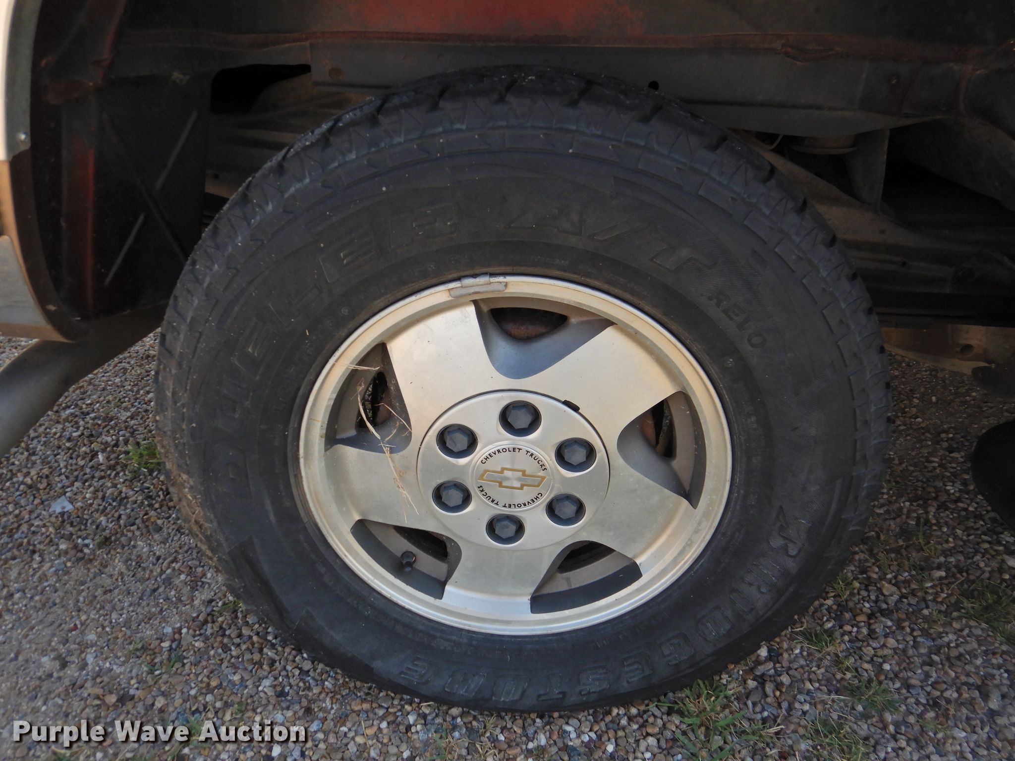 1999 Chevrolet Tahoe SUV. 97,904 miles on odometer. Engine Displacement: 5.7L V8 OHV 16V, Cylinders: 8, Fuel type: Gas. Transmission Automatic, Four wheel drive. Interior AC, Heat, Seat: Power driver, Power windows, Power locks, Cruise control. Tires Size: 245/75R16. Notes Windshield chipped or cracked, Battery needs replaced. Texas title. 1GNEK13R9XJ414325. City of Stinnett. 806 S Morse Ave. Stinnett, TX 79083