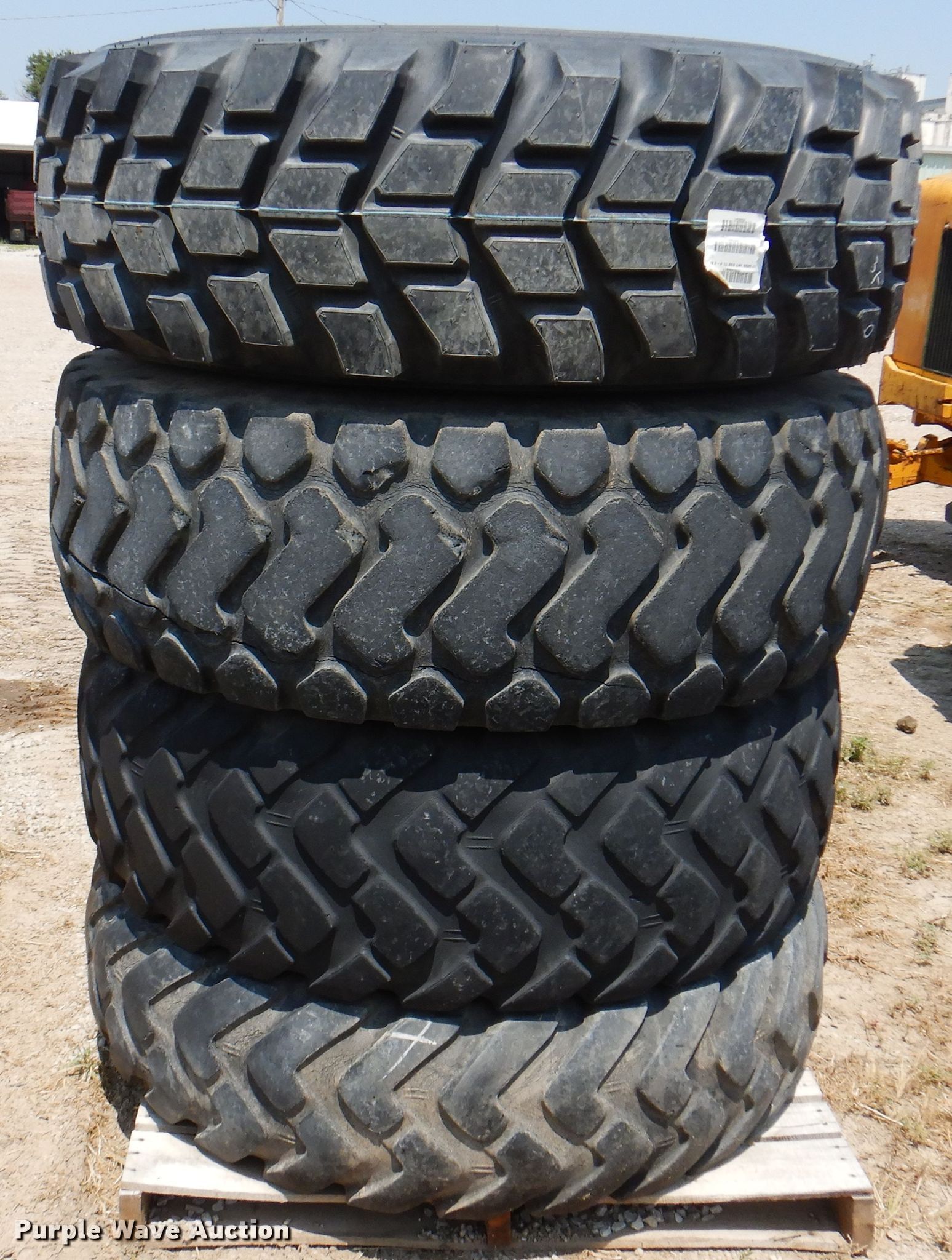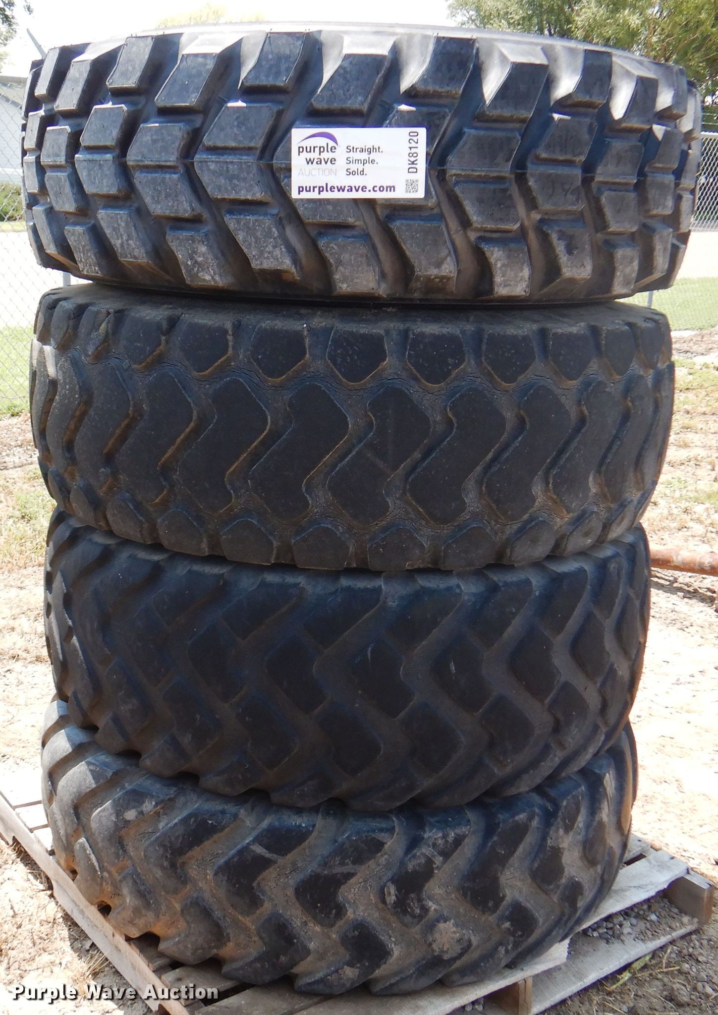 Purple Wave is selling a used Industrial Tires or Tracks in Kansas. This item is a (4) tires with the following: (2) 17.5R25, One unused, 14.00-24