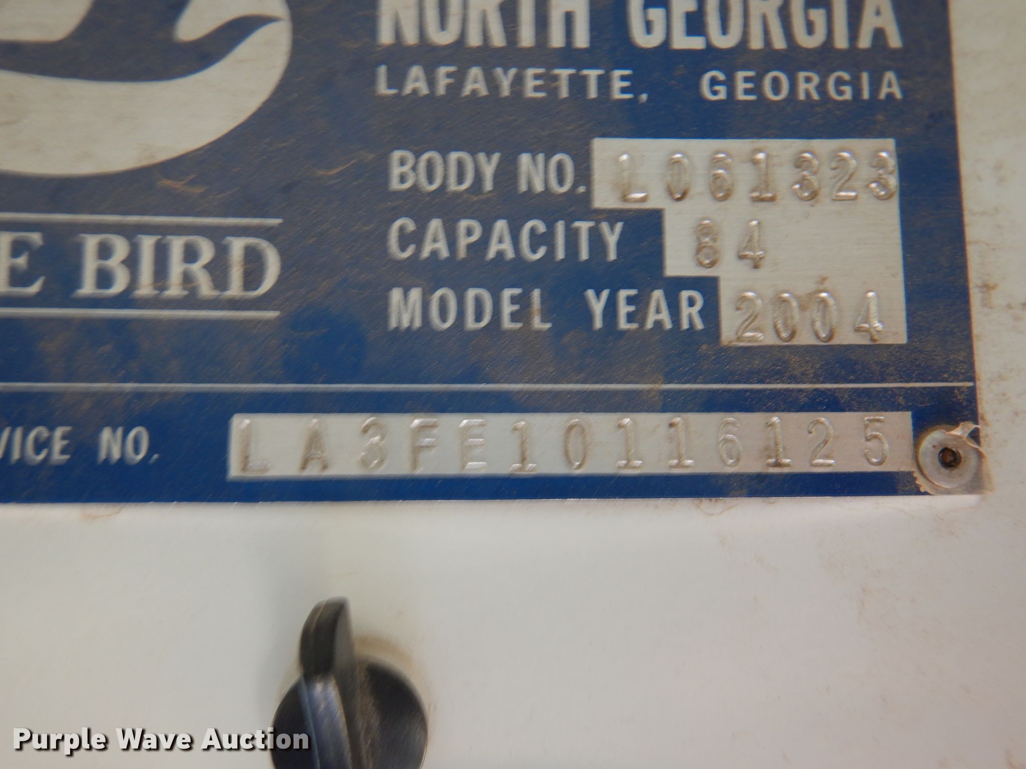 Take a look at this used 2004 Blue Bird All American school bus being sold on September 14th, 2021 in the SOLD! September 14 Government Auction made by Blue Bird. Take a look at all of the item information below or take a look at similar auctions for Transit Vehicles.