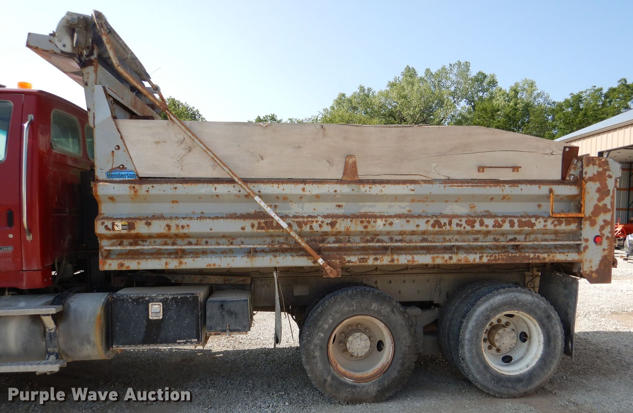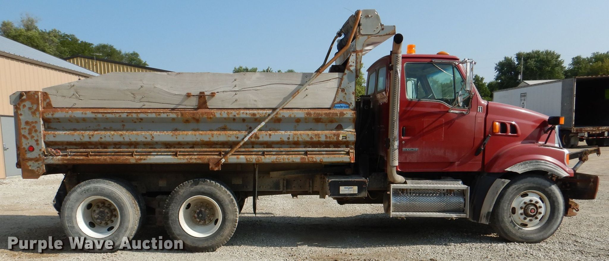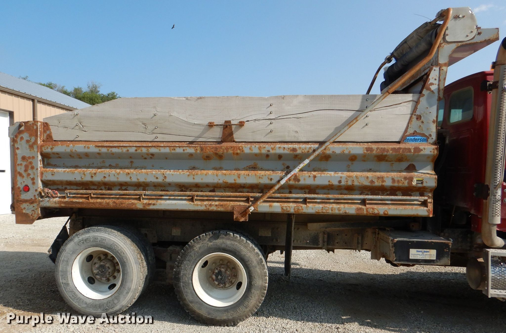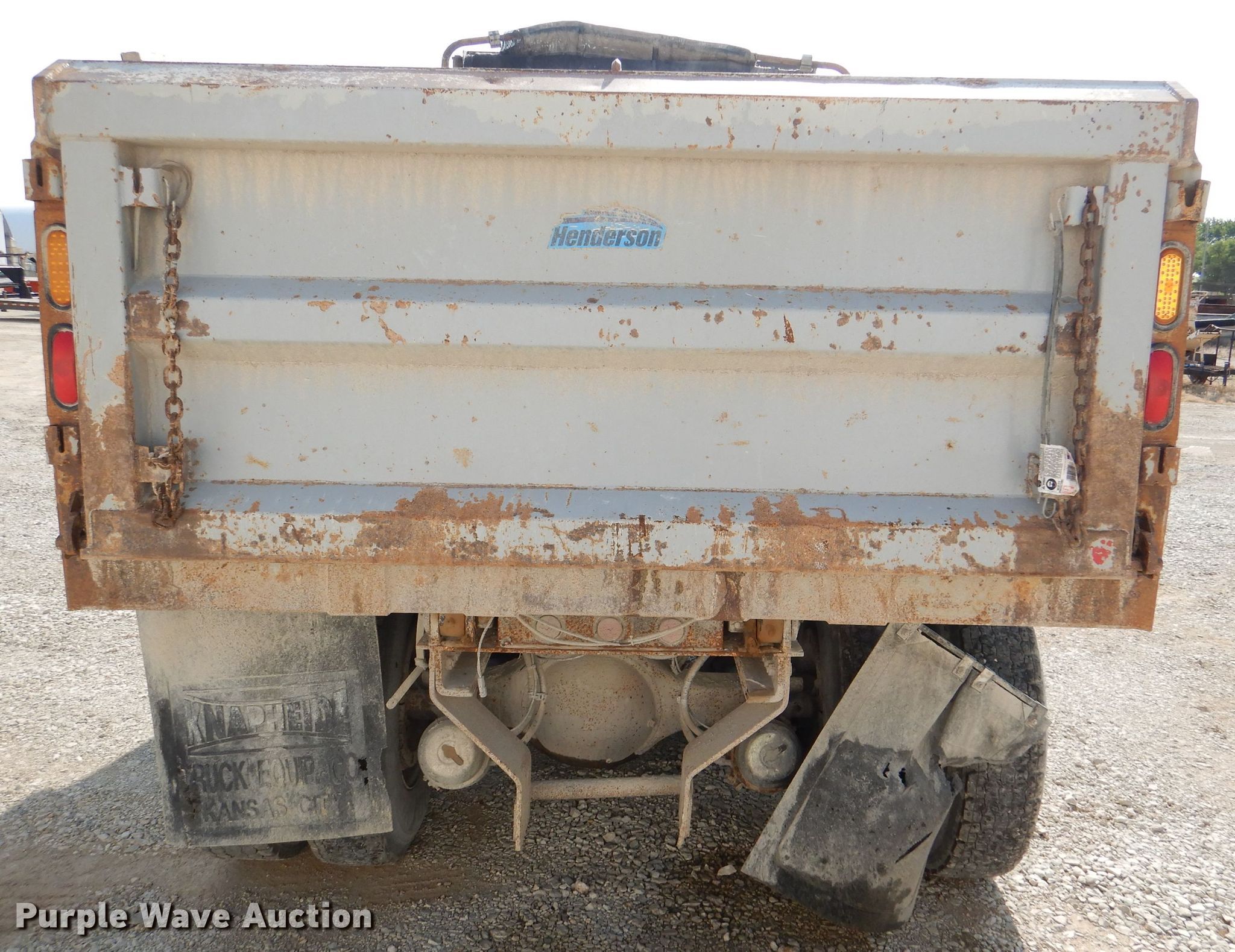 2008 Sterling L9500 dump truck. 231,491 miles on odometer, Engine hours: 9,435, Unit #: 11. Engine Caterpillar C13 Acert, Displacement: 12.5L, Cylinders: 6, Fuel type: Diesel, Engine brake. Transmission Eaton Fuller, Manual, Speed: 13. Chassis Double frame, Axles: Tandem, Differential lock: Inter-axle, Suspension: Spring over walking beam, Brakes: Air, PTO, GVWR: 58,000 lbs FAWR: 18,000 lbs, IAWR: 20,000 lbs, RAWR: 20,000 lbs. Interior AC, Heat, Heated mirrors, Power windows, Cruise control. Operational Dump bed Henderson 45X30X MKE, 15' x 96" W, Side height: 30", Side board height: 18", Bed type: Steel, Roll tarp, Ram: Single. Tires Front: 315/80R22.5, Rear: 11R22.5. Notes Dash warning indicator: ABS, Non-operational fuel gauge. Kansas title. 2FZHAZDE58AAC9098. Pottawatomie County Noxious Weed Dept. Westmoreland, KS 66549