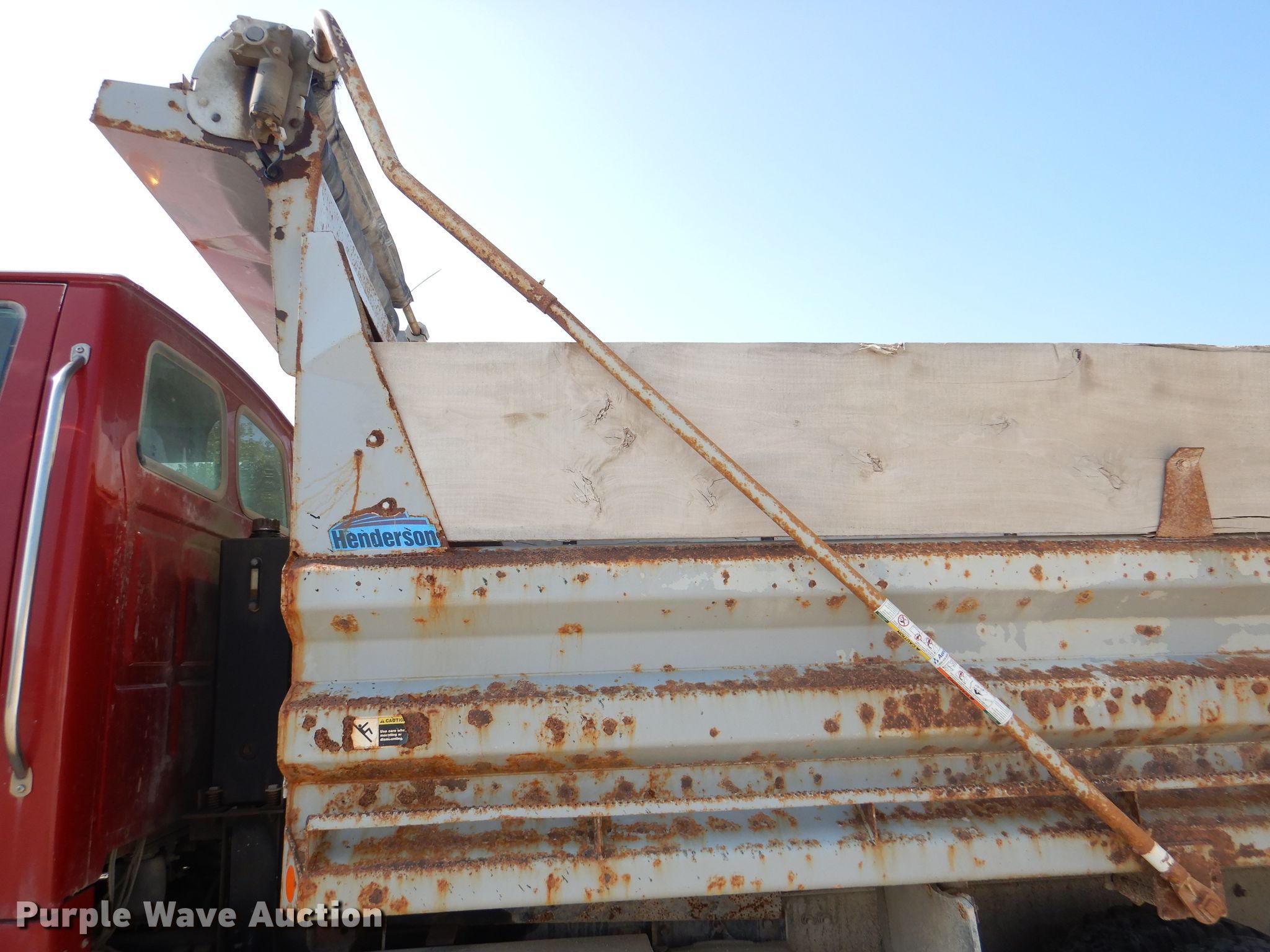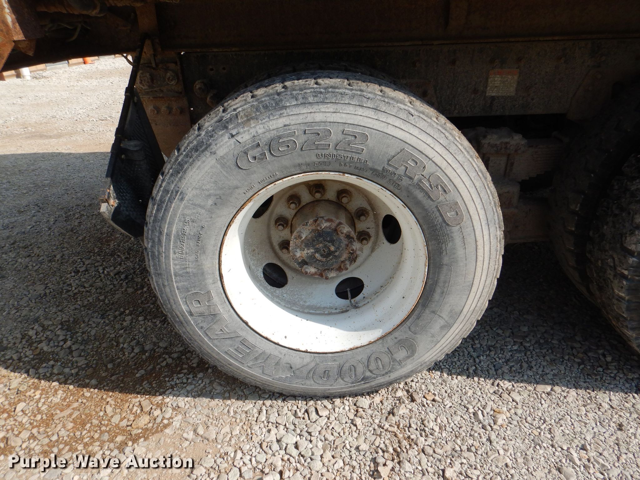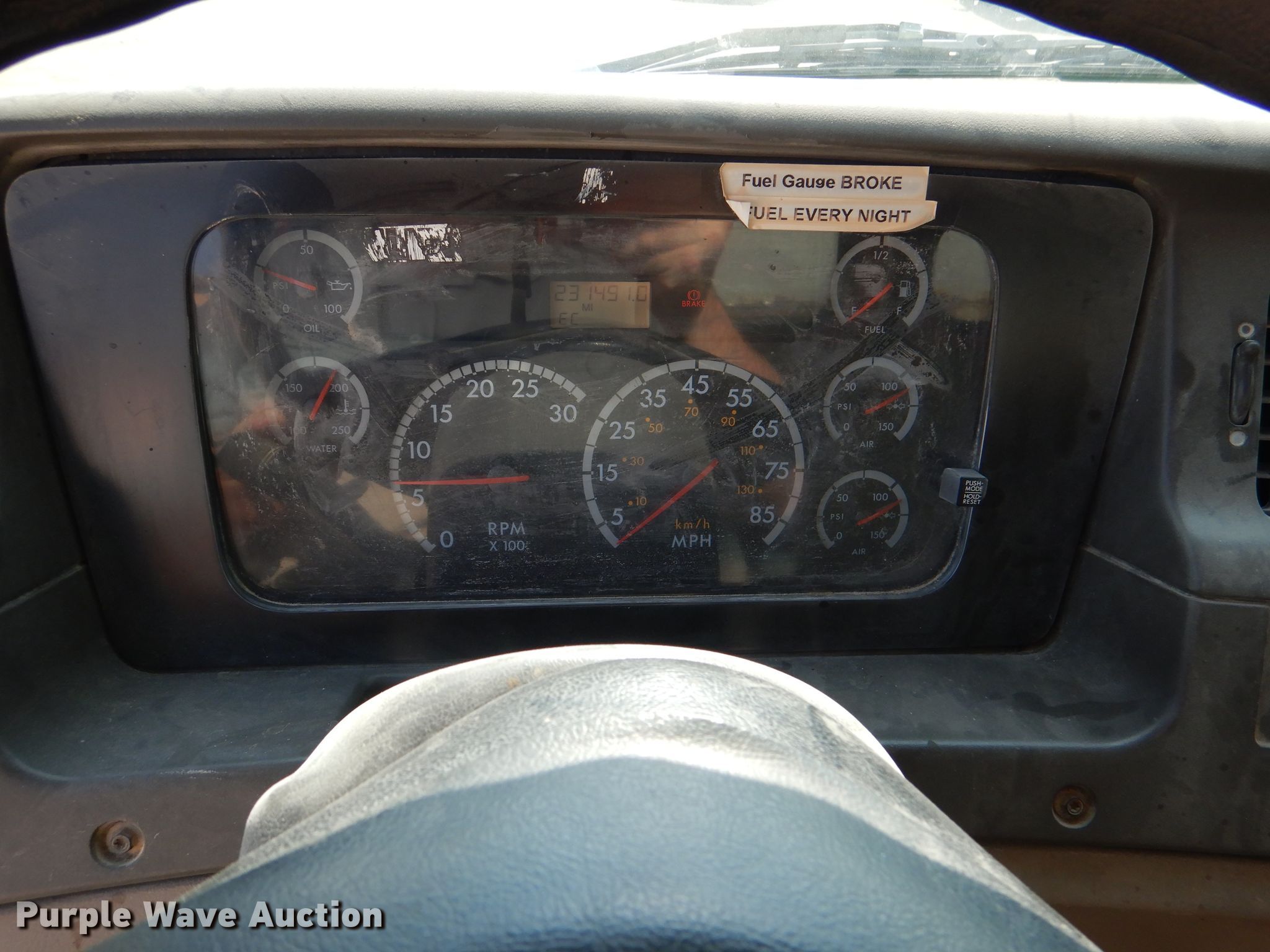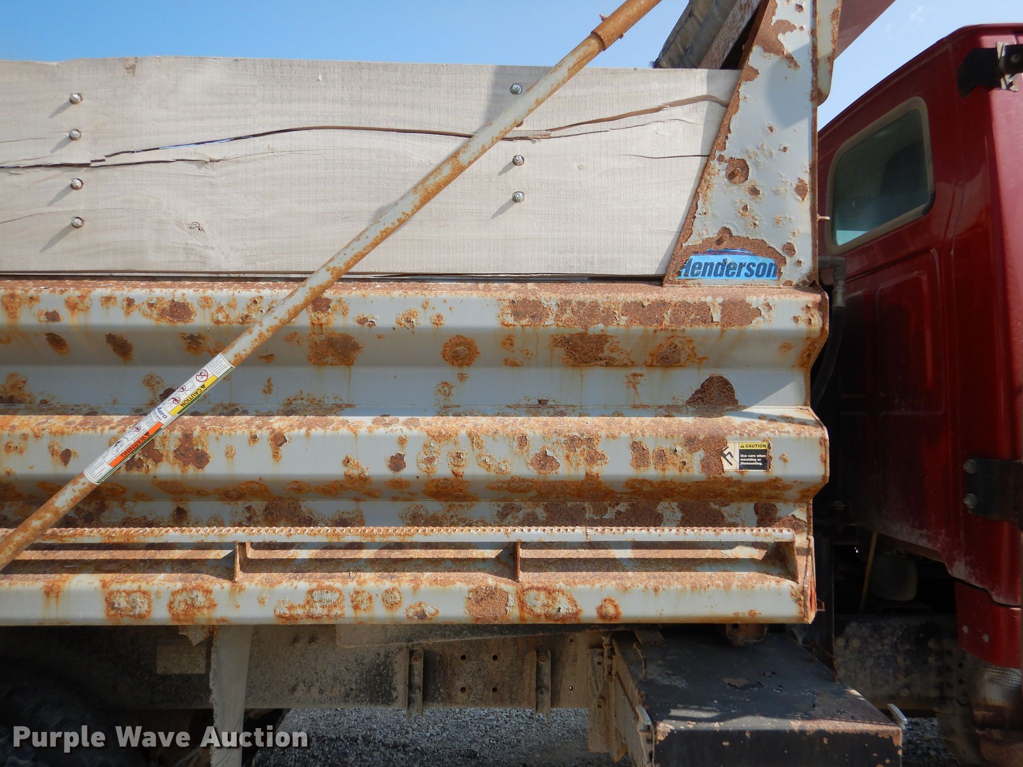 2008 Sterling L9500 dump truck. 231,491 miles on odometer, Engine hours: 9,435, Unit #: 11. Engine Caterpillar C13 Acert, Displacement: 12.5L, Cylinders: 6, Fuel type: Diesel, Engine brake. Transmission Eaton Fuller, Manual, Speed: 13. Chassis Double frame, Axles: Tandem, Differential lock: Inter-axle, Suspension: Spring over walking beam, Brakes: Air, PTO, GVWR: 58,000 lbs FAWR: 18,000 lbs, IAWR: 20,000 lbs, RAWR: 20,000 lbs. Interior AC, Heat, Heated mirrors, Power windows, Cruise control. Operational Dump bed Henderson 45X30X MKE, 15' x 96" W, Side height: 30", Side board height: 18", Bed type: Steel, Roll tarp, Ram: Single. Tires Front: 315/80R22.5, Rear: 11R22.5. Notes Dash warning indicator: ABS, Non-operational fuel gauge. Kansas title. 2FZHAZDE58AAC9098. Pottawatomie County Noxious Weed Dept. Westmoreland, KS 66549