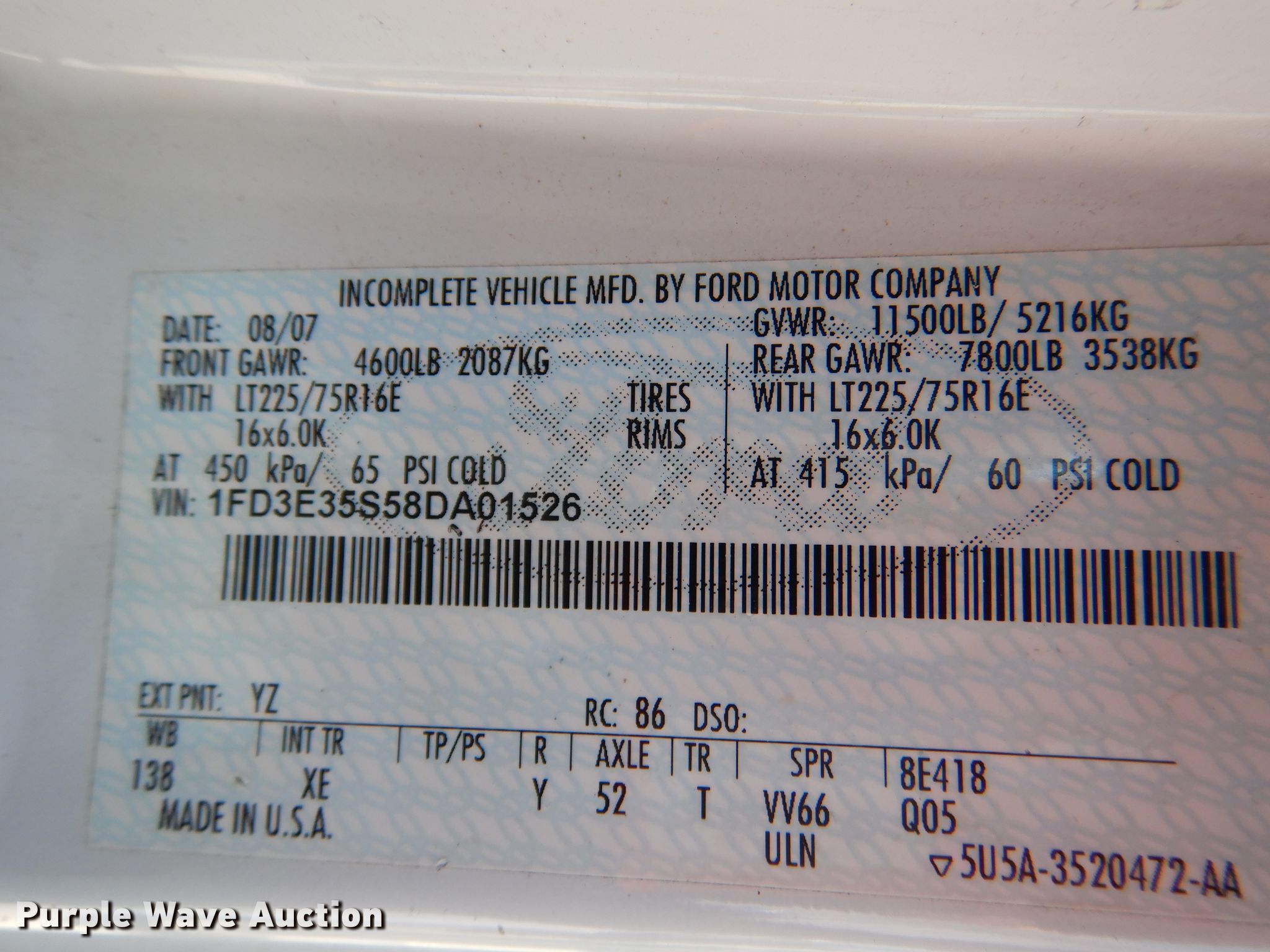 2008 Ford E350 Super Duty shuttle bus. Unknown miles on odometer. Engine Displacement: 6.8L V10 SOHC 20V, Cylinders: 10, Fuel type: Gas. Transmission Automatic. Chassis Axles: Single, Suspension: Spring, Brakes: Hydraulic, GVWR: 11,500 lbs, Wheelbase: 138". Interior AC, Heat, Cruise control, Passengers: 6, Seats Adult seats: 6, Wheelchair lift. Tires Size: 225/75R16. Notes Non-operational unit. Texas title. Mileage has not been verified. Odometer discrepancy will be marked on the title. 1FD3E35S58DA01526. Alamo Area Council of Governments. 1176 Parkridge Dr. San Antonio, TX 78216