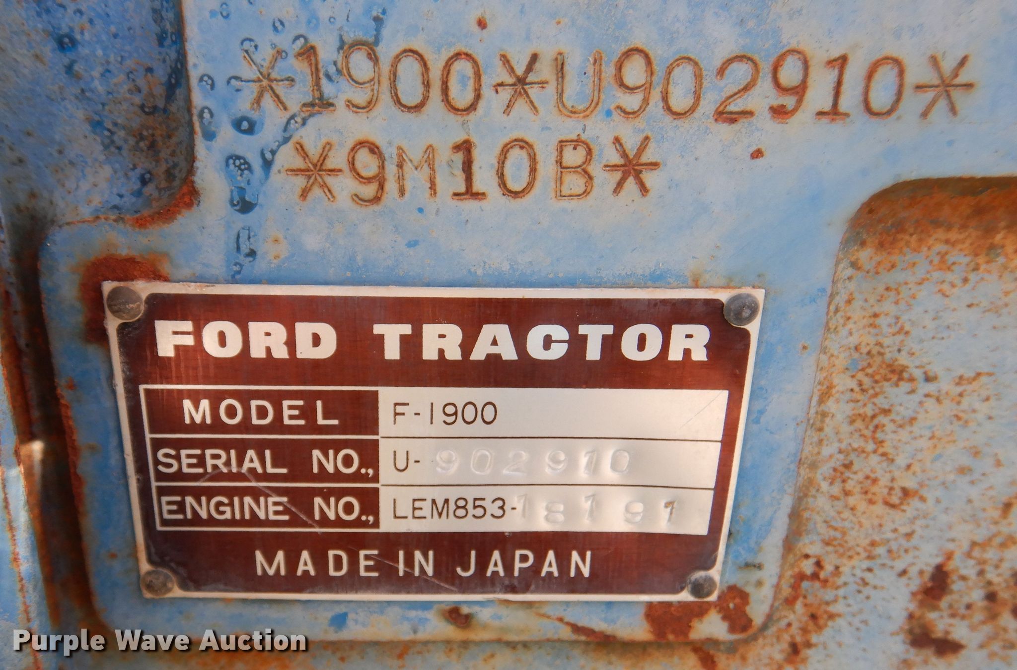 Purple Wave is selling a used Tractor in Texas. This item is a Ford 1900 tractor with the following: 943 hours on meter, Serial: U902910