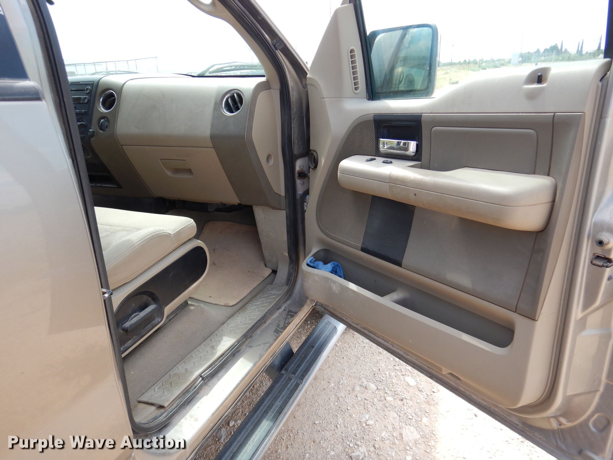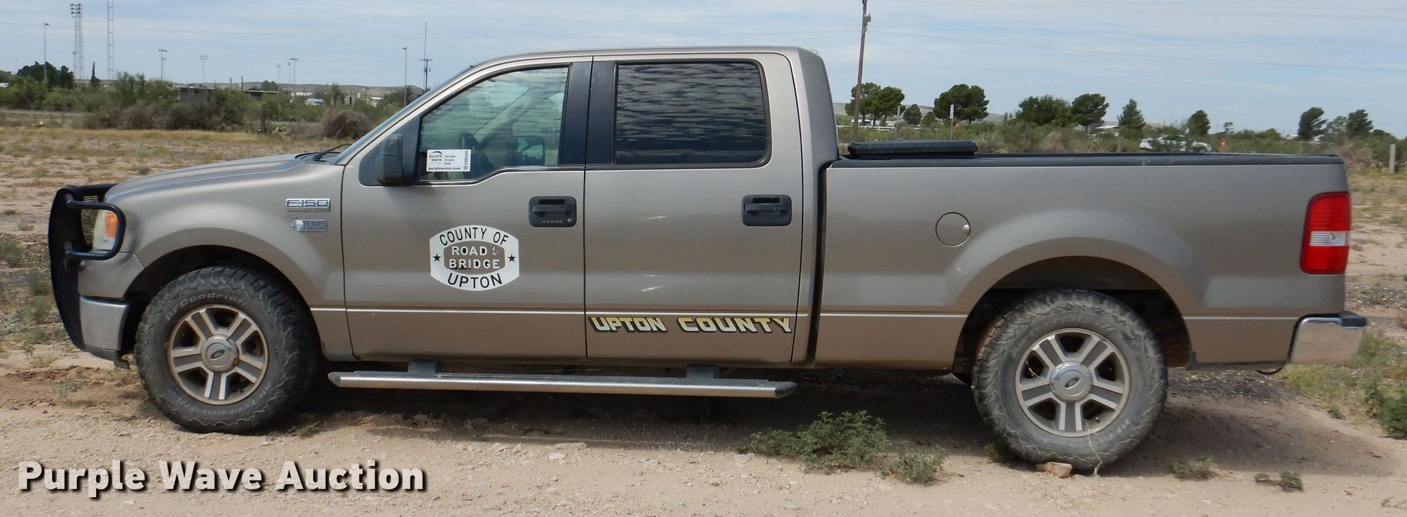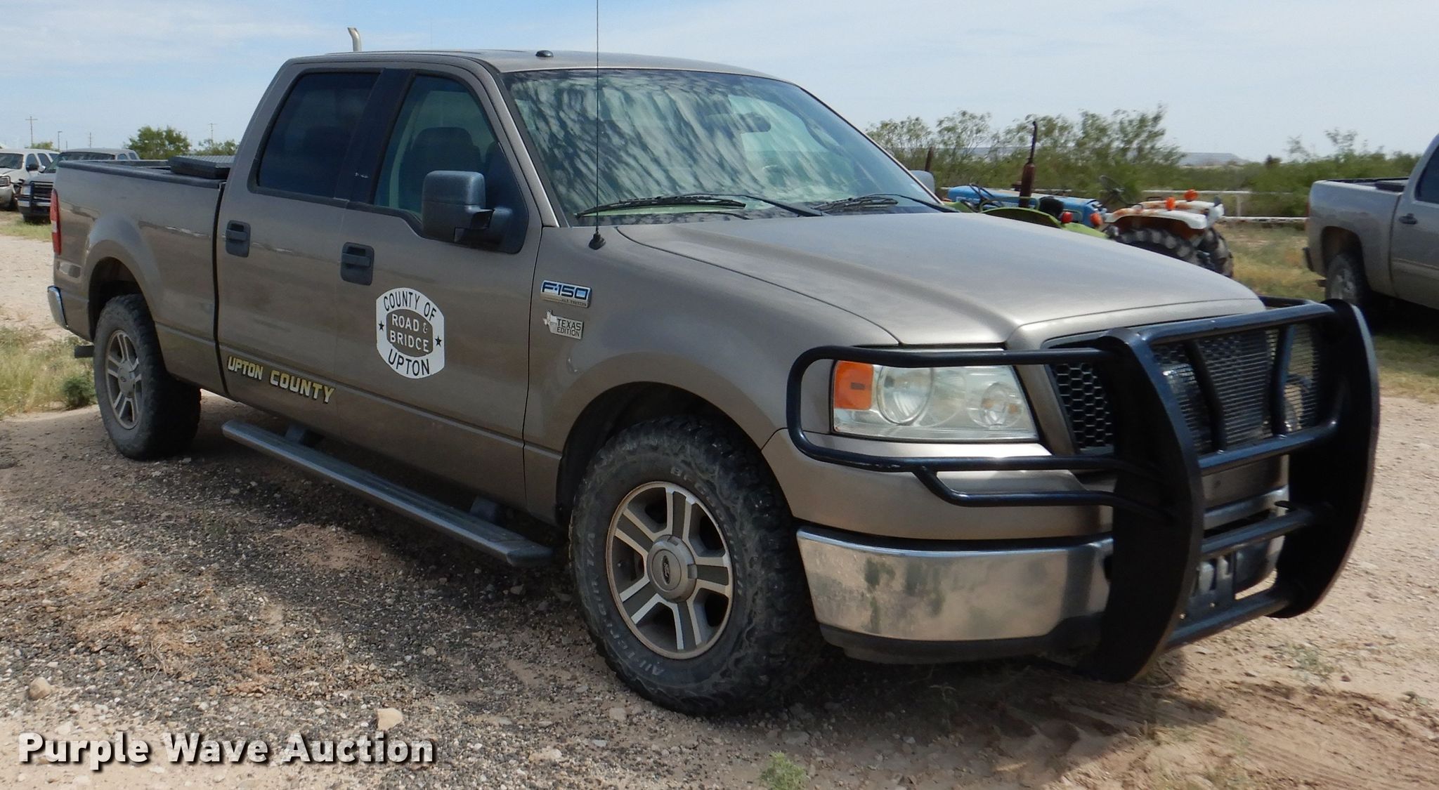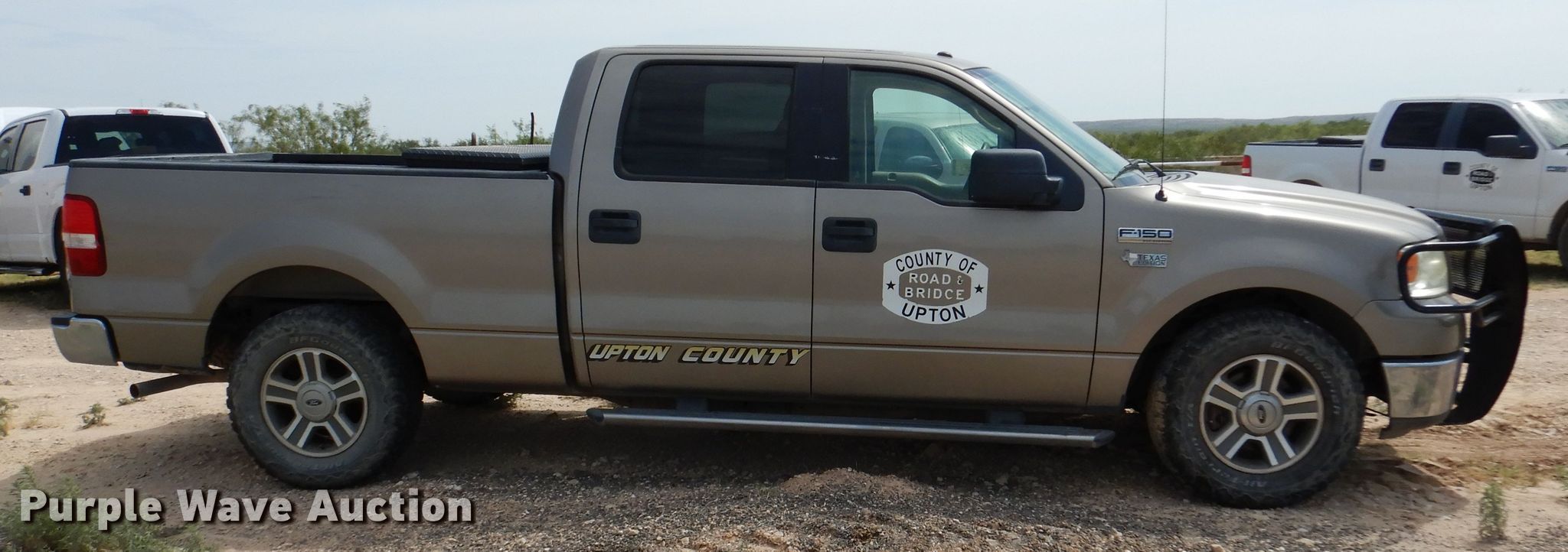 2006 Ford F150 XLT SuperCrew pickup truck. 144,829 miles on odometer. Engine Displacement: 4.6L V8 SOHC 16V, Cylinders: 8, Fuel type: Gas. Transmission Automatic. Interior AC, Heat, Seat: Power driver, Heated mirrors, Power windows, Power locks, Cruise control. Tires Size: 235/70R17. Notes Dash warning indicator: Air bag, Windshield chipped or cracked. Texas title. Title distribution may be delayed up to 14 days from verification of funds. 1FTRW12W96FB15358. Upton County. 2548 Farm To Market Rd 305. Mc Camey, TX 79752