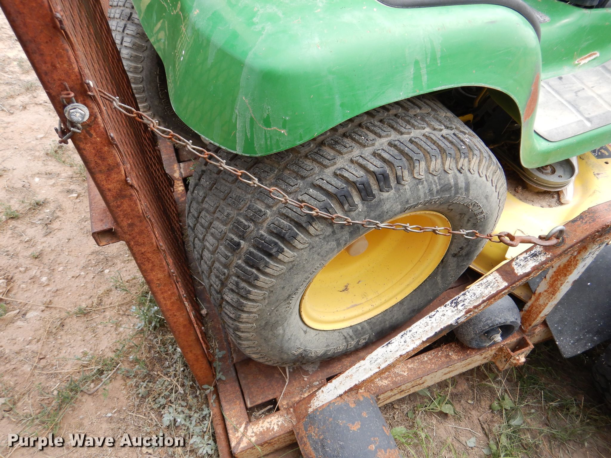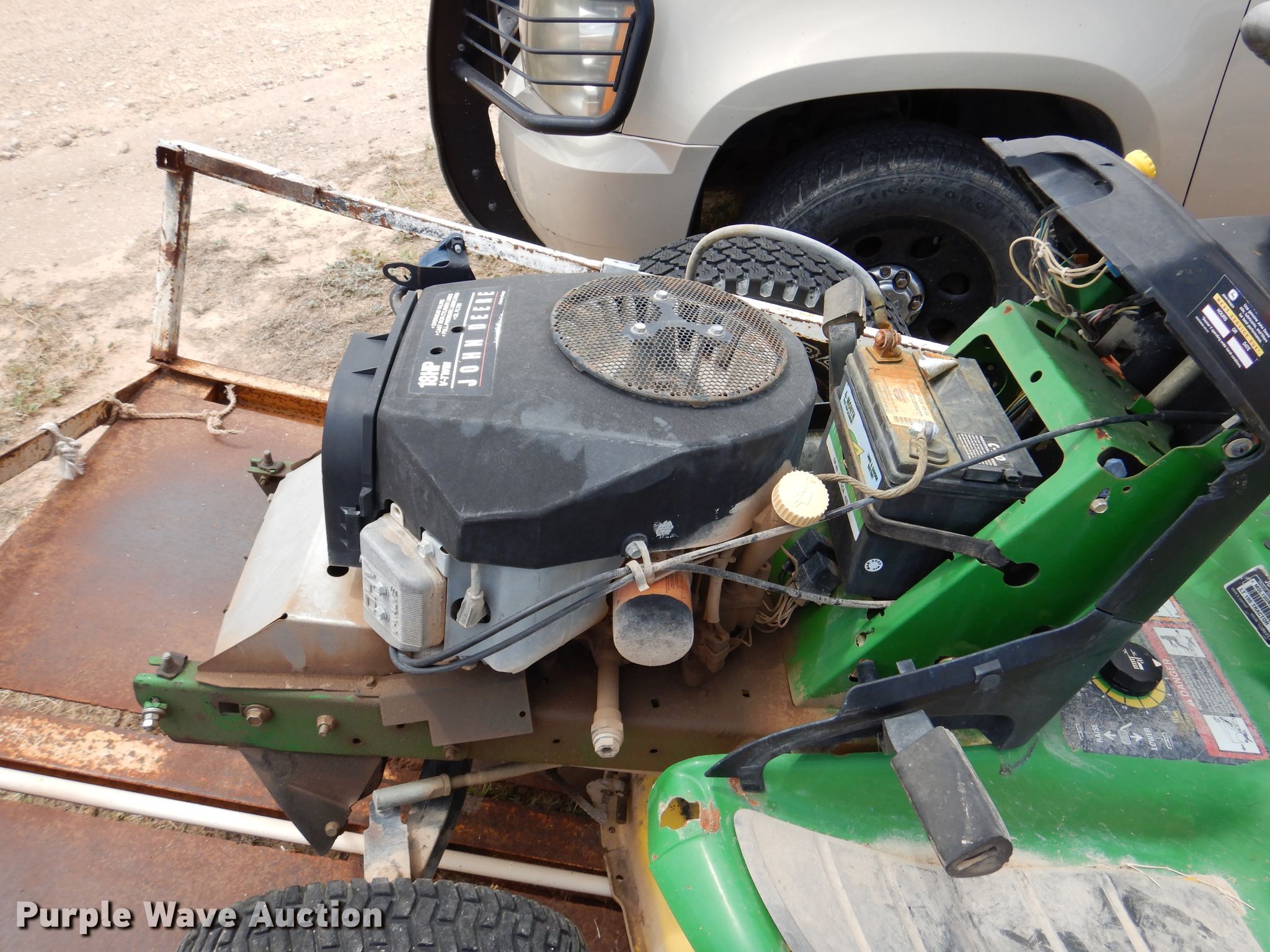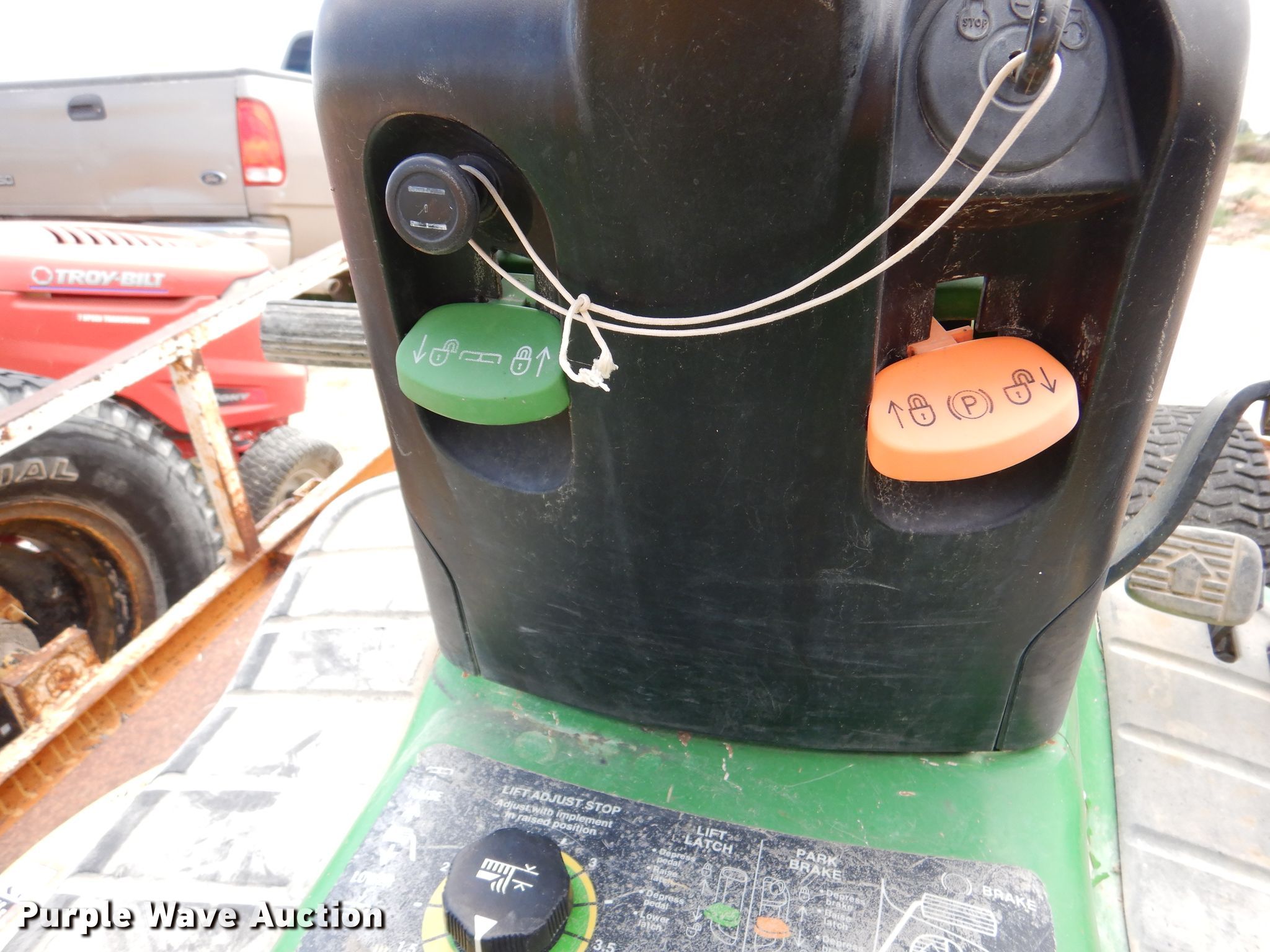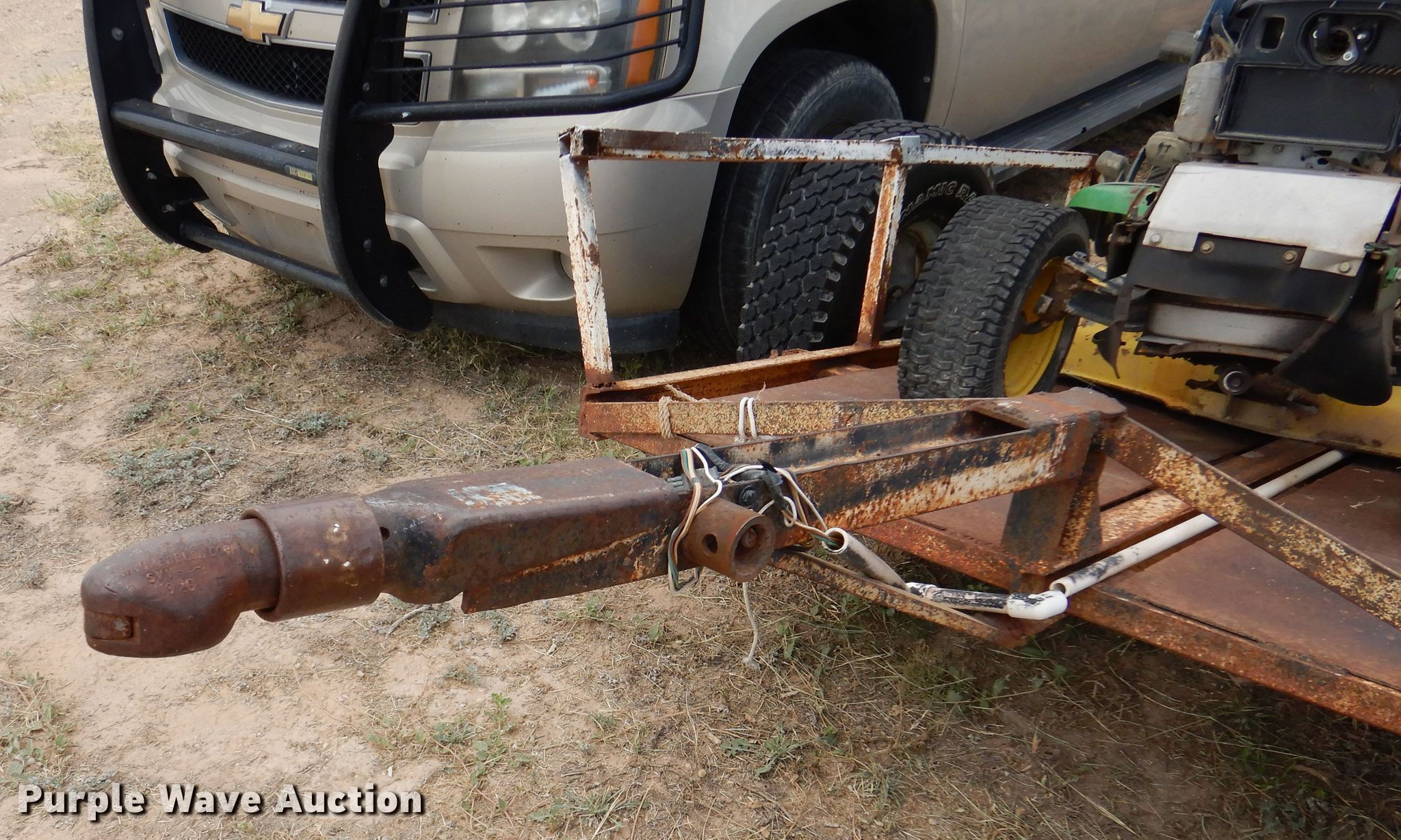 Troy-Bilt Pony lawn mower. Cutting width: 36", Serial: 1H069H162354. Engine Briggs & Stratton, Displacement: 500 cc, Cylinders: 1, Fuel type: Gas, HP: 17.5. Transmission Manual, Speed: 7. Chassis PTO. Tires Front: 15x6.00-6NHS, Rear: 20x8.00-8. Notes Unknown operating condition. John Deere LT190 lawn mower Cutting width: 48", Serial: M)L190N530119. Engine Kawasaki FH580V, Cylinders: 2, Fuel type: Gas, HP: 18. Transmission Hydrostatic. Chassis PTO. Tires Front: 16x6.50-8, Rear: 22x11.00-10. Rosco Manufacturing 5 utility trailer VIN: 577. Dimensions Overall: 11' 3" L x 4' 10" W, Deck: 7' L x 4' 10" W, Ramps: Manual Length: 3' 1". Operational Deck type: Steel. Chassis Ball hitch: 2", Suspension: Spring, Axles: Single. Tires Steel wheels, Size: 235/75R15. Notes Unknown operating condition. Upton County. 2548 Farm To Market Rd 305. Mc Camey, TX 79752