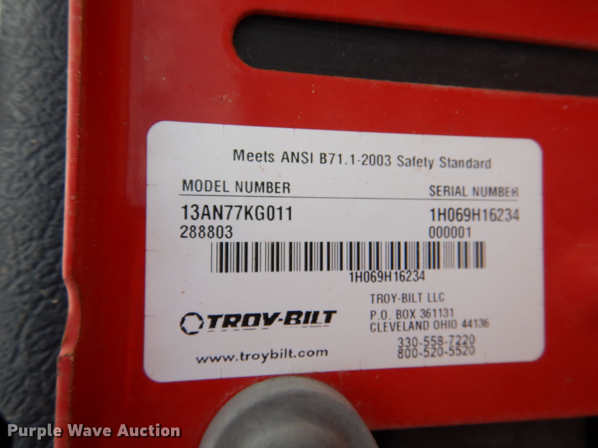 Purple Wave is selling a used Lawn Mower in Texas. This item is a Troy-Bilt Pony lawn mower with the following: Cutting width: 36", Serial: 1H069H162354