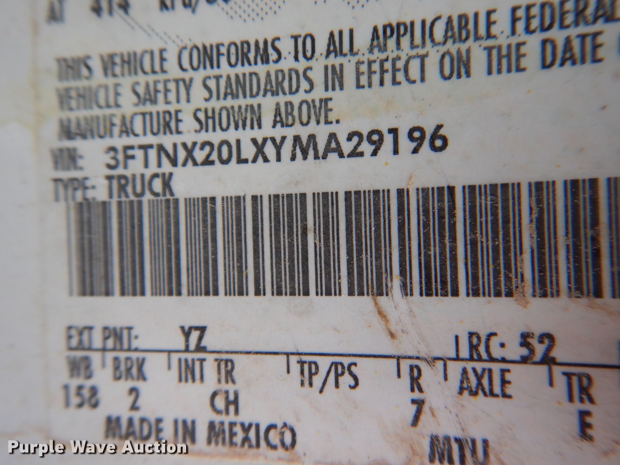 2000 Ford F250 Super Duty SuperCab pickup truck. 108,113 miles on odometer. Engine Displacement: 5.4L V8 SOHC 16V, Cylinders: 8, Fuel type: Gas. Transmission Automatic. Interior AC, Heat, Cruise control. Tires Size: 235/85R16. Notes Exhaust issue. Texas title. Title distribution may be delayed up to 14 days from verification of funds. 3FTNX20LXYMA29196. Upton County. 2548 Farm To Market Rd 305. Mc Camey, TX 79752