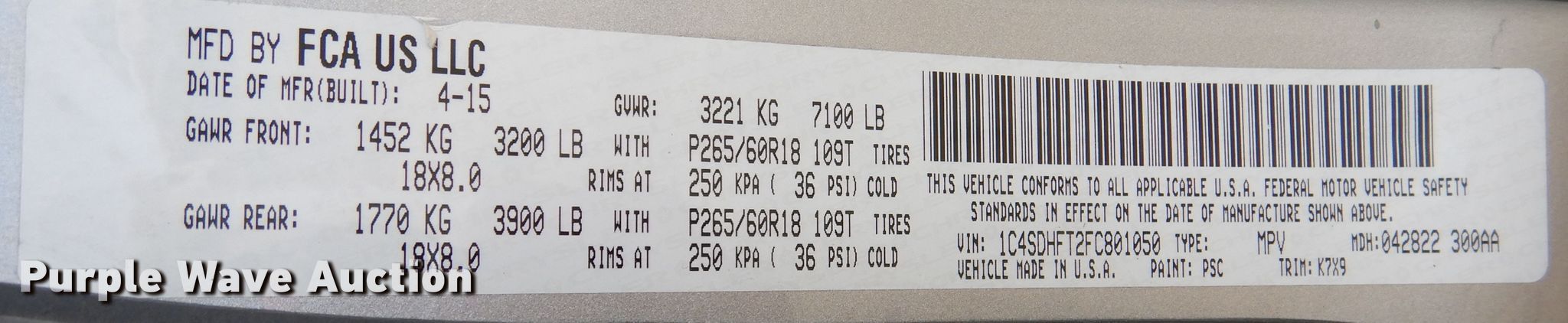 2015 Dodge Durango SUV | SOLD! September 14 Government Auction