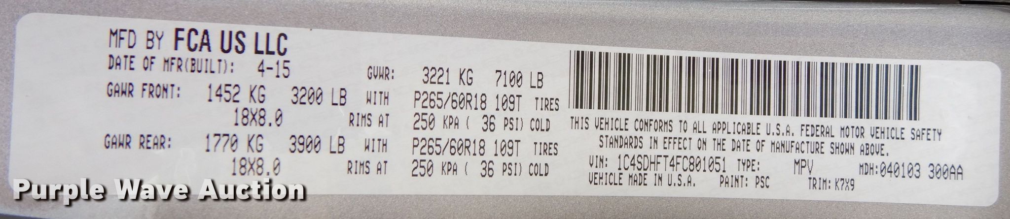 Purple Wave is selling a used Passenger Vehicle in Texas. This item is a 2015 Dodge Durango SUV with the following: 89,197 miles on odometer
