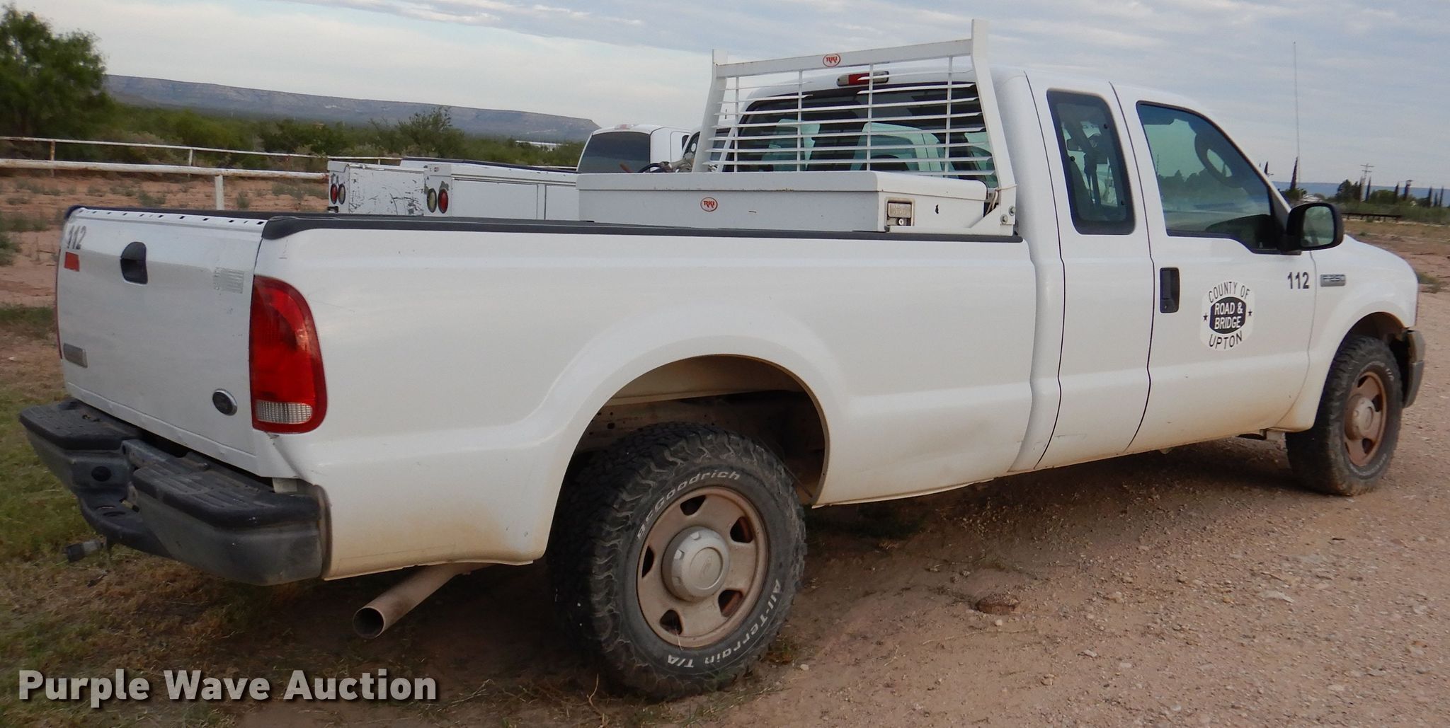 2005 Ford F250 Super Duty SuperCab pickup truck. 78,721 miles on odometer. Engine Displacement: 5.4L V8 SOHC 16V, Cylinders: 6, Fuel type: Gas. Transmission Automatic. Interior AC, Heat. Tires Size: 265/70R17. Notes No key, Unknown operating condition. Texas title. Title distribution may be delayed up to 14 days from verification of funds. 1FTSX20545EA45366. Upton County. 2548 Farm To Market Rd 305. Mc Camey, TX 79752