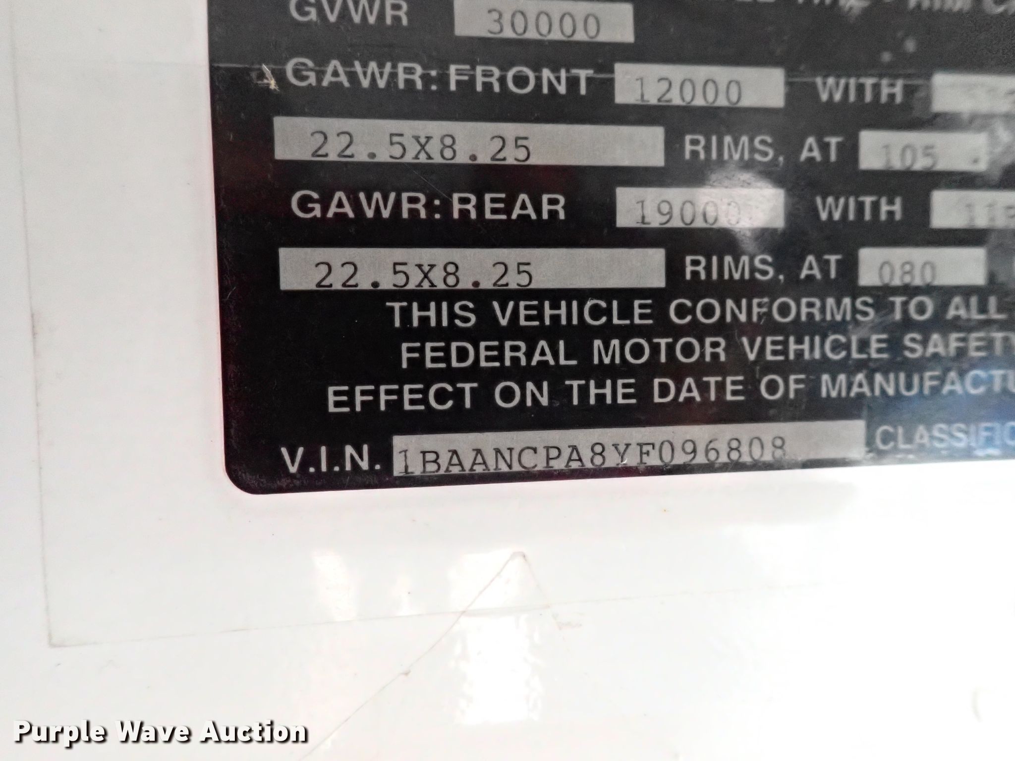 2000 Blue Bird TC2000 school bus. 142,878 miles on odometer, Unit #: 53. Engine Cummins, Serial: 45944767, Displacement: 5.9L, Cylinders: 6, Fuel type: Diesel. Transmission Automatic. Chassis Axles: Single, Suspension: Spring, Brakes: Air, GVWR: 30,000 lbs. Interior Heat, Cruise control, Seats Adult seats: 84. Tires Size: 11R22.5. Notes Dash warning indicator: Check engine. Kansas title. 1BAANCPA8YF096808. Maize Schools. 4700 119th St N. Wichita, KS 67212