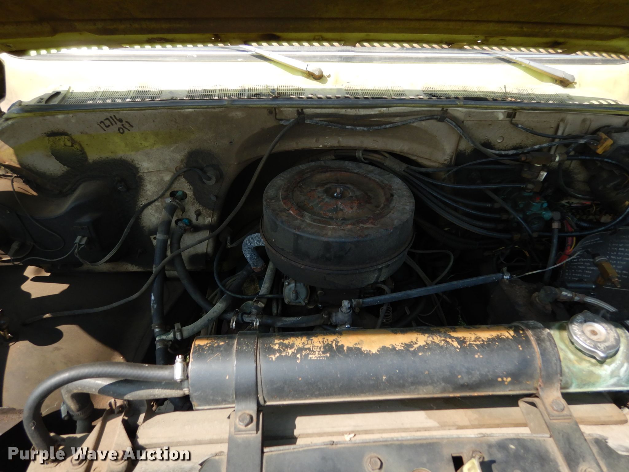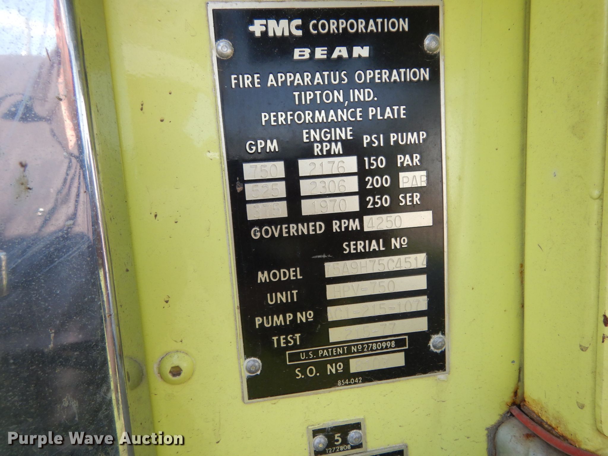 1977 Chevrolet C65 pumper fire truck. 19,117 miles on odometer. Engine Cylinders: 8, Fuel type: Gas. Transmission Manual, Speed: 5. Chassis Axles: Single, Suspension: Spring, Brakes: Air, GVWR: 27,500 lbs. Operational Fire truck body FMC 75A9H75C4514, Hose. Tires Size: 10.00-20. Notes Non-operational fuel gauge, Unknown operating condition of bed and pump. Missouri title. CCE667V129619. Yellow Creek Fire Protection District. 504 Main St. Rothville, MO 64676