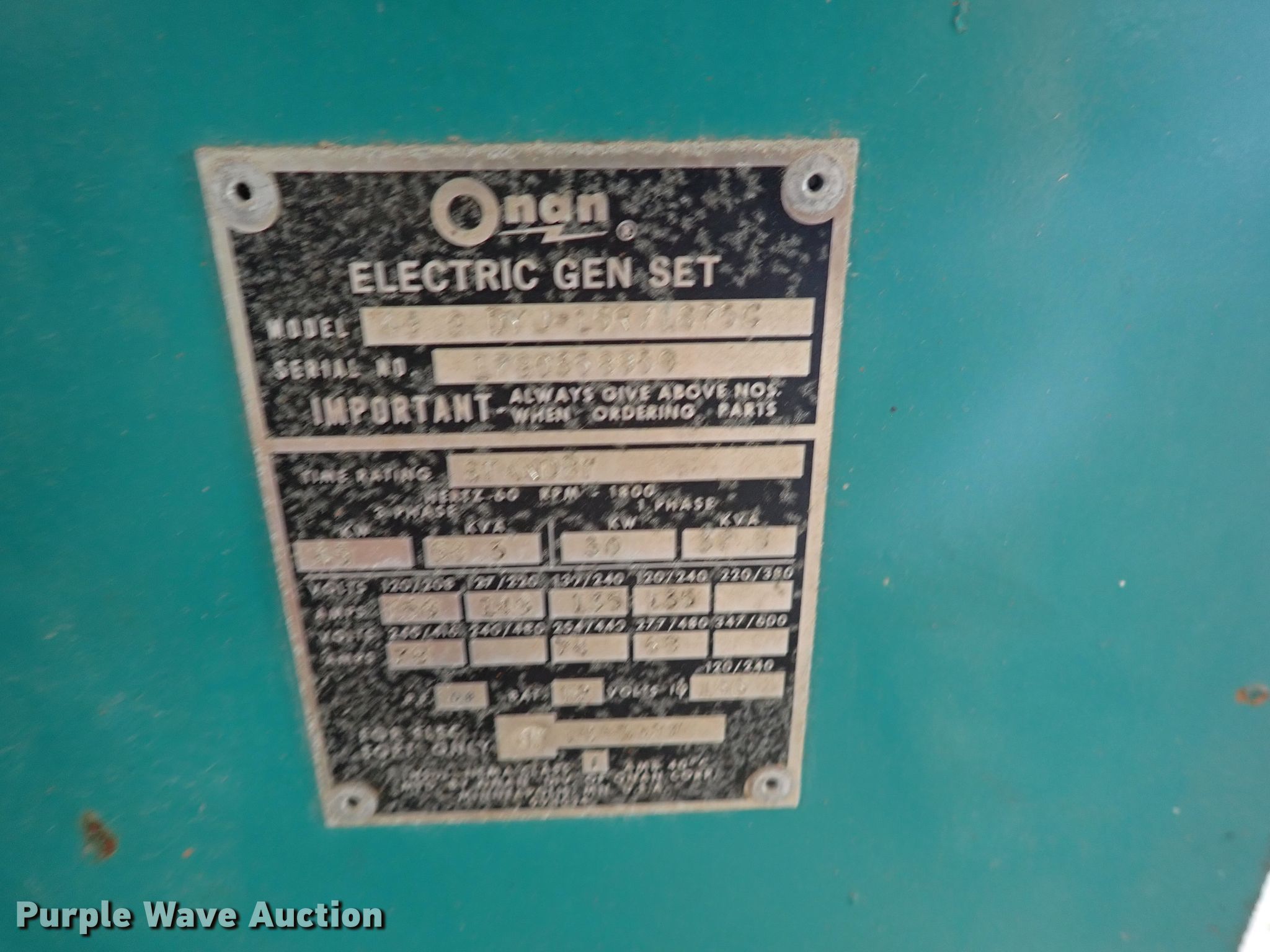 Purple Wave is selling a used Generator Set in Kansas. This item is a Onan 45 DYJ generator with the following: 504 hours on meter