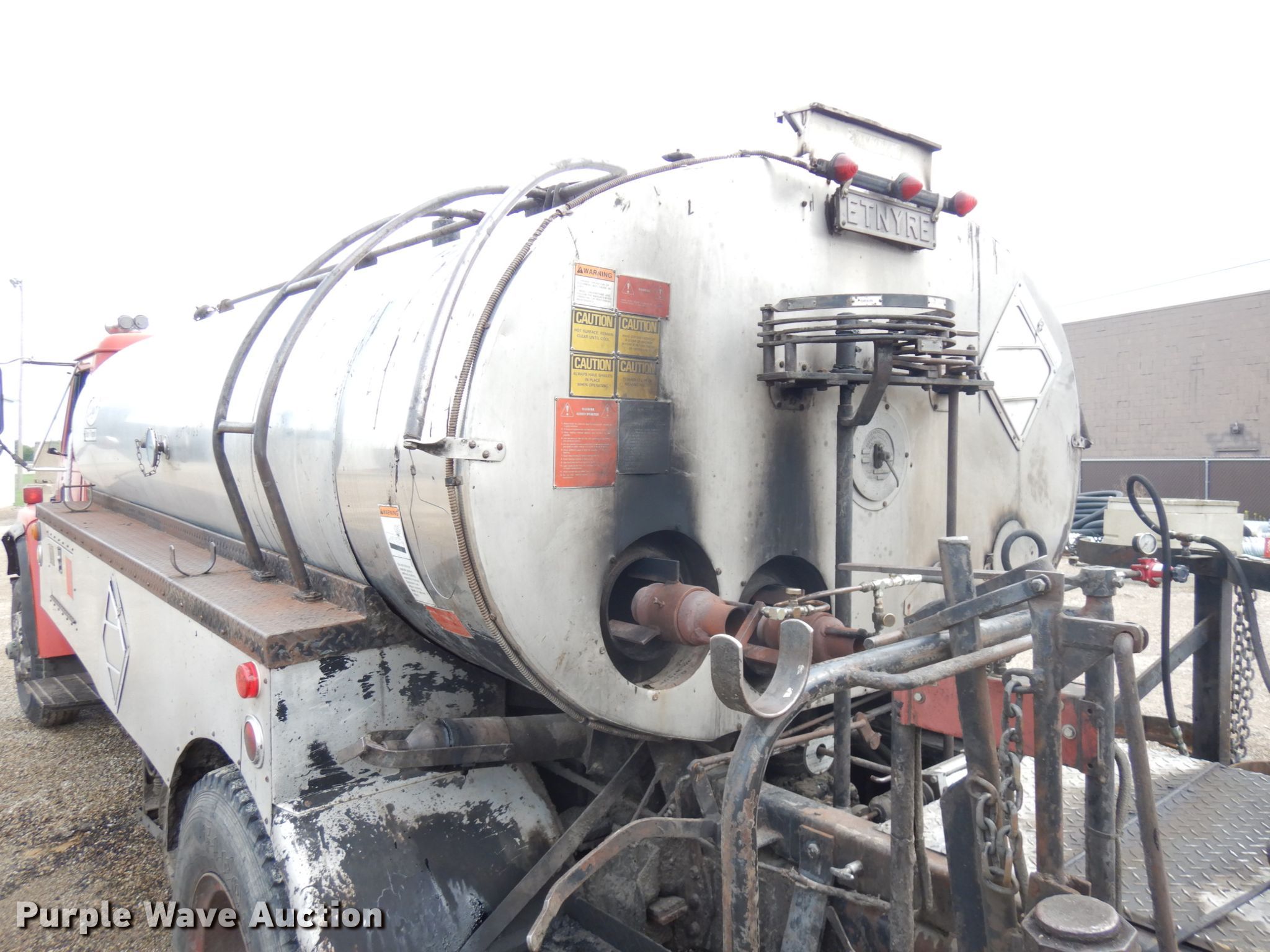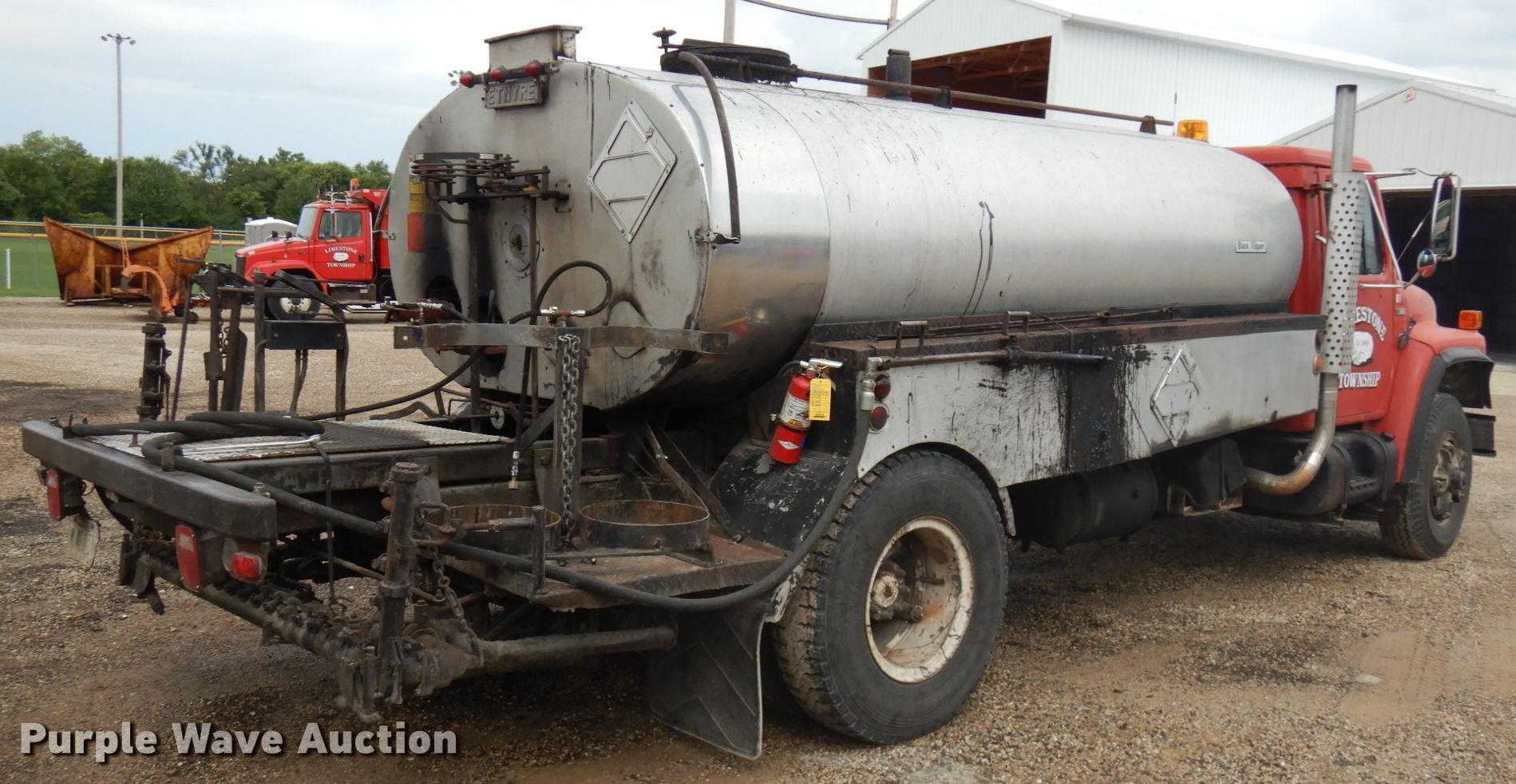 1981 International 1854 oil distributor truck. 209,107 miles on odometer. Engine Cylinders: 6, Fuel type: Diesel. Transmission Manual, Speed: 4, plus 2. Chassis Axles: Single, Suspension: Spring, Brakes: Hydraulic, PTO. Interior Heat. Operational Bed / tank Etnyre, Capacity: 1,184 gallons, 13', Water tank Burner: LPG, Spray boom Width: 10', Folding.. Tires Size: 10.00-20. Notes Unknown operating condition of spray bar. Illinois title. 2HTAA1857BCA15474. Limestone Township Road Dist.. 1501 W Garfield Ave. Bartonville, IL 61607