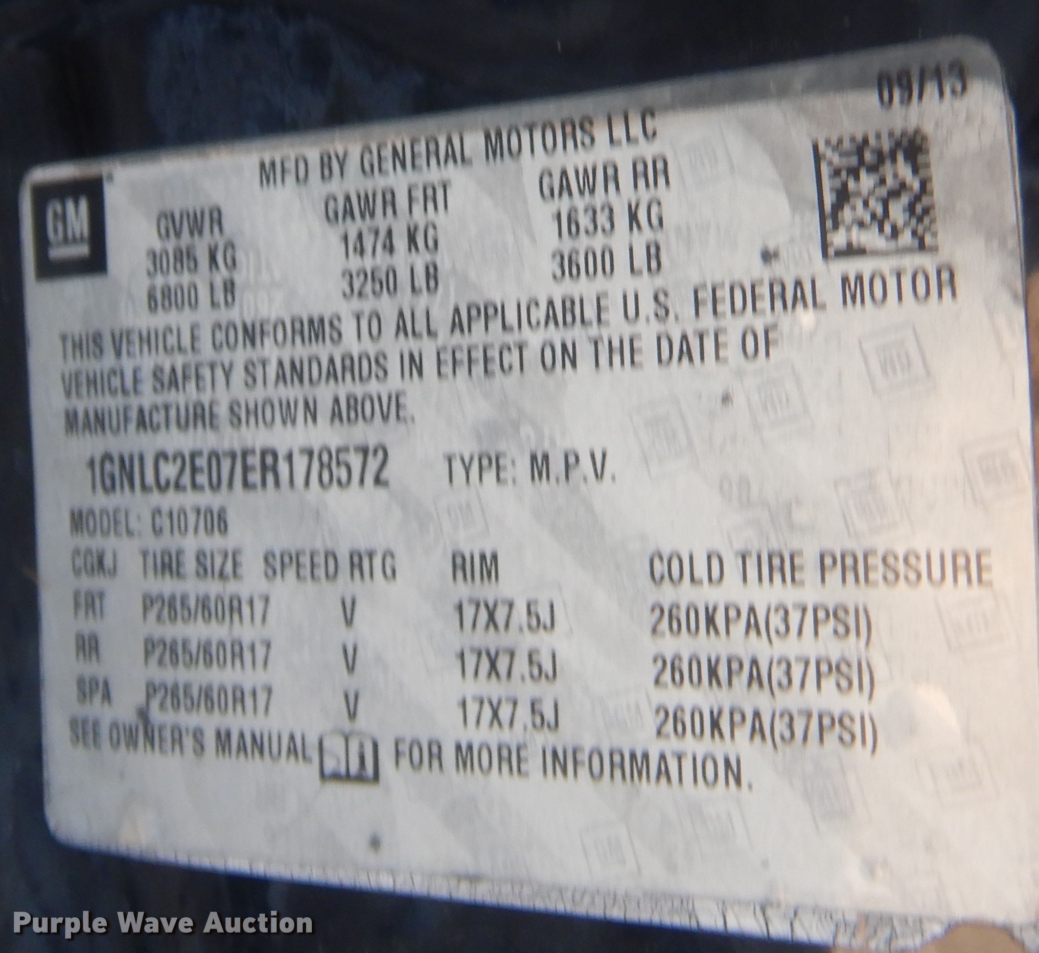 Purple Wave is selling a used Passenger Vehicle in Oklahoma. This item is a 2014 Chevrolet Tahoe Police SUV with the following: 206,411 miles on odometer
