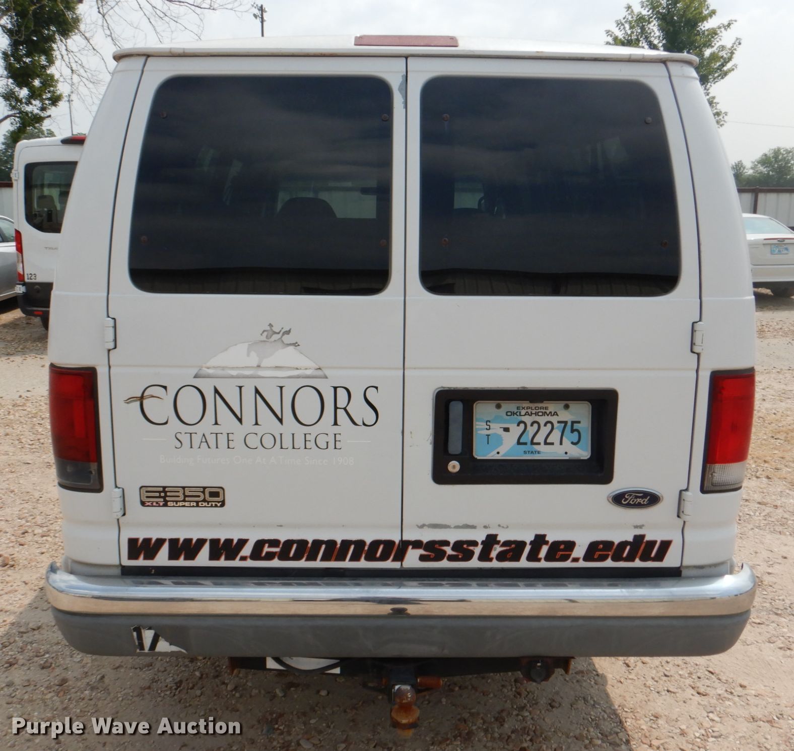 2001 Ford E350 Super Duty XLT van. 224,233 miles on odometer. Engine Displacement: 5.4L V8 SOHC 16V, Cylinders: 8, Fuel type: Gas. Transmission Automatic. Interior AC, Heat, Power windows, Power locks, Cruise control. Tires Size: LT245/75R16. Oklahoma title. 1FBSS31L31HA97862. Connors State College. 700 College Rd. Warner, OK 74469