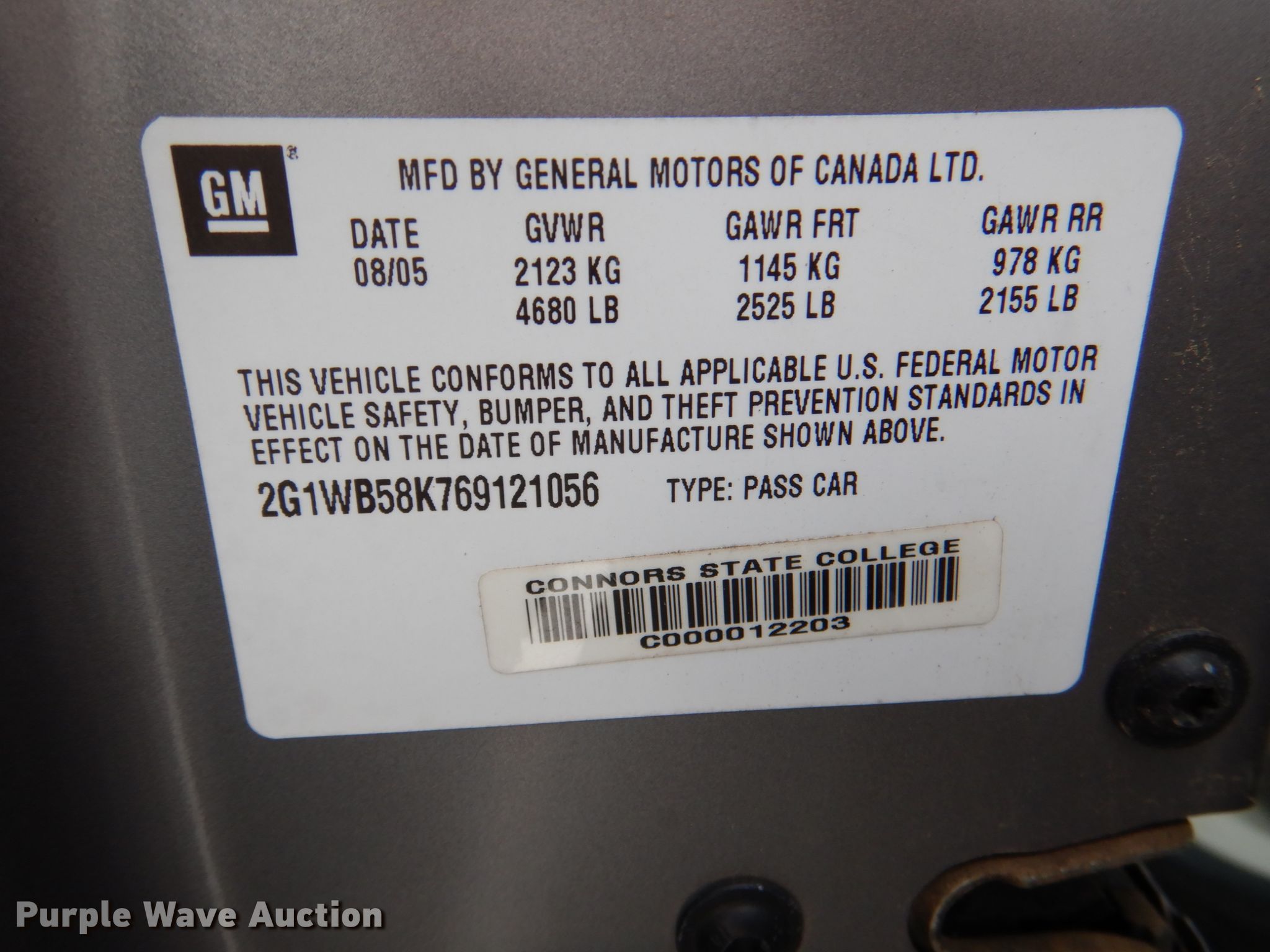 2006 Chevrolet Impala LS. Unknown miles on odometer, Unit #: 185. Engine Displacement: 3.5L V6 OHV 16V, Cylinders: 6, Fuel type: Gas. Transmission Automatic. Interior AC, Heat, Power windows, Power locks, Cruise control. Tires Size: P225/60R16. Notes Dash warning indicator: Check engine, No battery, Unknown operating condition. Oklahoma title. Mileage has not been verified. Odometer discrepancy will be marked on the title. Title distribution may be delayed up to 14 days from verification of funds. 2G1WB58K769121056. Connors State College. 2501 N 41st St E. Muskogee, OK 74403