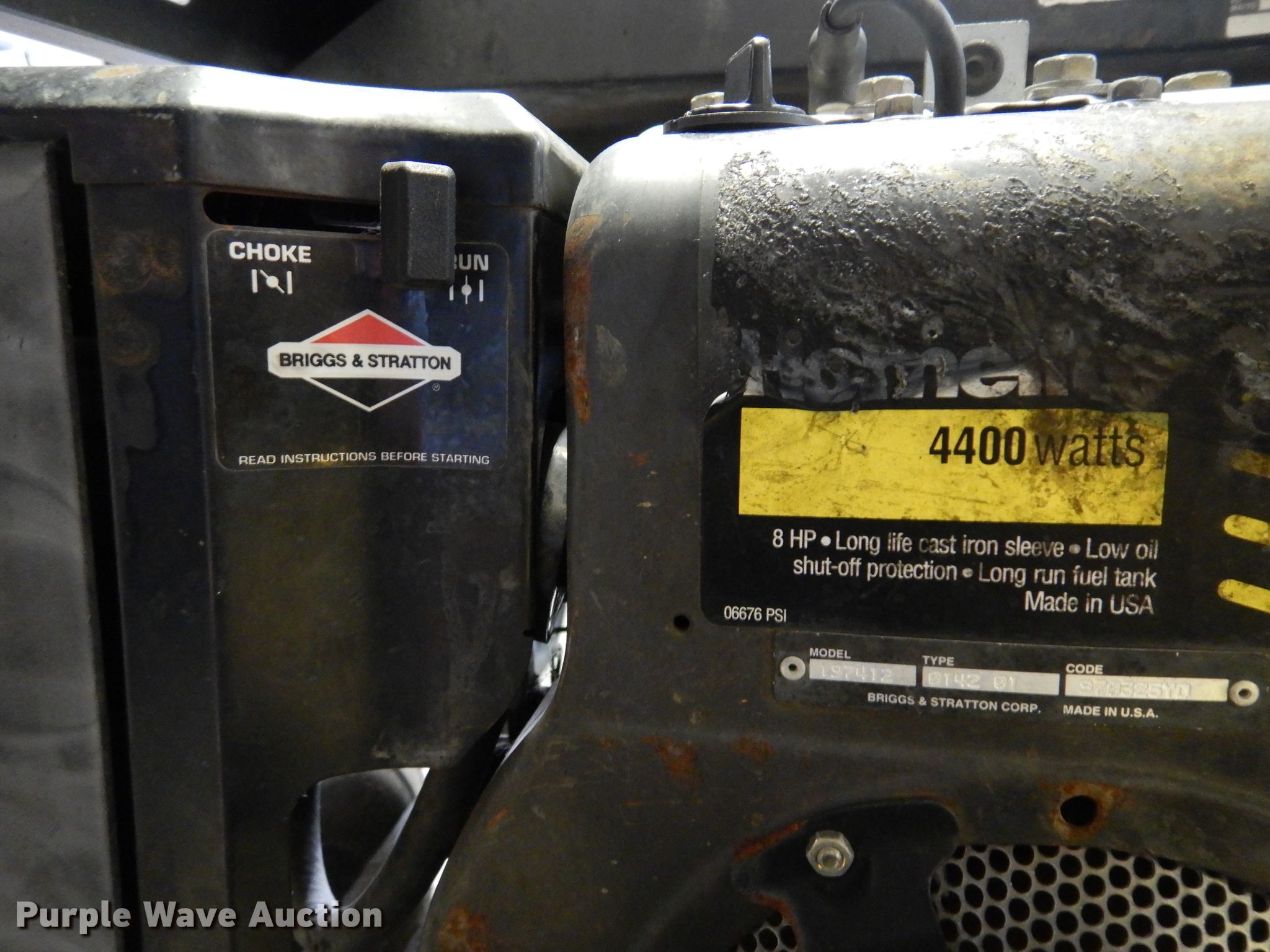 Purple Wave is selling a used Generator Set in Kansas. This item is a Homelight LR4400 generator with the following: Serial: HS0991817