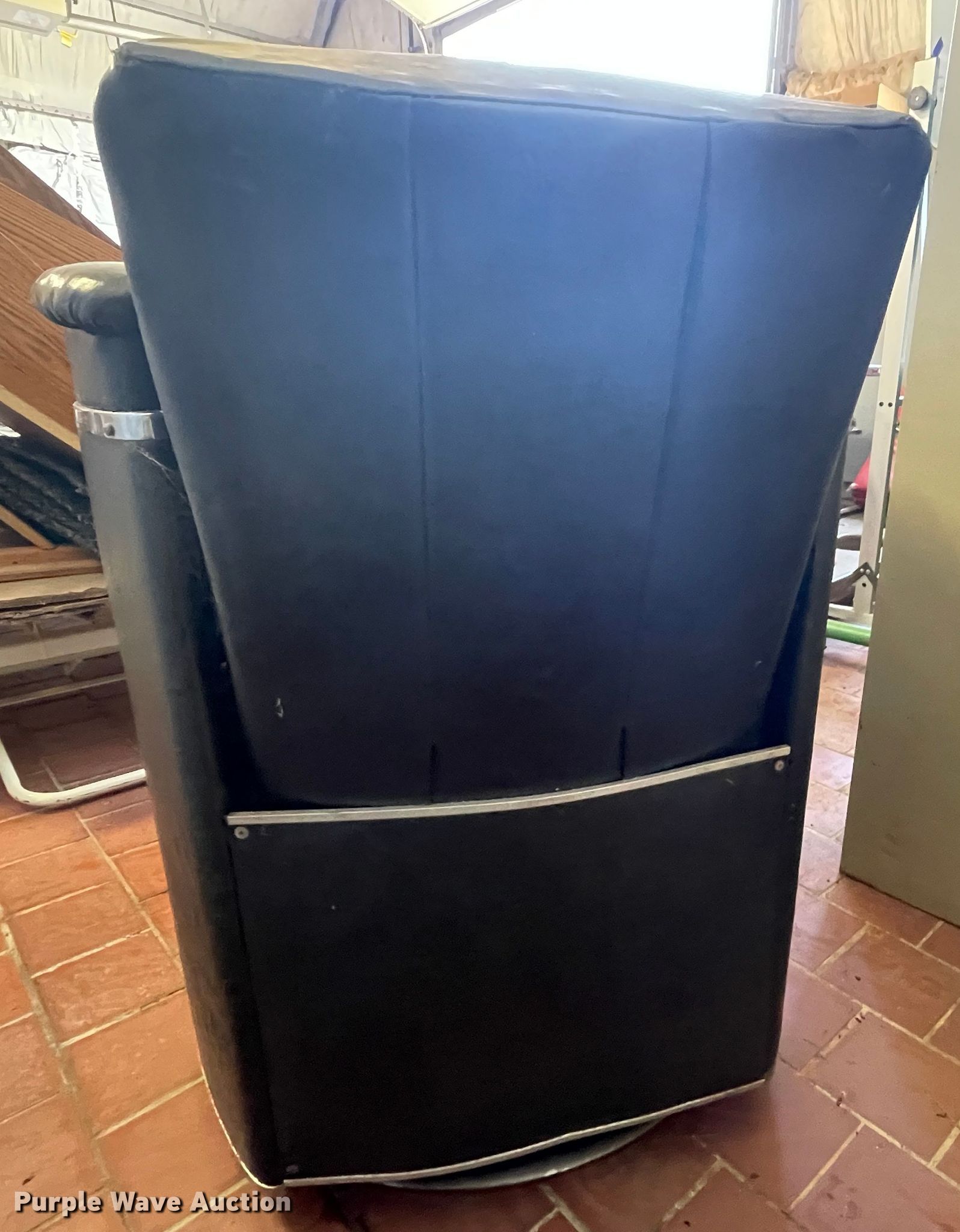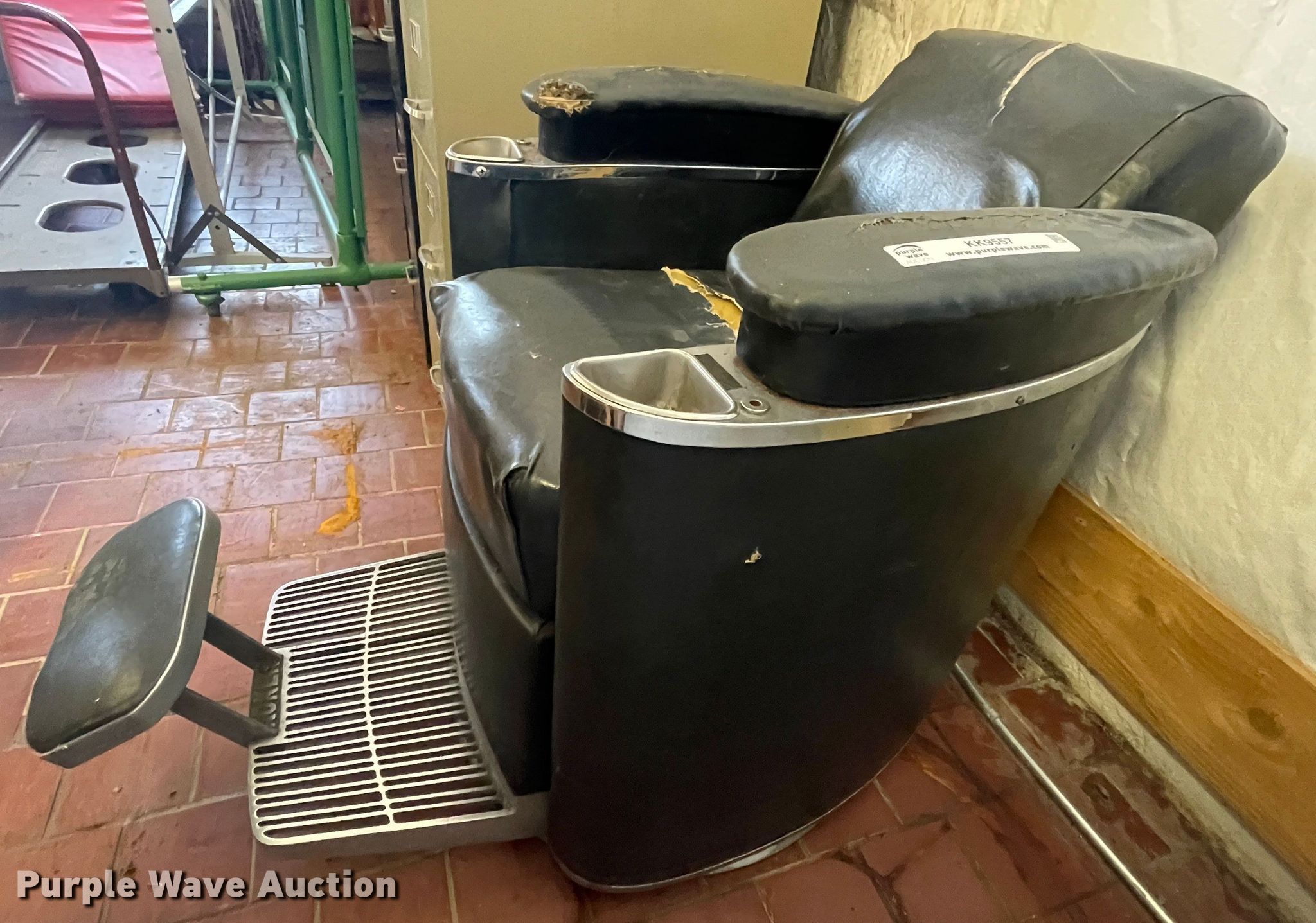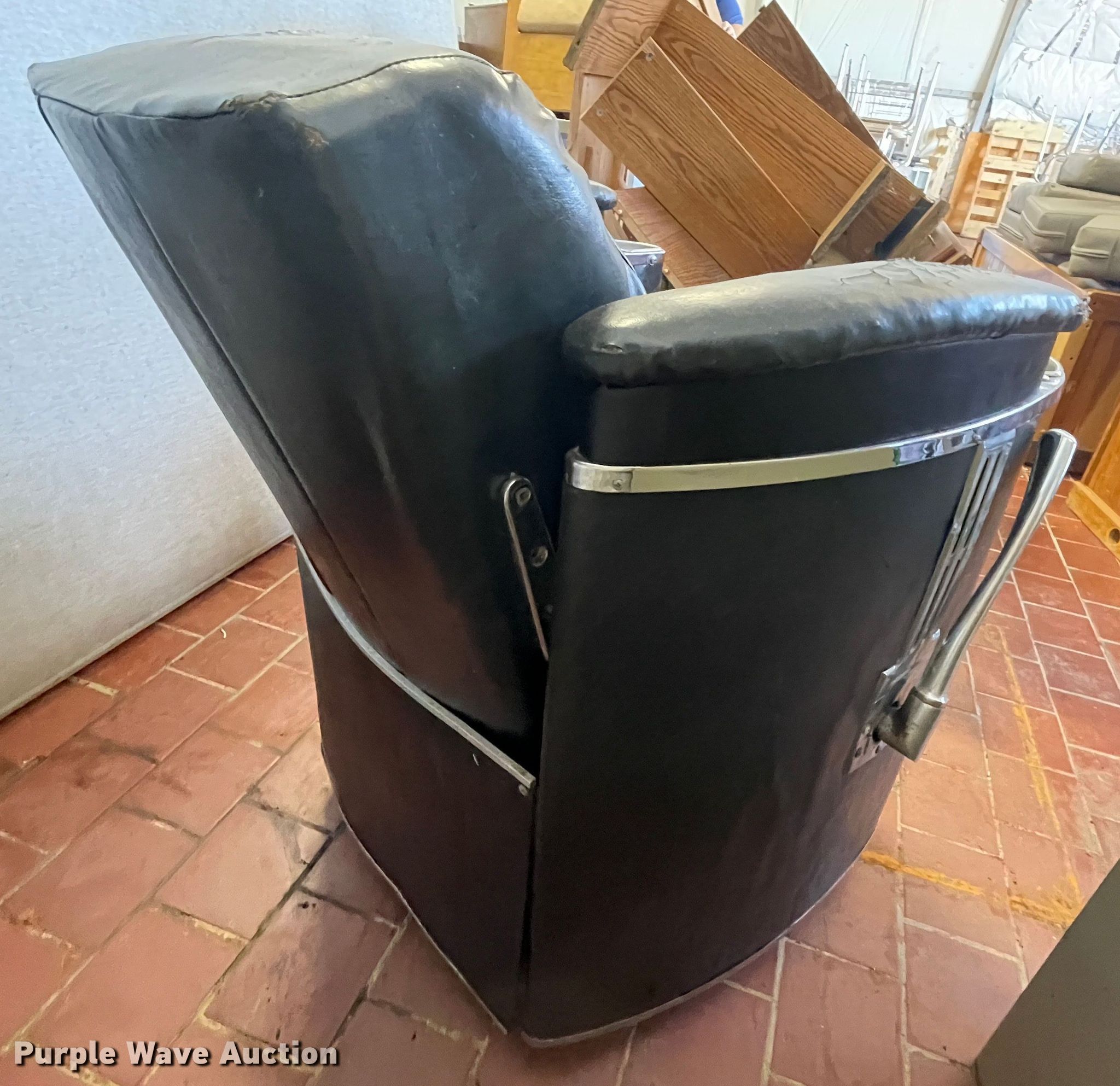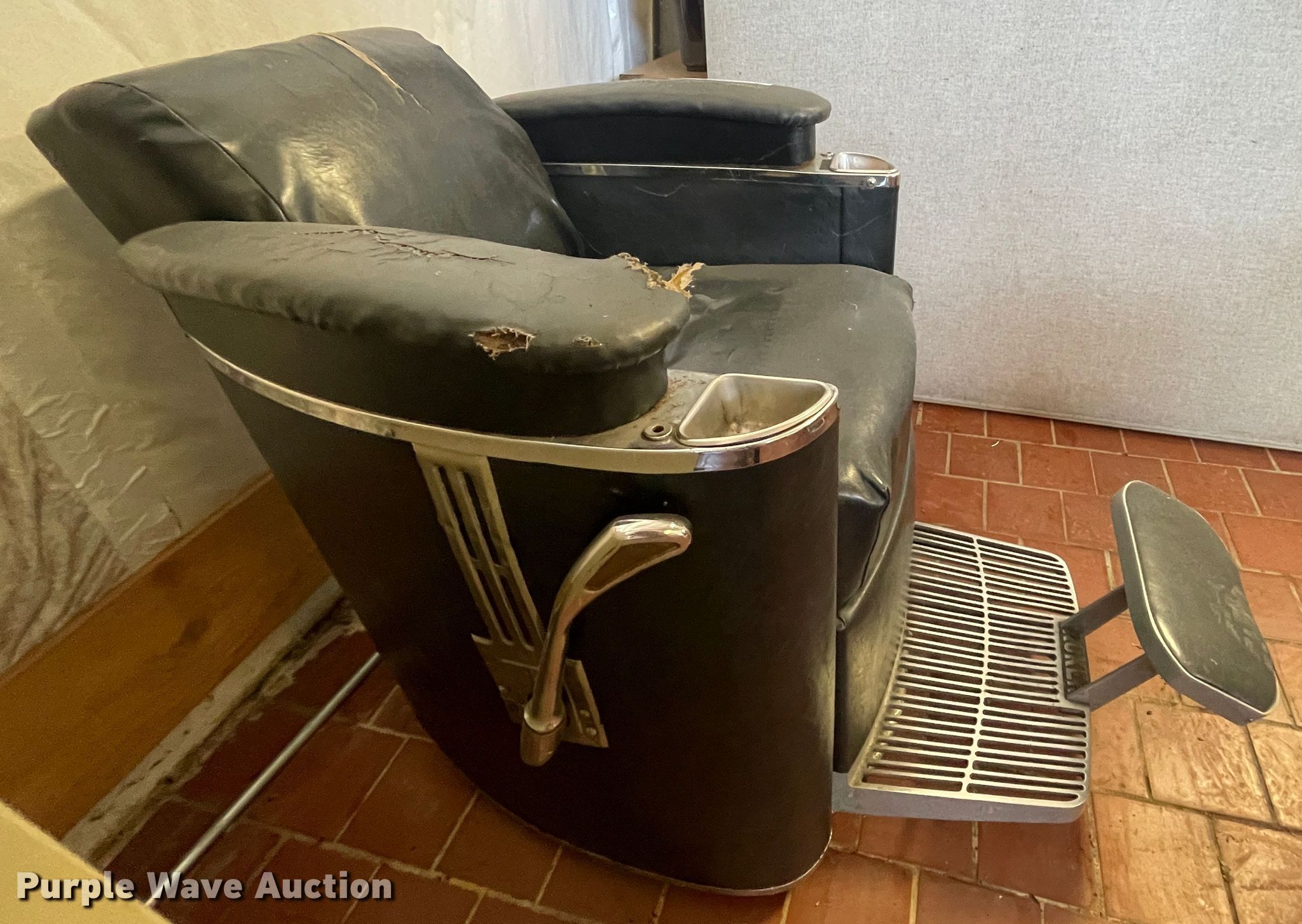 Purple Wave is selling a used Furniture in Kansas. This item is a Koker barber chair with the following: Non-operational foot pedal