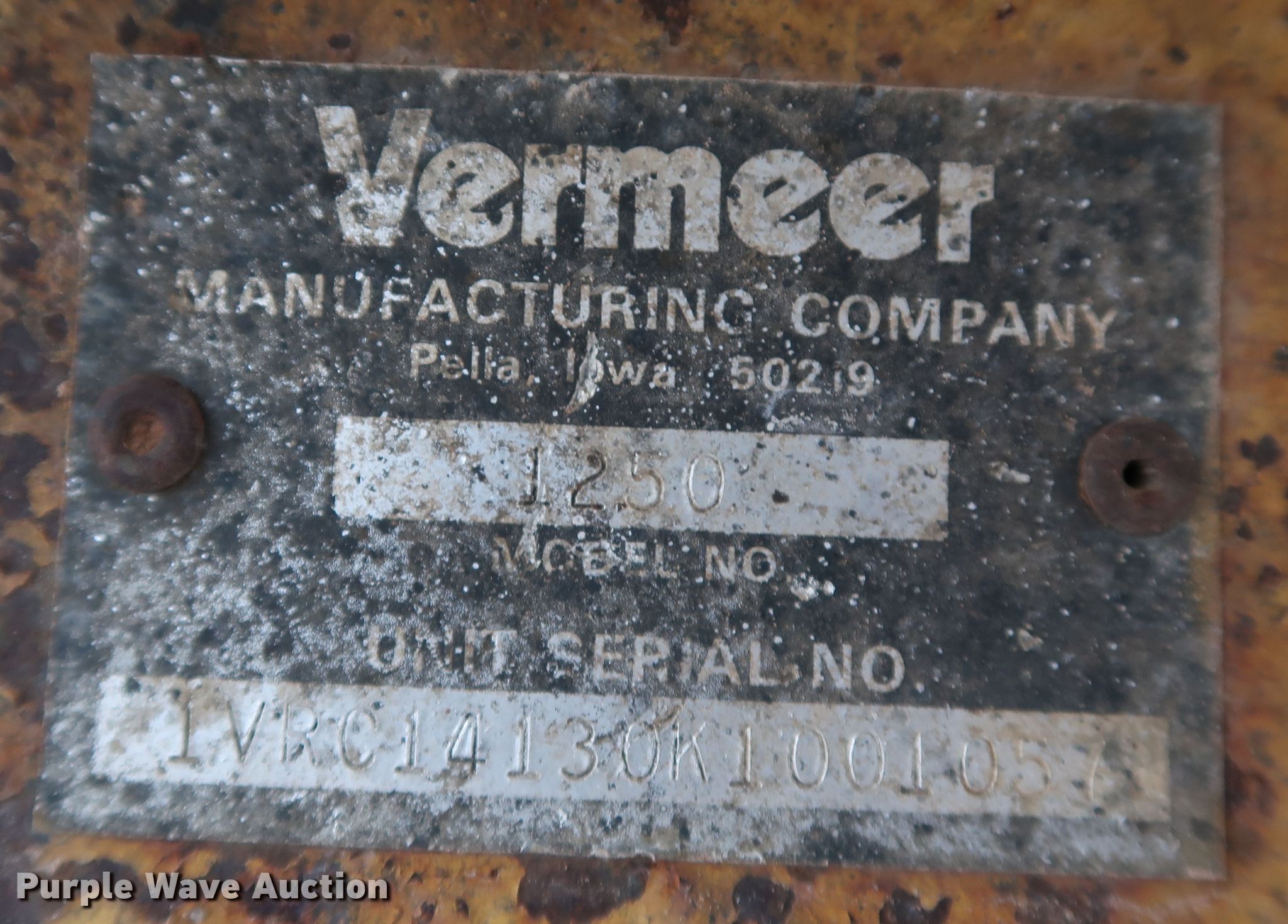 Purple Wave is selling a used Wood Chipper or Stump Grinder in Oklahoma. This item is a 1989 Vermeer BC1250 wood chipper with the following: 858 hours on meter