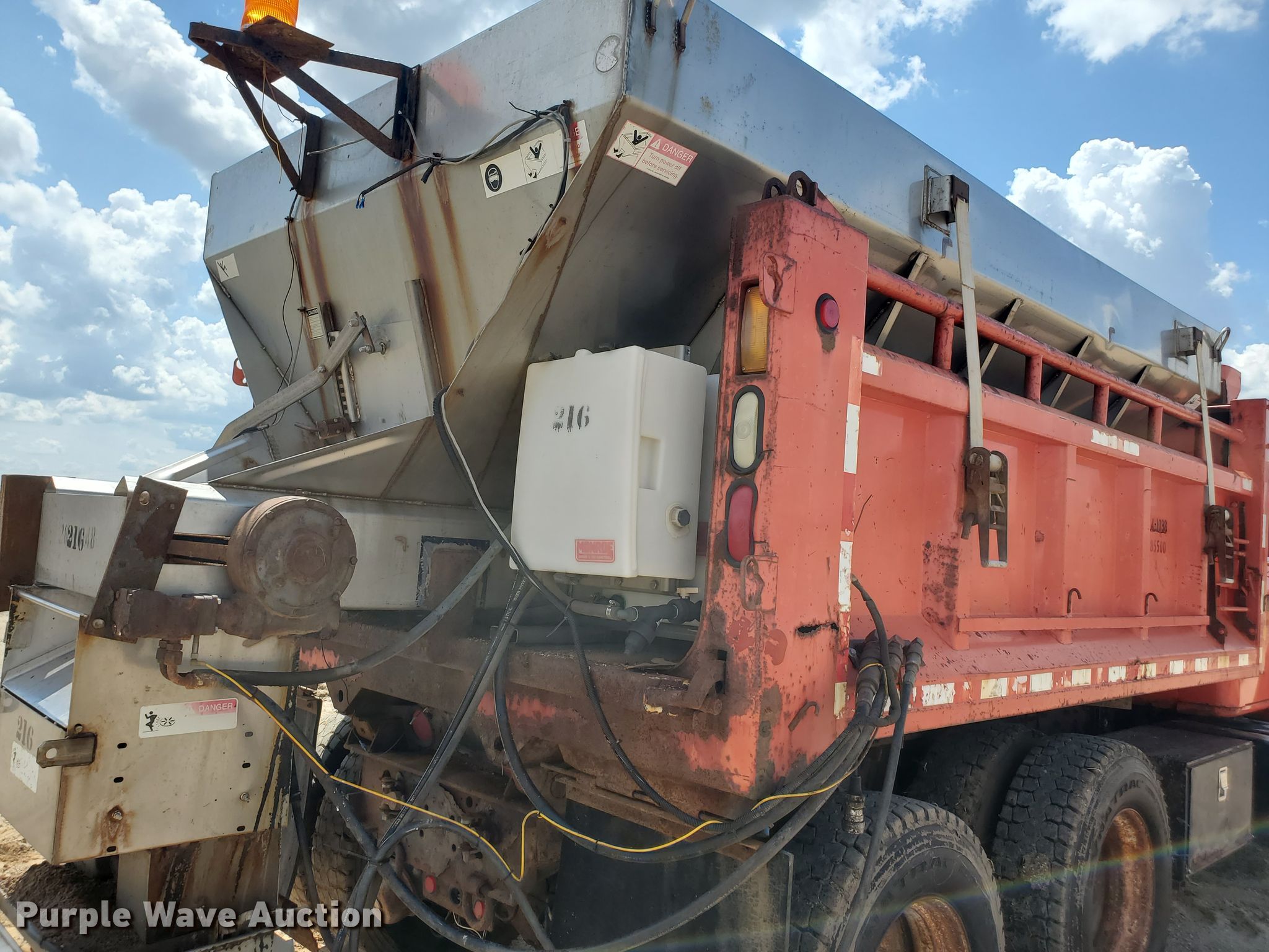1999 International 4900 dump truck. 202,827 miles on odometer, Engine hours: 12,004. Engine International, Displacement: 8.7L, Cylinders: 6, Fuel type: Diesel. Transmission Allison, Automatic. Chassis Double frame, Axles: Tandem, Differential lock: Inter-axle, Suspension: Spring over walking beam, Brakes: Air, PTO. Interior Heat. Operational Dump bed 13' L x 8' W, Side height: 36", Side board height: 8", Bed type: Steel, Ram: Single , End gate: Air operated, Spreader Monroe, Plow Monroe, Width: 132". Tires Size: 295/75R22.5. Kansas title. Seller is a government entity who will be assigning and distributing the title. Please contact the seller for distribution questions. 1HTSHADR5XH678872. Lincoln County Highway Dept.. 203 E Spring St. Lincoln, KS 67455