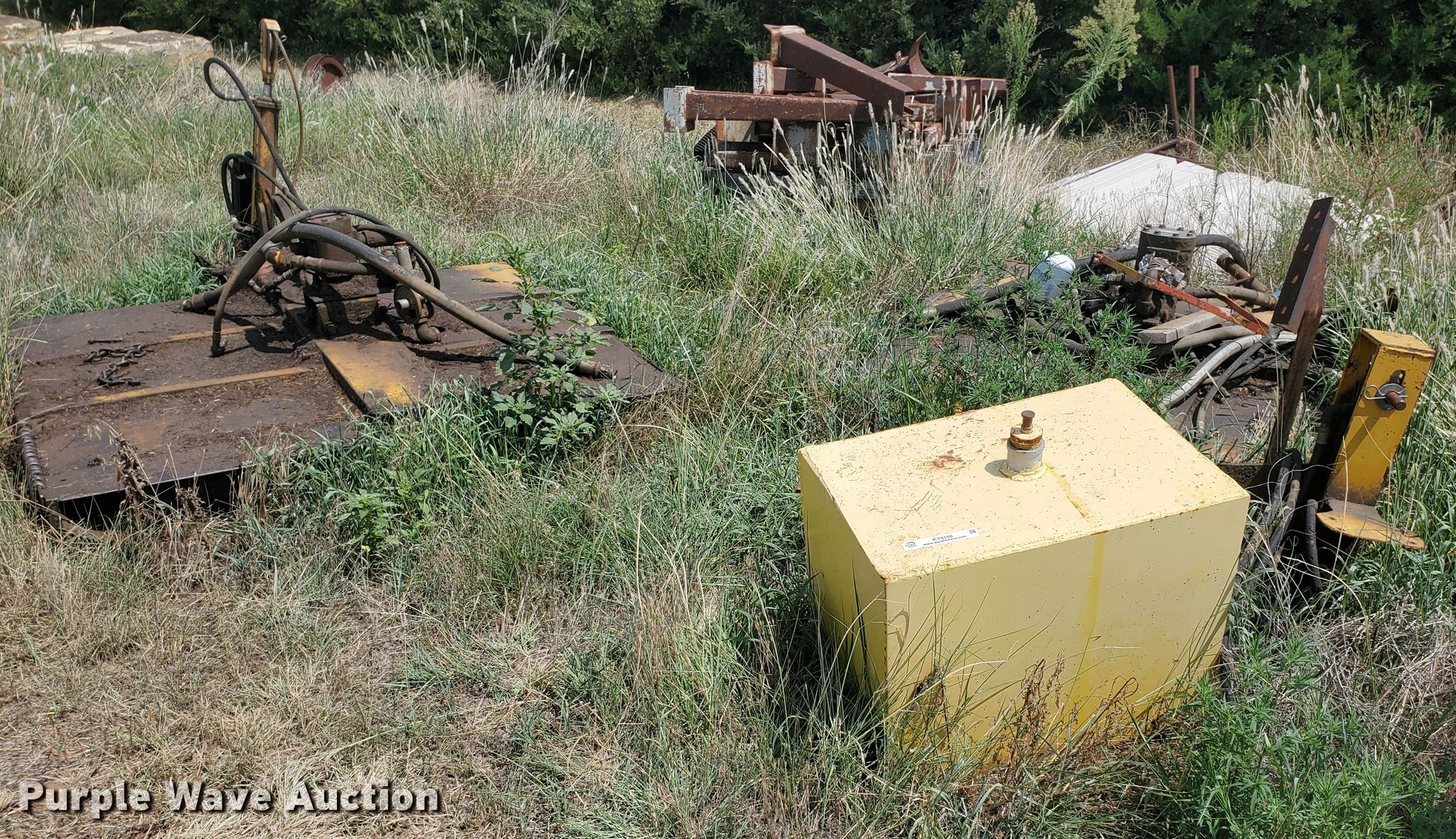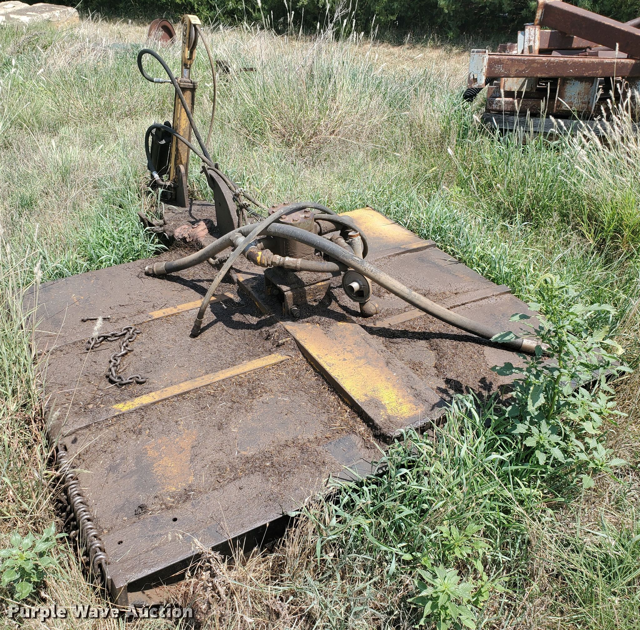 Woods rotary mower. Operational. Width: 5'. Notes Partially disassembled, Hydraulic reservoir missing. Lincoln County Highway Dept.. 203 E Spring St. Lincoln, KS 67455