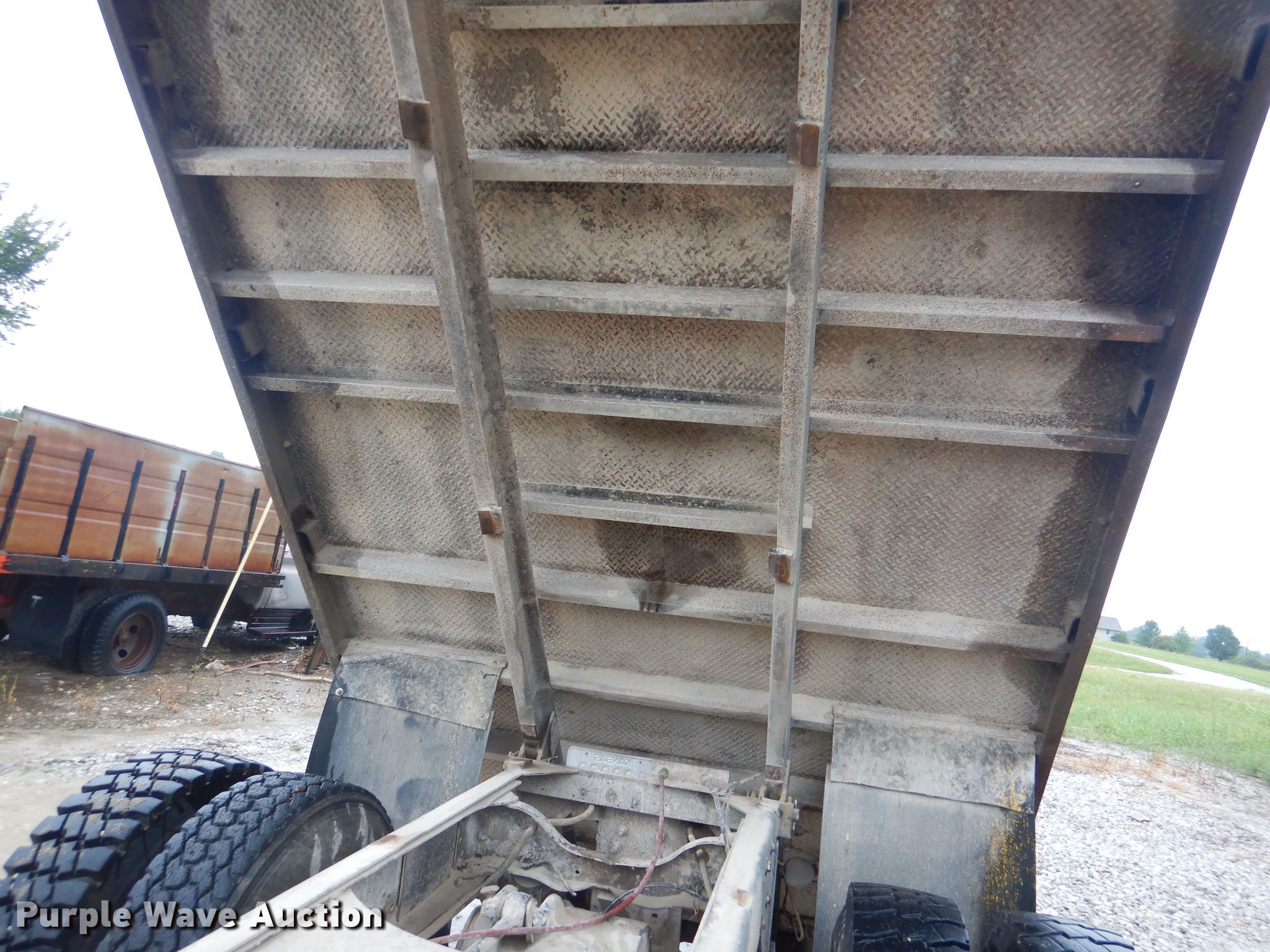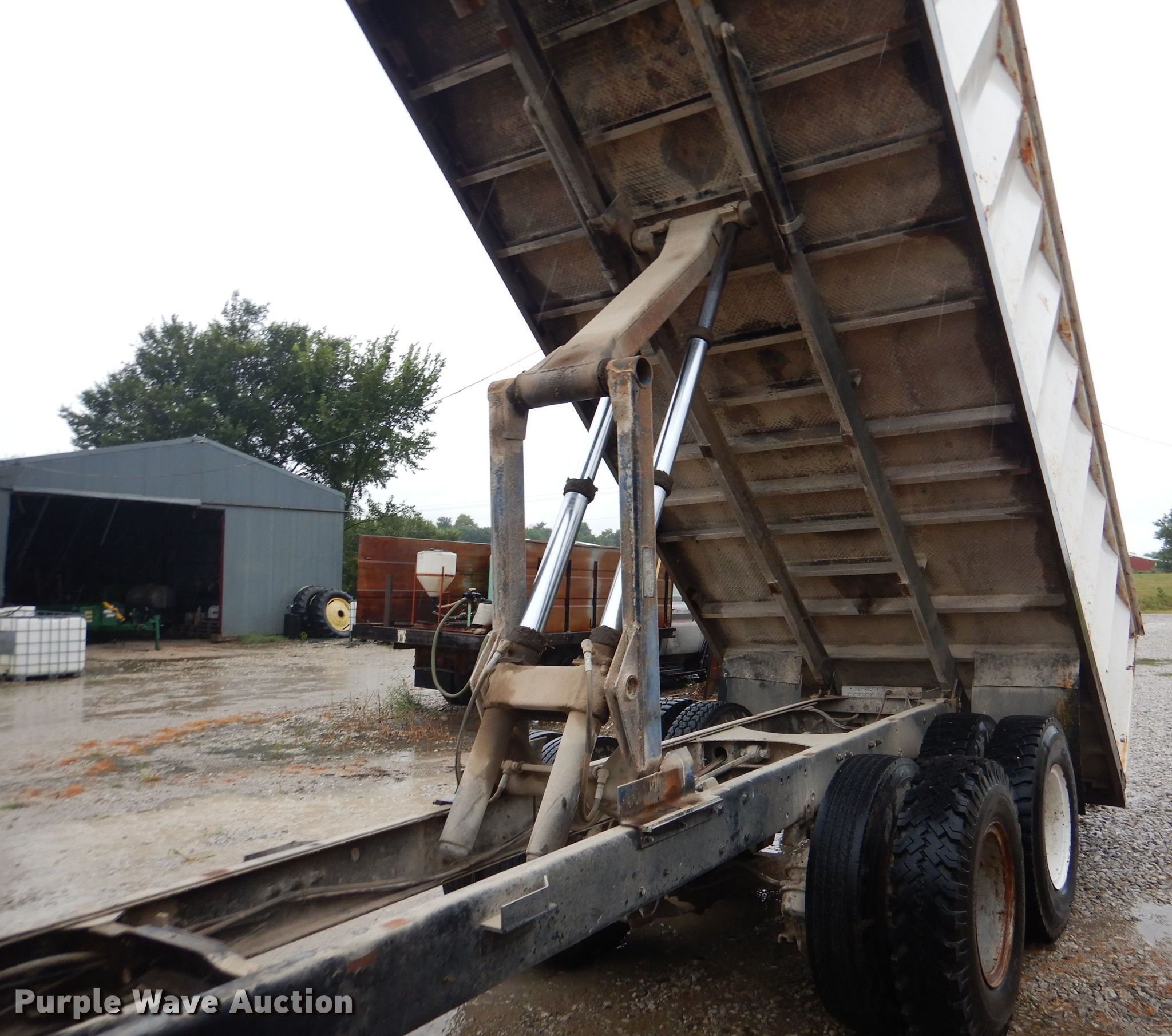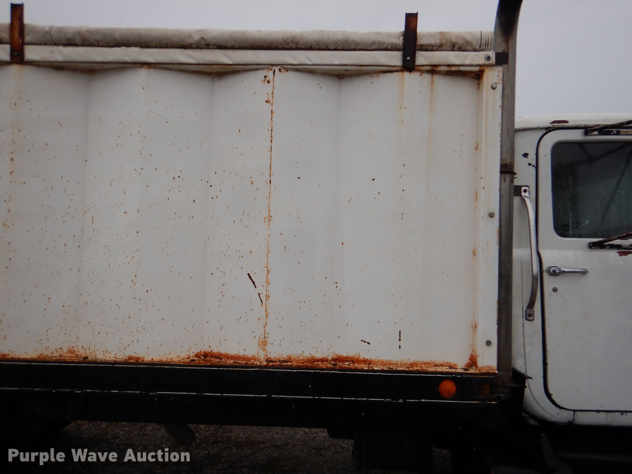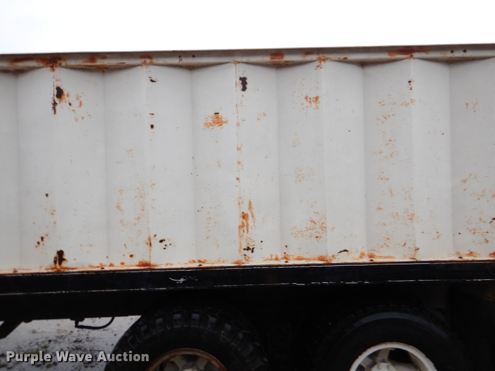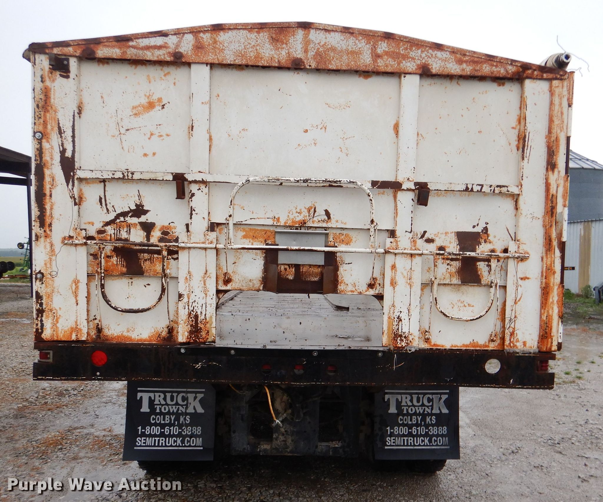 1977 Mack R600 grain truck. 106,028 miles on odometer, Engine hours: 3,519. Engine Mack, Cylinders: 6, Fuel type: Diesel. Transmission Manual, Speed: 5. Chassis Axles: Tandem, Suspension: Camelback, Brakes: Air, PTO. Interior Heat. Operational Dump bed 22' L x 96" W, Side height: 52", Bed type: Steel, Roll tarp, Ram: Dual, End gate: Manual. Tires Size: 10.00R20. Notes Windshield chipped or cracked, Non-operational speedometer. Kansas antique title. R685ST66503. Chris Carstens. Fontana, KS 66026