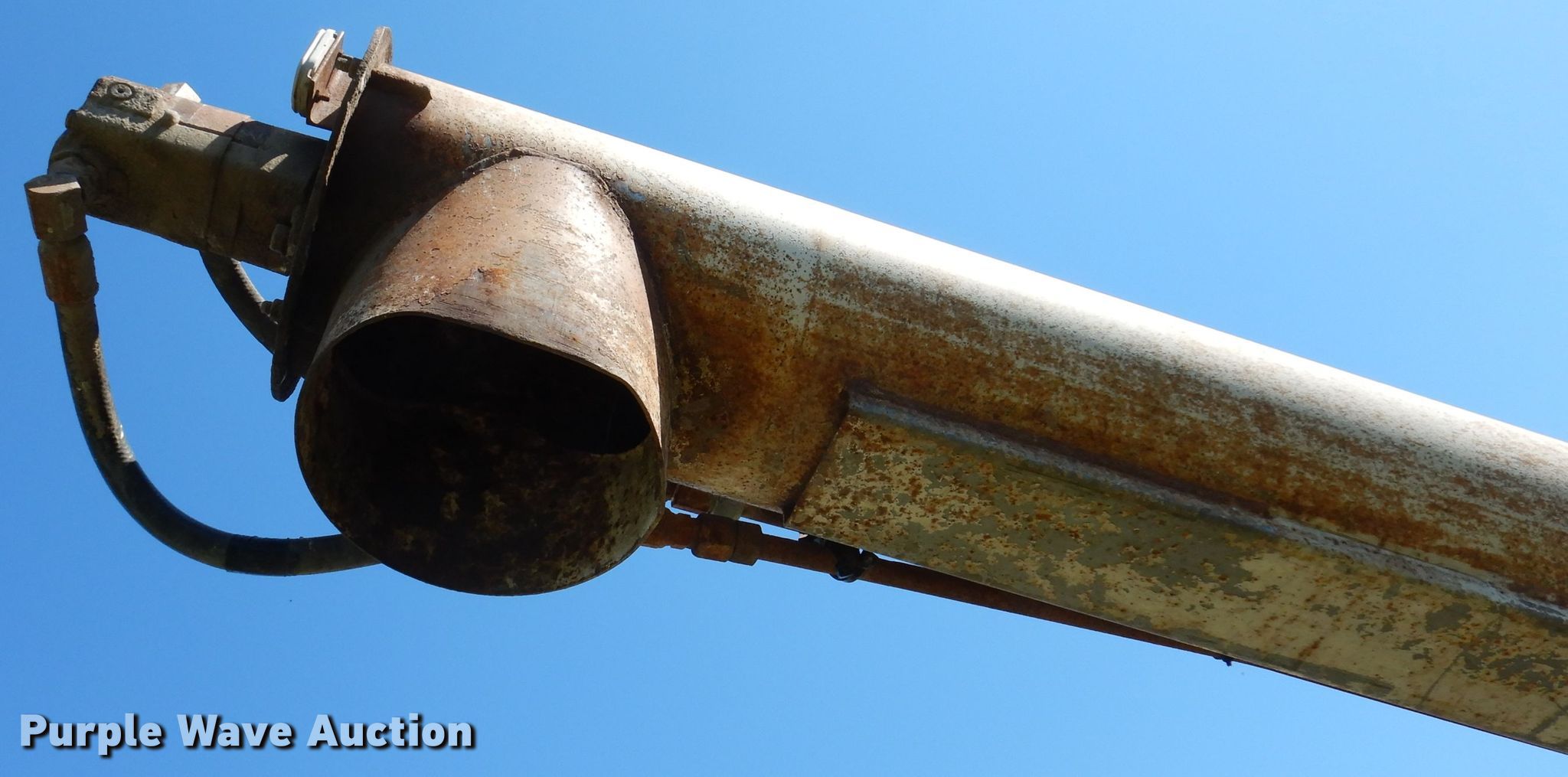 Simonsen SMC4816S seed tender. Serial: 10031906. Operational Length: 19', Diameter: 10", Lift: Hydraulic, Shut-off gate: Manual, Roll tarp. Notes Running gear not included. Hotze Farms Express. 41582 Pioneer Trl. Macedonia, IA 51549
