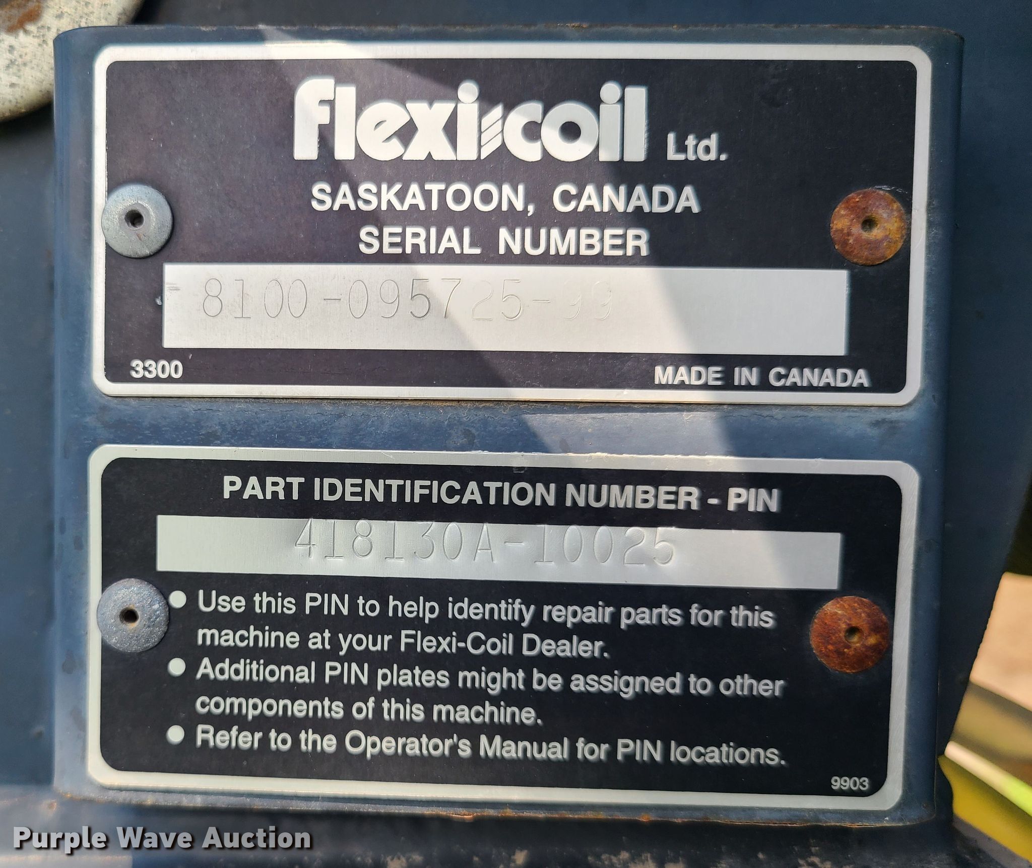 Purple Wave is selling a used Air Seeder in Missouri. This item is a Flexi-Coil 8100 air seeder toolbar with the following: Row units: 12, Row spacing: 30", Serial: 09572599