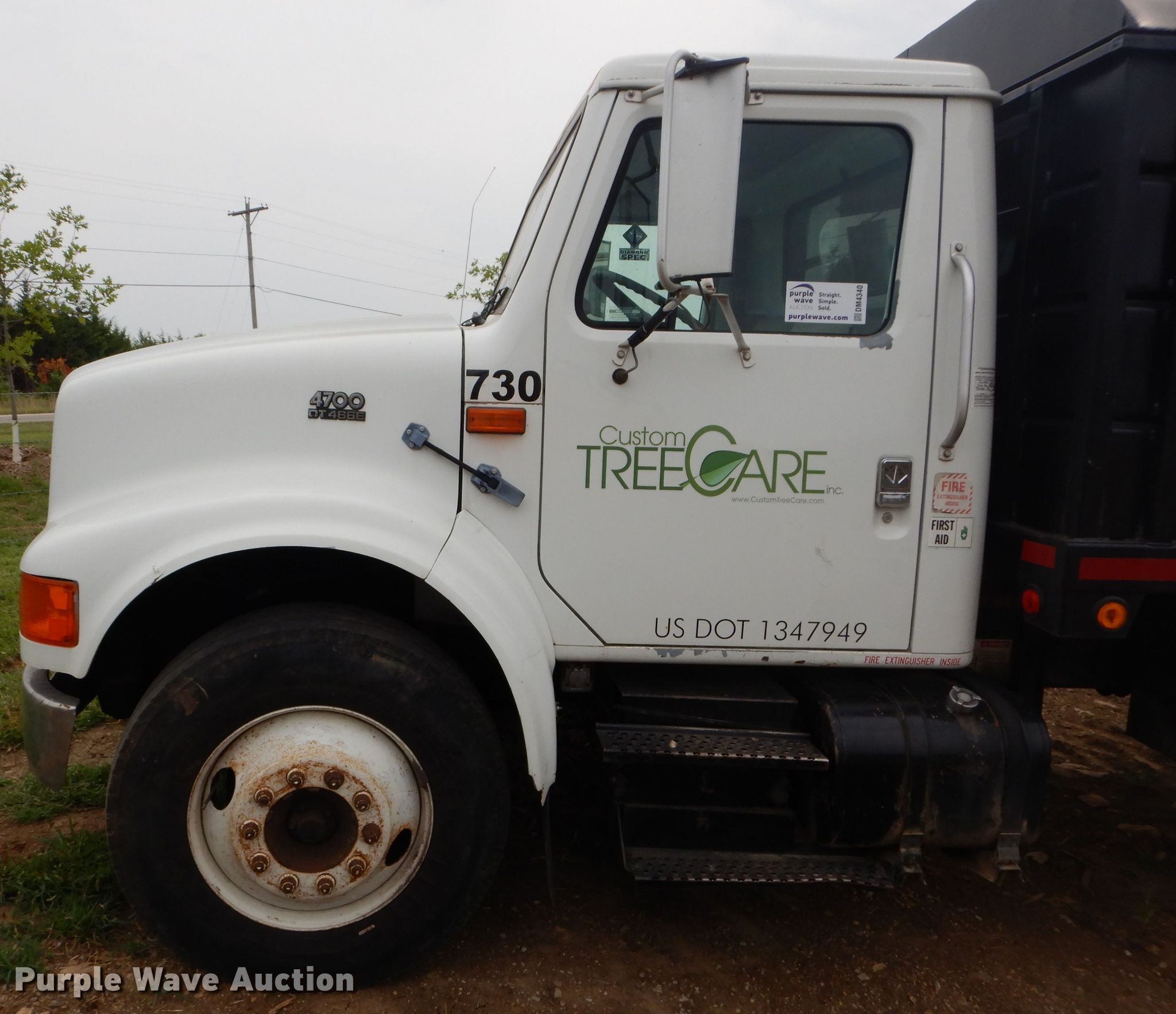 1999 International 4700 dump truck. 261,918 miles on odometer, Engine hours: 14,567. Engine Displacement: 7.6L, Cylinders: 6, Fuel type: Diesel. Transmission Automatic. Interior AC, Heat, Heated mirrors, Cruise control. Operational Dump bed 14' L x 96" W. Tires Size: 295/75R22.5. Kansas title. Vehicle has an E-Title in the State of Kansas. A paper title will be distributed to the buyer within 30 days from verification of funds. 1HTSCAAMXXH608730. Custom Tree Care. 3431 SE 21st St. Topeka, KS 66604