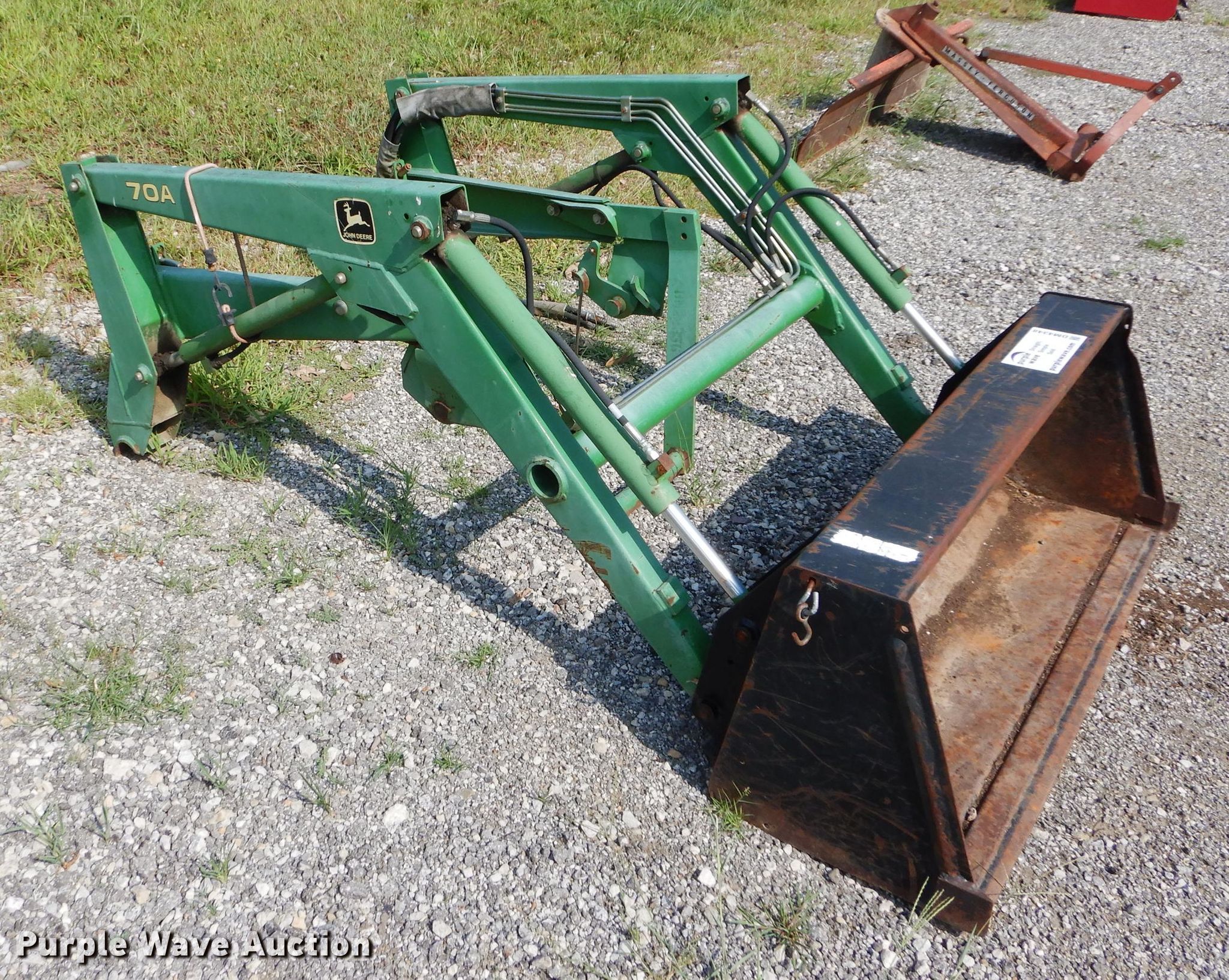 Purple Wave is selling a used Ag Tractor Loader or Attach. in Missouri. This item is a John Deere 70A loader with the following: Bucket, Width: 48"
